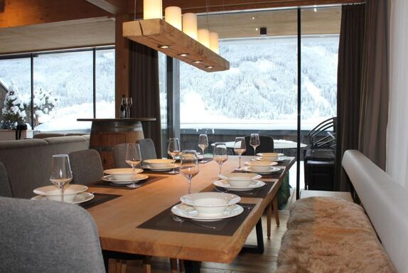 Das Penthouse Top 9 befindet sich im obersten Stockwerk der Sonnenhang Apartments und verfügt über 3 Schlafzimmer mit jeweils eigenem Badezimmer, eine private Sauna und einen komfortablen Wohn- und Essbereich inklusive großzügiger Küche. Insgesamt können hier 8 Personen übernachten. Das Penthouse verfügt über folgende Ausstattungen: Frei zugängliches und starkes W-LAN innerhalb des Apartments TV / Fachbildschrime in den Wohn- und Schlafbereichen Hochwertige Betten Großzügige Badezimmer mit modernen, begehbaren Duschen Extra Abstellraum im Apartment für Gepäckstücke Moderne und voll ausgestattete Küche mit integrierten Lautsprechern (verknüpfbar via Bluetooth) Komfortabler Essbereich mit Sitzecke Qualitätssofa mit Ausziehfunktion (2 weitere Schlafplätze) Sonnenterrasse 2 Tiefgaragenstellplätze Verschließbare Skibox im Skikeller für das Equipment mit integriertem Skischuh-Wärmer Waschkammer mit Waschmaschine und Trockner zur freien Verfügung Top 9 am Sonnenhang befindet sich in zentraler Lage in Neukirchen am Großvenediger. Der Lifteinstieg ist quasi direkt vor der Haustür und auch der nahe gelegene Spar Supermarkt ist bequem zu Fuß zu erreichen. (3min) Der perfekte Ort für Ferien mit der ganzen Familie oder als große Gruppe. Die Wildkogel-Arena ist ein familienfreundliches Skigebiet in der Ferienregion Nationalpark Hohe Tauern und bietet mit 64 km Pistenlänge ein schneesicheres und traumhaftes Wintererlebnis für Anfänger und Fortgeschrittene. Doch auch Wanderer und Kletterer kommen auf Ihre Kosten. Besonders im Sommer bietet die Gegend um den Nationalpark eine vielzahl an Freizeitmöglichkeiten, Aktion und Erholung. Kurzbeschreibung Sonstiges : Nichtraucherhaus Kurzbeschreibung 1 Anzahl Küchen : 1 Sonstige Räume : Sauna Wohnzimmer 1 Sonstige Wohnzimmerausstattung : Kamin, Weinbar Schlafzimmer 1 Sonstige Schlafzimmereinrichtung : Schrank, Nachttisch, Fernseher, Badezimmer en suite Schlafzimmer 2 Sonstige Schlafzimmereinrichtung : Schrank, Nachttisch, Fernseher, Badezimmer en suite Schlafzimmer 3 Sonstige Schlafzimmereinrichtung : Schrank, Nachttisch, Fernseher, Badezimmer en suite Küche 1 Sonstige Kücheneinrichtung : Kinderstuhl, Kaffeemaschine, Küchenutensilien, Spülmaschine, Küchenherd, Mikrowelle, Backofen, Kühlschrank, Toaster, Wasserkocher Umgebung Leihmöglichkeiten : Fahrradverleih, Ski-, Snowboard- oder Schlittenverleih Sportmöglichkeiten in der Umgebung : Bergsteigen, Golfplatz, Klettern, Mountainbiking, Radtouren, Rafting, Rodeln, Ski (Langlauf), Ski (alpin) Garten und Aussenanlagen Freizeiteinrichtungen am Objekt : Sauna, Spielplatz Gartenausstattung : Gartenmöbel vorhanden Basisinformationen - Anzahl Personen: 8 - Erlaubte Haustiere: keins - Unterkunftstyp: Ferienwohnung - Art d. Gebäudes: Mehrparteienhaus - Wohnfläche: 110 m² - keine Einsicht von der Straße - Nichtraucherunterkunft - Schlafzimmeranzahl: 3 - Badezimmeranzahl: 3 Top Merkmale - WLAN - Heizung: überall - Fußbodenheizung: überall - Balkon - Terrasse - Private PKW-Stellplätze insgesamt für diese Unterkunft: keinen - ㄴ davon Garagenstellplätze: keinen - ㄴ davon Carport-Stellplätze: keinen - ㄴ davon private Außen­stellplätze: keinen Schlafen im Wohnbereich - Schlafsofa 2 Personen Schlafzimmer 1 - Doppelbett (1,80m Breite) Schlafzimmer 3 - Doppelbett (1,80m Breite) Schlafzimmer 5 - Doppelbett (1,80m Breite) - Schlafzimmer abdunkelbar Badezimmer Badezimmer 1 - Dusche - Waschbecken - Toilette - Föhn Badezimmer 3 - Dusche - Waschbecken - Toilette - Föhn Badezimmer 5 - Dusche - Waschbecken - Toilette - Föhn Kochen/Wohnen - Kaffeemaschine: Espressokanne, Kaffeemaschine - Kühl-/Gefrierschrank: Gefrierfach, Kühlschrank - Herd: Elektroherd, Herd - Dunstabzugshaube - Backofen - Toaster - Mikrowelle - Wasserkocher - Spülmaschine - Anzahl Esstische: 1 - Gesamtzahl Sitzplätze: 8 - Anzahl Wohnzimmer: 1 - Wohnzimmer abdunkelbar - Kamin Entertainment - Fernseher: TV, Sat.-TV Hauswirtschaft - Waschmaschine: zur gemeinschaftlichen Nutzung im Gebäude - Staubsauger Barrierefreiheit - Aufzug Umgebung - Aussicht: Berg, Garten, Wald, Wiese, Tal - Lebensmittelhandel: 300 m - Cafés/Restaurants: 300 m - Fahrrad-Verleih: 1 m - Berg-/Seilbahn: 200 m Besonderheiten - Inmitten der Natur gelegen