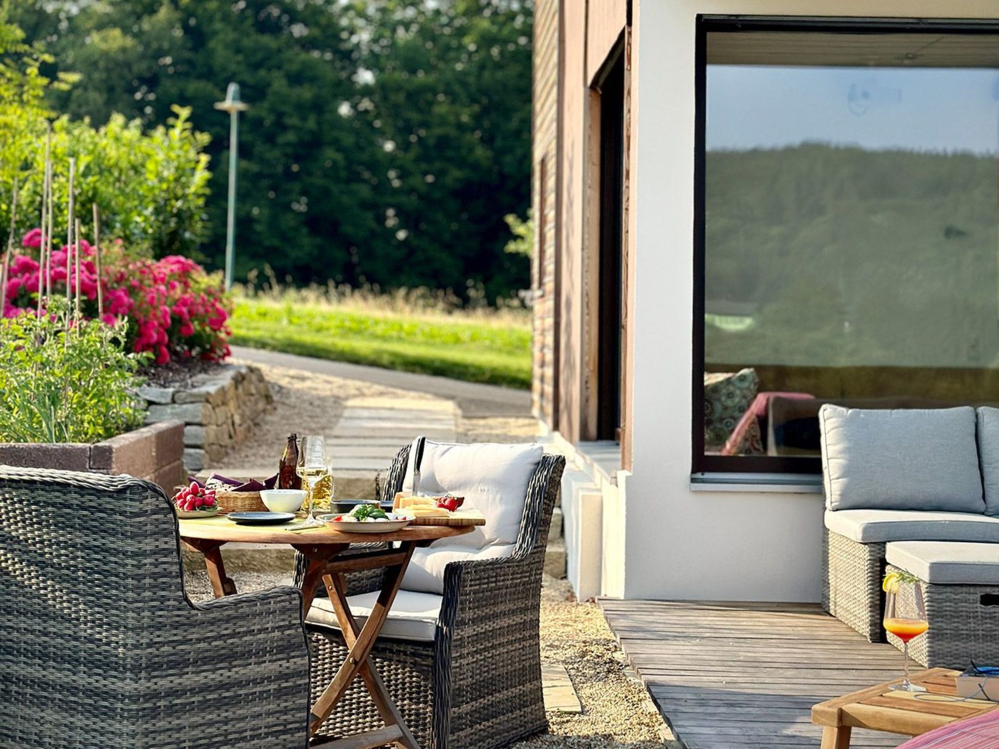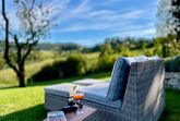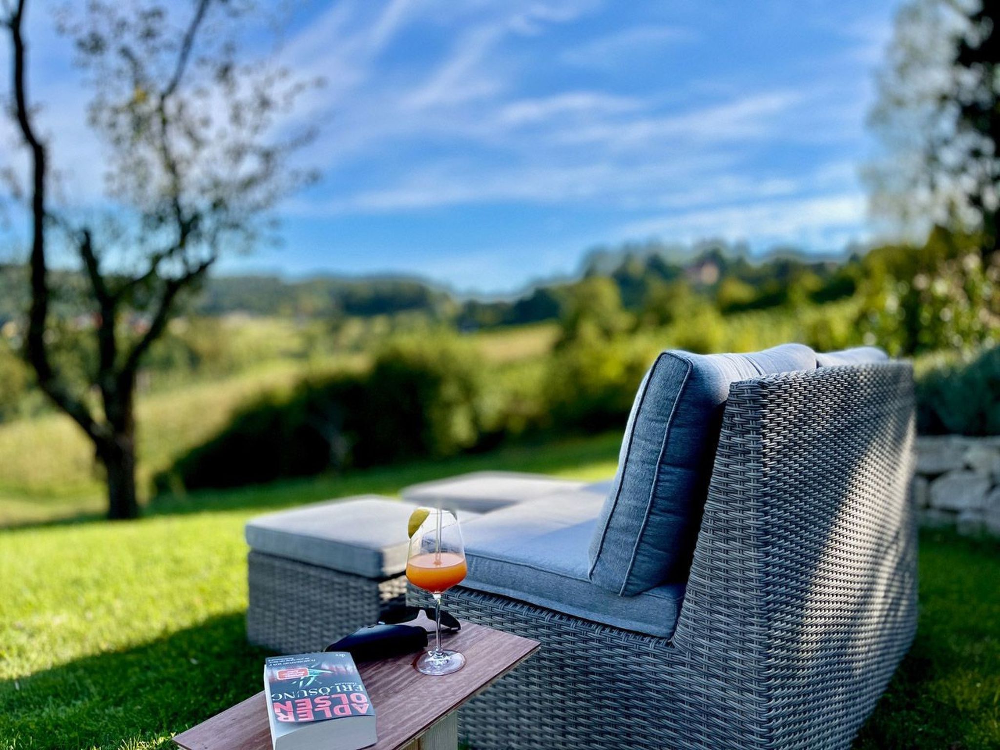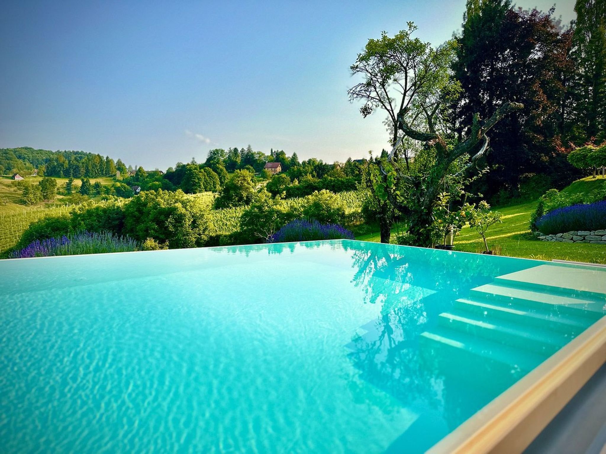 In äußerst ruhiger und dennoch sehr zentraler Lage im Naturschutzpark der Südsteiermark bietet diese Unterkunft die perfekte Kombination aus Erholung und Komfort. Eine nahegelegene traditionelle Weinschenke ist in etwa 10 Minuten zu Fuß erreichbar, während zahlreiche Einkaufsmöglichkeiten, Gastronomieangebote und Freizeitmöglichkeiten in der näheren Umgebung vorhanden sind. Das Drehkreuz der Südsteiermark, Leibnitz, ist in nur 5-10 Minuten mit dem Auto erreichbar. Die südsteirische Weinstraße und Slowenien sind etwa 20 Minuten entfernt, und der Flughafen der Landeshauptstadt Graz ist in 25 Minuten mit dem Auto zu erreichen. Die nächstgelegene Bahnstation mit S-Bahn-Anbindung nach Graz ist nur knapp 5 km entfernt. Die Unterkunft bietet alles, was man für einen komfortablen Aufenthalt benötigt, darunter eine Klimaanlage, Reinigungsprodukte, einen Föhn, WLAN, Waschmaschine, Bügeleisen, und einen Safe. Entspannen Sie am privaten, von Mai bis Oktober beheizten Infinitypool mit einer Fläche von 32 qm, der von einer 65 qm großen Panoramaterrasse umgeben ist. Die Terrasse verfügt zudem über einen überdachten Essbereich und eine überdachte Grillecke. Das Grundstück erstreckt sich auf knapp 4000 qm und bietet einen wunderschön angelegten Garten mit Lavendelhainen und Bergwiese. Außerdem stehen ein privater Parkplatz sowie ein Carport für zwei Fahrzeuge zur Verfügung. Die erstklassig ausgestattete Küche, das Heimkino, der Kaminofen sowie die luxuriöse Massivholzausstattung machen diese Unterkunft zu einem Ort der Entspannung und Erholung. Basisinformationen - Erlaubte Haustiere: keins - Unterkunftstyp: Ferienhaus - befindet sich in: Wohnsiedlung - Art d. Gebäudes: Einfamilienhaus - Gesamtanzahl d. Stockwerke im Gebäude über EG: 1 - Grundstücksfläche: 3800 m² - Baujahr: 2023 - freistehend - keine Einsicht von der Straße - keine Jugendgruppen - Nichtraucherunterkunft - Schlafzimmeranzahl: 3 - Badezimmeranzahl: 2 Top Merkmale - WLAN - Klimaanlage: teilweise - Heizung: überall - Fußbodenheizung: keine - Terrasse - Garten: zur alleinigen Nutzung - Outdoorpool - ㄴ zur alleinigen Nutzung - ㄴ maximale Tiefe: 150 cm - ㄴ Länge: 800 cm - ㄴ Breite: 400 cm - ㄴ Poolheizung - Infinity Pool - Private PKW-Stellplätze insgesamt für diese Unterkunft: 5 - ㄴ davon Carport-Stellplätze: 2 - ㄴ davon private Außenstellplätze: 3 Schlafen Schlafzimmer 1 - Doppelbett (größer als 1,80 m Breite) Schlafzimmer 3 - Doppelbett (größer als 1,80 m Breite) - Einzelbett Schlafzimmer 5 - 2x Einzelbett Badezimmer Badezimmer 1 - Dusche - Waschbecken - Toilette - Föhn - Tageslicht Badezimmer 3 - Badewanne - Waschbecken - Toilette - Föhn - Tageslicht Gäste-WC - Waschbecken - Toilette - Tageslicht Kochen/Wohnen - Kaffeemaschine: Espressokanne, Filter-Kaffeemaschine, Kapsel-Kaffeemaschine - Kühl-/Gefrierschrank: Tiefkühlschrank, Kühlschrank - Herd: Induktionsherd - Backofen - Toaster - Mikrowelle - Wasserkocher - Spülmaschine - Geschirrtücher - Größe der Küche: 20 m² - Anzahl Esstische: 1 - Gesamtzahl Sitzplätze: 7 - Wohnzimmer abdunkelbar - Kamin Entertainment - Gesellschaftsspiele für Erwachsene Für Kinder - Kinderstuhl - Gesellschaftsspiele für Kinder Hauswirtschaft - Waschmaschine: zur alleinigen Nutzung im Objekt - Wäschetrockner: zur alleinigen Nutzung im Objekt - Bügeleisen - Staubsauger - Safe Nachhaltigkeit - Abfallrecycling - Bioabfall verfügbar - Wassersparende Geräte - Erneuerbare Energien - Hausisolierung Außenbereich - Veranda - Grill: Gasgrill Umgebung - nächstgelegene Ortsmitte: 2,0 km - Lebensmittelhandel: 2,0 km - Bars/Clubs/Ausgehen: 1,0 km - Cafés/Restaurants: 3,0 km - Bahnhof: 4,5 km - Flughafen: 30,0 km - Autobahn: 5,0 km - nächste Haltestelle ÖPNV: 1,5 km - Wanderweg: 4 m - Ski - Skiabfahrt: 30,0 km - Berg-/Seilbahn: 40,0 km