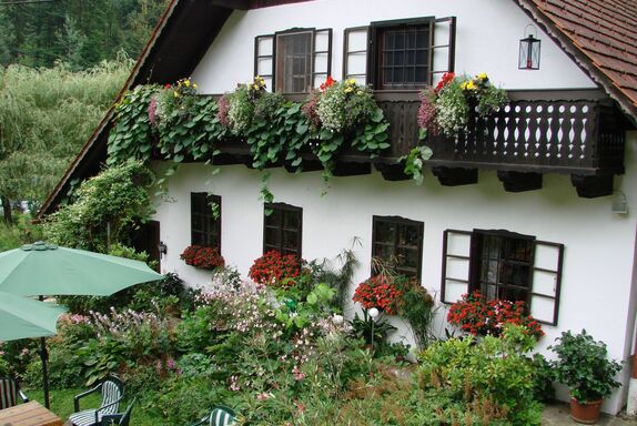 Ein Haus so schön wie sein Name - Inmitten der Achse Graz (Kulturhauptstadt 2003) und Maribor (Kulturhauptstadt 2012) erstreckt sich das Sausaler Hügel- und Weinland mit seinen landschaftlichen Reizen und kulinarischen Besonderheiten. In dieser Idylle finden Sie in der Himmelreichmühle Ruhe und Entspannung, einem liebevoll eingerichteten Haus am Fuße des Demmerkogels. Wer Entschleunigung sucht – die Welt von gestern gibt es hier noch. Das Ferienhaus erstreckt sich über eine Wohnfläche von 160 m² und ist in ein Erd- und ein Obergeschoss unterteilt. Im Inneren herrscht eine gemütliche Atmosphäre im originalen Landhausstil mit Kachelofen, sichtbaren Deckenbalken, Parkettfußboden und ausgewähltem Mobiliar. Während sich vier Schlafzimmer und ein Badezimmer im Obergeschoss befinden, liegen ein Einzelzimmer und ein zweites Badezimmer neben den Gemeinschaftsräumen im Erdgeschoss. Auf der oberen Etage, zu der Sie über eine Treppe aus dem Wohnbereich gelangen, erwartet Sie ein Dreibettzimmer, das mit einem 200 cm x 200 cm großen Doppelbett und einer Schlafcouch für eine dritte Person möbliert ist. Das zweite und dritte Schlafzimmer sind klassische Doppelzimmer mit einem 200 cm x 200 cm großen Doppelbett. Das vierte Schlafzimmer wurde mit 2 Einzelbetten versehen. Das fünfte Schlafzimmer im Erdgeschoss ist mit einem Einzelbett ausgestattet. Im großen Salon kommt Gemütlichkeit auf: Hier entspannen Sie nach einem Tagesausflug auf zwei bequemen Wohnlandschaften aus Sesseln und Sofas. Am Abend lassen Sie mit einem Feuer im Kachelofen den Tag Revue passieren wobei ein gutes Buch aus der umfangreichen Bibliothek oder der Fernseher mit Sat.-TV für Unterhaltung sorgen. Die Küche ermöglicht Ihnen eine umfangreiche Selbstversorgung anhand einer Geschirrspülmaschine einer Kühl- und Gefrierschrankkombination sowie allen üblichen Küchenutensilien. Der beistehende Esstisch lädt zu einer gemeinsamen Mahlzeit ein. Die beiden Badezimmer sind jeweils mit einer Badewanne, einem WC, Badezimmerfenstern und Waschbecken konzipiert. Zur Ausstattung zählt weiterhin eine Waschmaschine, die kostenlose Internetverbindung per WLAN, ein Zusatzbett und ein Gitterbett können auf Anfrage bereit gestellt werden. Kinderermäßigungen auf Anfrage Der große Garten mit reichlich Kräutern und Gemüse geht nahtlos in Wald und Wiese über. Nutzen Sie den gemauerten Back- und Bratofen für eine abwechslungsreiche Speisenzubereitung. Ausreichend Gartenmöbel, die zu einer langen Esstafel gruppiert sind, laden zu Mahlzeiten im Freien ein. Nach einem Sonnenbad auf der Liegewiese finden Sie Erfrischung im Naturbadeteich direkt vor dem Haus. Ihre Gastgeber sprechen Deutsch, Englisch, Französisch und Italienisch und stehen Ihnen gerne zur Seite. Das hunde- und kinderfreundliche Anwesen ist die ideale Wahl für einen Urlaub mit der gesamten Familie. Bitte beachten Sie, dass das Grundstück nicht eingezäunt und das Haus nicht barrierefrei ist. In der nahen Umgebung ist ein beliebter Buschenschank (800 m) und ein Gasthaus (450 m) in Gehweite. Ein reichliches Einkaufsangebot liegt ca. 4,5 km in Gleinstätten entfernt. Wanderungen und Mountainbiketouren in der idyllischen Natur „Mit dem Radl zum Wein“ mit viel Wald, Angel- und Badestellen sowie einem reichhaltigen Angebot an Gastronomien und Winzern laden zu Entdeckungen ein. Zahlreiche Schlösser und die Kulturhaupstädte bieten ein vielfältiges kulturelles Angebot. Für Kinder sind das Römermuseum Flavian Solva. das Keltenmuseum Großklein, oder Freizeiteinrichtungen wie der Tier- Wild- und Spielpark Preding (13 km) einen Ausflug wert. Einen Tagesausflug nach Graz unternehmen Sie nach 44 km. Maribor in Slowenien ist ca. 50 km entfernt. Basisinformationen - Erlaubte Haustiere: beliebig - Art d. Gebäudes: Einfamilienhaus - Gesamtanzahl d. Stockwerke im Gebäude über EG: 2 - Grundstücksfläche: 12340 m² - Baujahr: 1980 - letzte umfassende Renovierung: 2006 - freistehend - Anbieter wohnt auf dem Grundstück - keine Gruppenbuchung - keine Jugendgruppen - Nichtraucherunterkunft - Schlafzimmeranzahl: 5 - Badezimmeranzahl: 2 Top Merkmale - WLAN - Heizung: überall - Balkon - Garten: zur gemeinschaftlichen Nutzung - Private PKW-Stellplätze insgesamt für diese Unterkunft: 4 - ㄴ davon Garagenstellplätze: keinen - ㄴ davon Carport-Stellplätze: 2 - ㄴ davon private Außen­stellplätze: 2 Schlafen Schlafzimmer 1 - Doppelbett (größer als 1,80 m Breite) - Einzelbett Schlafzimmer 17 - Doppelbett (größer als 1,80 m Breite) Schlafzimmer 25 - 2x Einzelbett Schlafzimmer 33 - Einzelbett Schlafzimmer 9 - Doppelbett (größer als 1,80 m Breite) Badezimmer Badezimmer 1 - Badewanne - Waschbecken - Toilette Badezimmer 9 - Badewanne - Waschbecken - Toilette Kochen/Wohnen - Kaffeemaschine: Espressokanne - Kühl-/Gefrierschrank: Gefrierfach, Kühlschrank - Herd: Elektroherd - Backofen - Toaster - Wasserkocher - Spülmaschine - Anzahl Esstische: keine - Gesamtzahl Sitzplätze: keine Entertainment - Fernseher: Sat.-TV - DVD-Player Für Kinder - Kinderstuhl Hauswirtschaft - Waschmaschine: zur alleinigen Nutzung im Objekt - Bügeleisen - Staubsauger Außenbereich - Grill: Holzkohlegrill Umgebung - direkt am Waldrand - nächstgelegene Ortsmitte: 5,0 km - Lebensmittelhandel: 4,5 km - Bars/Clubs/Ausgehen: 5,0 km - Cafés/Restaurants: 500 m - Bahnhof: 16,0 km - Flughafen: 40,0 km - Autobahn: 17,0 km - See: 6,0 km - Angelplatz: 500 m - Öffentliches Schwimmbad: 16 m - Golfplatz: 18,0 km - Fahrrad-Verleih: 5,0 km - Reitmöglichkeit: 6,0 km