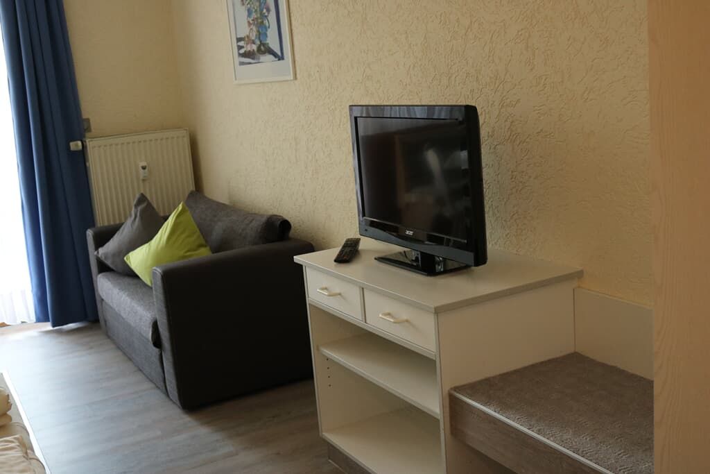 Unser höchstgelegenes Ein-Raum-Appartement mit 25qm Wohnfläche und Balkon im 2. Stock mit einem tollen Blick nach Lam und auf unsere 8-Tausender, (Kaitersberg bis Großer Arber). Das kleine bezaubernde Appartement OSSER bietet Platz für max. 3 Erwachsene. Das mit gepflegten, hellen Möbeln ausgestattete Appartement mit Teppichboden verfügt über SAT/TV, Bad/WC, ein Doppelbett, Ausziehsessel (80cm x 1,90m), Essecke, Kleiderschrank und großem Spiegel. In der kleinen Küche im Schrank finden Sie alles notwendige was Sie für Ihren Aufenthalt benötigen: Kühlschrank mit Gefrierfach, 2 Herdplatten, Spülbecken, Spülmittel und Spülschwamm, Besteck, Kaffeemaschine, Wasserkessel, Toaster, Kaffee- und Tafelservice, Gläser, Teekanne, Müslischalen, Eierbecher, Schneidebretter, Salatschüssel, Abtropfsieb, 2 Töpfe und 1 Bratpfanne. Kehrbesen, kl. Eimer mit Microfasertuch sowie sämtliche Reinigungsmittel. Im Badezimmer befindet sich eine Badewanne mit Duschvorhang, Toilette und Waschbecken. Die 3 Parkplätze vor, sowie die Parkplätze links von unserem Gebäude, sind kostenfrei. Haustiere sind hier Willkommen. Im Appartement ist W-LAN empfang.