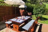 Das Ferienhaus liegt zwischen den Orten Obdach und St. Wolfgang auf ca. 1100 Meter Seehöhe idyllisch inmitten von Wald und Wiesen. Es bietet rund 140 Quadratmeter Wohnfläche für bis zu 10 Personen in zwei getrennten Wohneinheiten für 6 bzw. 4 Personen mit jeweils 2 Zimmern sowie Bad und WC. Die Küche ist modern mit Kühlschrank, E-Herd, Mikrowellenherd, Geschirrspüler und Kaffeemaschine eingerichtet. Die Küche hat einen Balkon fürs Frühstück in der Morgensonne. Im Aufenthaltsraum befinden sich Fernseher (SAT), Bücher und Gesellschaftsspiele. Internet ist im ganzen Haus über WLAN ohne Aufpreis zu nutzen. Haustiere sind ohne Aufpreis herzlich willkommen. Im Garten befinden sich ein kleiner Kinderspielplatz, ein gemauerter Grill sowie Gartenmöbel. Der geräumige Garten bietet einen gemauerten Grill mit einer gemütlichen Sitzgruppe, einen kleinen Spielplatz mit Schaukel und Sandkasten und einer Sitzbank für die Eltern sowie einen eigenen Hundegarten. Gegenüber dem Hauseingang sowie unterhalb des Hauses vor der Garage ist ausreichend Platz für bis zu 5 (Im Winter 4) PKW. Das Haus ist perfekt ausgestattet und bietet genug Platz für bis zu 10 Personen. Bettwäsche sowie Bade- und Handtücher sind im Mietpreis inbegriffen, ebenso die Nutzung des WLAN-Internet. Im Sommer ist das Haus idealer Ausgangspunkt für Wanderungen auf eine der Hütten rund um den Zirbitzkogel oder direkt auf den Gipfel. Das Steirische Zirbenland ist ein Wanderparadies mit 330 km markierten Wegen und bietet abwechslungsreiche Wege für Sportliche und Gemütliche.Im Sommer ist Das Gelände ist auch ideal für Mountainbiker – 10 Rundstrecken mit unterschiedlichen Schwierigkeitsgraden stehen zur Auswahl. Freunde des Golfsports kommen im Golfclub Murtal in Spielberg auf ihre Rechnung.Im Winter laden die Skigebiete der Region ein, oder Sie unternehmen eine Skitour, eine Rodelpartie oder eine Schneeschuhwanderung.Ausflugsziele: Für Ausflüge in der Umgebung bieten sich als Ziele unter anderem die Therme Aqualux in Fohnsdorf, der Sternenturm mit Planetarium sowie das Puch-Museum in Judenburg, das Schloß Farrach in Zeltweg, das Benediktinerstift in Seckau, der Märchenwald in St. Georgen ob Judenburg, der Keltenberg in Hohentauern oder das Schaubergwerk in Oberzeiring an. Wanderer können direkt aus dem Haus bis auf den Gipfel der Zirbitzkogels spazieren. Die Straße, an der unser Haus liegt, führt bis auf die Rothaidenhütte auf ca. 1820 Meter Seehöhe. Basisinformationen - Erlaubte Haustiere: 5 - erlaubte Hundegröße: groß (über 60 cm) - befindet sich in: nichts zutreffend - Art d. Gebäudes: Einfamilienhaus - Etage, auf der sich das Objekt befindet: EG - Gesamtanzahl d. Stockwerke im Gebäude über EG: 1 - Grundstücksfläche: 650 m² - Baujahr: 1982 - letzte umfassende Renovierung: 2018 - freistehend - keine Einsicht von der Straße - Nichtraucherunterkunft - Höhe über dem Meeresspiegel: 1100 - Schlafzimmeranzahl: 4 - Badezimmeranzahl: 2 Top Merkmale - WLAN - Heizung: überall - Balkon - komplett eingefriedet (mit Mauer, Zaun oder Hecke) - Private PKW-Stellplätze insgesamt für diese Unterkunft: 4 - ㄴ davon Garagenstellplätze: keinen - ㄴ davon Carport-Stellplätze: keinen - ㄴ davon private Außenstellplätze: 4 Schlafen Schlafzimmer 1 - Doppelbett (1,80m Breite) - Etagenbett Schlafzimmer 3 - Doppelbett (1,80m Breite) Schlafzimmer 5 - Doppelbett (1,80m Breite) Schlafzimmer 7 - Doppelbett (von 1,51 m bis 1,79 m Breite) Badezimmer Badezimmer 1 - Dusche - Waschbecken - Föhn - Tageslicht Badezimmer 3 - Dusche - Waschbecken - Toilette Sanitäre Einrichtungsgegenstände in der Ferienunterkunft - 2x Dusche - 2x Toilette Kochen/Wohnen - Kaffeemaschine: Filter-Kaffeemaschine - Kühl-/Gefrierschrank: Gefrierfach, Kühlschrank - Herd: Glaskeramikkochfeld, Elektroherd, Herd - Dunstabzugshaube - Backofen - Toaster - Mikrowelle - Wasserkocher - Spülmaschine - Größe der Küche: 18 m² - Anzahl Esstische: 2 - Gesamtzahl Sitzplätze: 13 - Anzahl Wohnzimmer: 1 - Wohnzimmer abdunkelbar Entertainment - Fernseher: Sat.-TV - Radio - CD-Player - Gesellschaftsspiele für Erwachsene Für Kinder - Gesellschaftsspiele für Kinder Hauswirtschaft - Waschmaschine: zur alleinigen Nutzung im Objekt - Bügeleisen - Staubsauger Außenbereich - Grill: Grill Umgebung - Aussicht: Berg, Garten, Wald, Wiese, Tal - direkt am Waldrand - nächstgelegene Ortsmitte: 5,5 km - Lebensmittelhandel: 5,5 km - Bars/Clubs/Ausgehen: 3,0 km - Cafés/Restaurants: 1,0 km - Bahnhof: 6,0 km - Flughafen: 80,0 km - Autobahn: 20,0 km - nächste Haltestelle ÖPNV: 5,5 km - Öffentliches Schwimmbad: 10,0 km - Golfplatz: 25,0 km - Reitmöglichkeit: 20,0 km - Ski - Skiabfahrt: 3,0 km - Skischule: 6,0 km - Skilanglauf: 10,0 km Besonderheiten - Inmitten der Natur gelegen