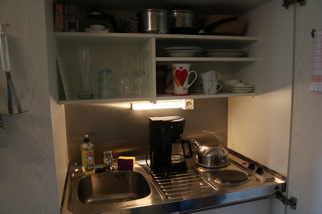 Gemütliches Ein-Raum-Appartement mit 25qm Wohnfläche und Terasse. Unser kleines Appartement OSSER bietet Platz für max. 2 Erwachsene. Für Ein oder Zwei Kinder steht ein kleines Sofa zum ausziehen zu Verfügung. Das mit gepflegten, hellen Möbeln ausgestattete Appartement mit Vinylboden verfügt über SAT/TV, Bad/WC, ein Doppelbett, Ausziehcouch (für die 3. Person oder 2 kleine Kinder, 1,40m x 1,90m), Essecke, Kleiderschrank und großem Spiegel. In der kleinen Küche im Schrank finden Sie alles notwendige was Sie für Ihren Aufenthalt brauchen: Kühlschrank mit Gefrierfach, 2 Herdplatten, Spülbecken, Spülmittel und Spülschwamm, Besteck, Kaffeemaschine, Wasserkessel, Toaster, Kaffee- und Tafelservice, Gläser, Teekanne, Müslischalen, Eierbecher, Schneidebretter, Salatschüssel, Abtropfsieb, 2 Töpfe und 1 Bratpfanne. Kehrbesen, kl. Eimer mit Microfasertuch sowie sämtliche Reinigungsmittel. Im Badezimmer befindet sich eine Badewanne mit Duschvorhang, Toilette und Waschbecken. Die 3 Parkplätze vor, sowie die Parkplätze links von unserem Gebäude, sind kostenfrei. Haustiere sind nicht erlaubt. Im Appartement ist W-LAN empfang.