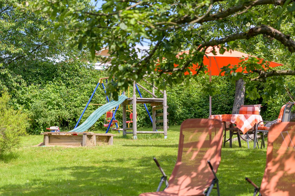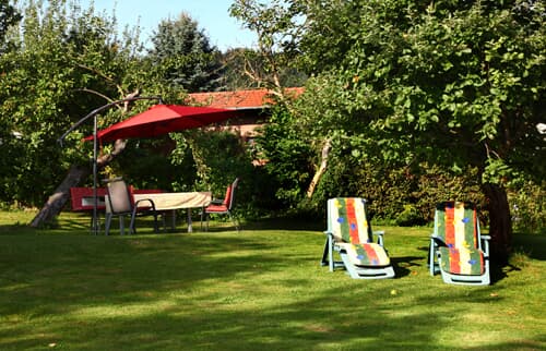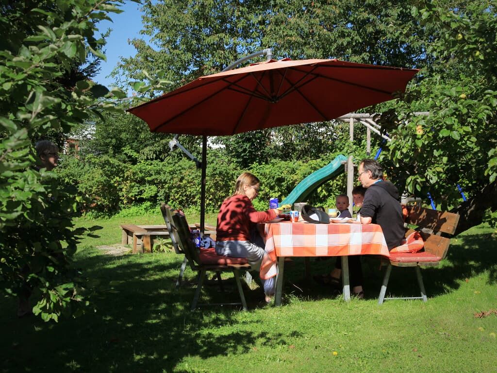 In herrlicher, ruhige Südhanglage befinden sich unsere kinderfreundlichen Ferienwohnungen mit dem großen Obstgarten und Naschhecke (Himbeeren, Johannisbeeren, Brombeeren). Unter den alten Kirsch- und Apfelbäumen finden Sie gemütliche Sitzgruppen und Liegen, sowie einen Grillplatz.