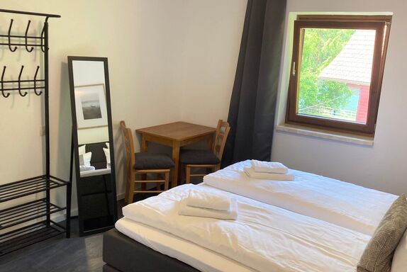 Entdecken Sie unser charmantes, geräumiges Apartment, das perfekt für einen unvergesslichen Urlaub gestaltet ist. Mit einem Schlafzimmer, das mit erstklassigen Hotel-Boxspringbetten ausgestattet ist, und einem gemütlichen Wohnzimmer, das ein Doppelschlafsofa bietet, ist dieses Apartment ideal, um nach einem erlebnisreichen Tag die nötige Ruhe zu finden. Außerdem ist der zauberhafte Ausblick auf die umliegende Natur vom Balkon aus ein wahres Highlight, das Ihren Aufenthalt unvergesslich macht. Innen erwartet Sie eine voll ausgestattete Küche mit allem, was Sie für den Alltag benötigen, einschließlich eines Geschirrspülers, Kühl-/Gefrierschranks, einer Induktionsherdplatte, einer Senseo-Maschine, eines Wasserkochers und einer Dunstabzugshaube. Das Wohn-/Esszimmer lädt mit seinem direkten Blick auf den See zu gemütlichen Stunden ein, während der Smart-TV und das kostenlose WLAN für Unterhaltung sorgen. Das Badezimmer ist mit einer ebenerdigen Dusche, einem Waschbecken und einer Toilette modern eingerichtet. Der Außenbereich des historischen Gebäudes bietet einen Balkon mit Möbeln für entspannte Stunden unter freiem Himmel. Gäste haben Zugang zu einem Garten zur gemeinschaftlichen Nutzung, was ideal ist, um die Sonne und die landschaftliche Schönheit der Umgebung zu genießen. Zudem sind eine Waschmaschine und ein Wäschetrockner zur gemeinschaftlichen Nutzung im Gebäude verfügbar, zusammen mit einem überdachten und abschließbaren Fahrradabstellplatz, was den Komfort während Ihres Aufenthaltes erhöht. Die direkte Umgebung des Apartments ist durch ihre einzigartige Lage direkt am Waldrand am Rand eines Berges, nur 10 Meter vom Strand und dem See entfernt, absolut beeindruckend. Für Aktivurlauber bietet die Umgebung alles von Wassersportmöglichkeiten bis hin zu Radwanderwegen direkt vor der Haustür. Die nächstgelegene Ortsmitte ist nur 900 Meter entfernt, wobei Lebensmittelhandel, Bushaltestelle und vieles mehr leicht erreichbar sind. Dieses Apartment ist der perfekte Ausgangspunkt für Abenteurer, Naturliebhaber und Erholungssuchende. Mit seinen komfortablen Betten, der hochwertigen Innenausstattung und der idyllischen Lage, die sowohl Ruhe als auch eine Vielzahl von Aktivitäten bietet, wird Ihr Urlaub hier sicherlich etwas ganz Besonderes. Egal, ob Sie die historische Umgebung erkunden oder einfach nur in der atemberaubenden Natur entspannen möchten – hier finden Sie alles, was Sie für einen unvergesslichen Urlaub benötigen. Basisinformationen - Erlaubte Haustiere: 1 - erlaubte Hundegröße: mittel (30 bis 60 cm) - Unterkunftstyp: Ferienwohnung - befindet sich in: Aparthotel - Art d. Gebäudes: Mehrparteienhaus - Etage, auf der sich das Objekt befindet: OG2 - Gesamtanzahl d. Stockwerke im Gebäude über EG: 2 - letzte umfassende Renovierung: 2022 - keine Einsicht von der Straße - Anbieter wohnt auf dem Grundstück - keine Jugendgruppen - Nichtraucherunterkunft - Schlafzimmeranzahl: 1 - Badezimmeranzahl: 1 Top Merkmale - WLAN - Klimaanlage: keine - Heizung: überall - Fußbodenheizung: keine - Balkon - Garten: zur gemeinschaftlichen Nutzung - komplett eingefriedet (mit Mauer, Zaun oder Hecke) - Private PKW-Stellplätze insgesamt für diese Unterkunft: 1 - ㄴ davon Garagenstellplätze: keinen - ㄴ davon Carport-Stellplätze: keinen - ㄴ davon private Außenstellplätze: 1 Schlafen im Wohnbereich - Schlafsofa 2 Personen Schlafzimmer 1 - Doppelbett (1,80m Breite) Badezimmer Badezimmer 1 - Dusche - Waschbecken - Toilette Wellness - Infrarot Sauna Kochen/Wohnen - Kaffeemaschine: Pads-Kaffeemaschine - Kühl-/Gefrierschrank: Gefrierfach, Tiefkühlschrank, Kühlschrank - Herd: Induktionsherd - Dunstabzugshaube - Mikrowelle - Wasserkocher - Spülmaschine - Geschirrtücher - Größe der Küche: 12 m² - Anzahl Esstische: 1 - Gesamtzahl Sitzplätze: 4 - Anzahl Wohnzimmer: 1 - Wohnzimmer abdunkelbar Entertainment - Fernseher: TV, Antenne/DVBT-TV, Sat.-TV - Smart-TV Für Kinder - Kinderstuhl Hauswirtschaft - Waschmaschine: zur gemeinschaftlichen Nutzung im Gebäude - Wäschetrockner: zur gemeinschaftlichen Nutzung im Gebäude - Wäscheständer - Bügeleisen - Reinigungsprodukte - Ventilator: keinen - Einzelne Öfen / Heizlüfter / Radiatoren - Rauchmelder Nachhaltigkeit - Abfallrecycling - Papierrecycling verfügbar - Kunststoffrecycling verfügbar - Wassersparende Geräte - Wassersparende Wasserhähne (überall) - Erneuerbare Energien - Solarenergie - Photovoltaikanlage - LED-Beleuchtung (überall) - Hausisolierung - Isoliertes Dach - Energiesparfenster Außenbereich - Outdoormöbel - Fischausnehmplatz - Fahrradabstellplatz überdacht und abschließbar Umgebung - Aussicht: Berg, Meer/See, Garten, Wald, Wiese, Tal - direkt am Waldrand - nächstgelegene Ortsmitte: 900 m - Lebensmittelhandel: 1,4 km - Bars/Clubs/Ausgehen: 20,0 km - Cafés/Restaurants: 200 m - Bahnhof: 15,0 km - Flughafen: 45,0 km - Autobahn: 10,0 km - Strand: 10 m - Grasstrand: 10 m - Wasser (Meer, See etc.): 10 m - See: 10 m - Fluss: 15,0 km - Wassersport: 4,2 km - Anlegeplatz: 30 m - Angelplatz: 10 m - Spielplatz: 500 m - Öffentliches Schwimmbad: 8,0 km - Golfplatz: 8,0 km - Fahrrad-Verleih: 500 m - Radwanderweg (touristisch): 5 m - Wanderweg: 10 m - Reitmöglichkeit: 1,2 km - Ski - Skiabfahrt: 8,5 km - Skischule: 8,0 km - Skilanglauf: 8,3 km - Skibus: 4,2 km - Berg-/Seilbahn: 13,0 km Besonderheiten - Anglerfreundlich - Historisches Gebäude