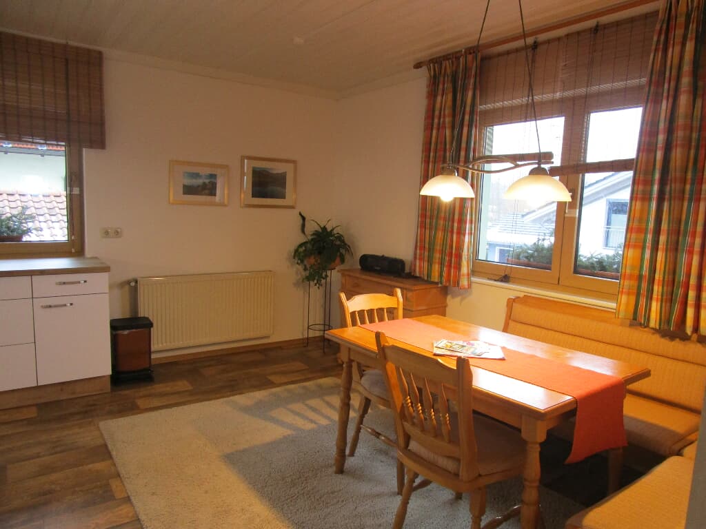 Die gemütliche Ferienwohnung für 2 Personen befindet sich im 1. Stock mit Blick in unseren großen Garten. Ausgestattet mit 1 Doppel-Schlafzimmer, großem Wohnbereich mit Couchgarnitur, SAT-TV, Radio, Essecke und Küchenzeile mit Spülmaschine, Kaffeemaschine, Wasserkocher und Toaster, Dusche/WC und großem Balkon. kostenloses W-LAN Auf Wunsch - Brötchenservice! Wir bitten unsere Gäste in der Wohnung nicht zu rauchen!