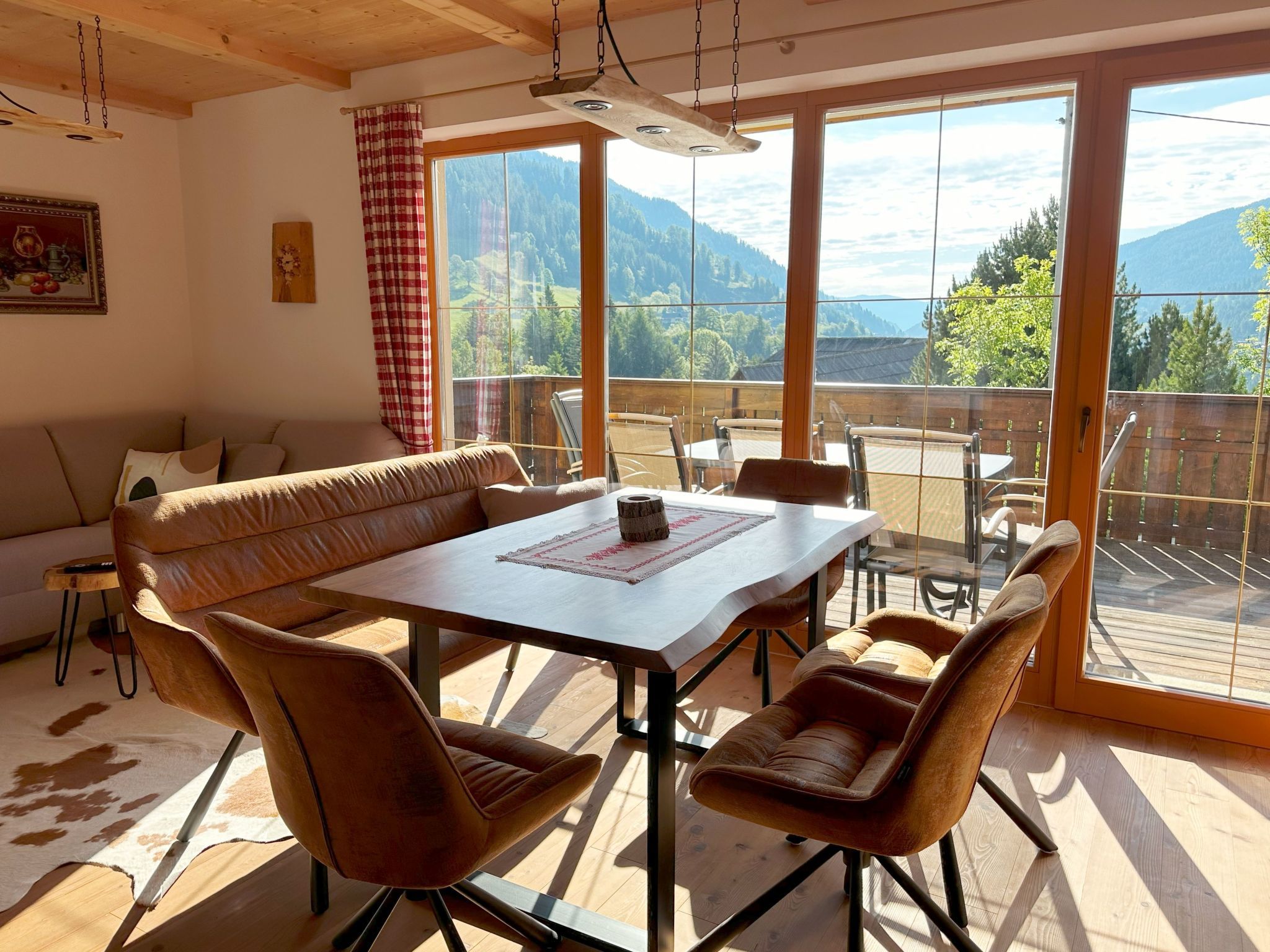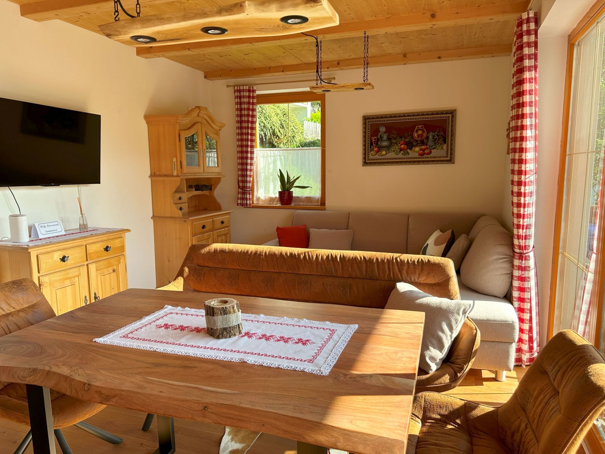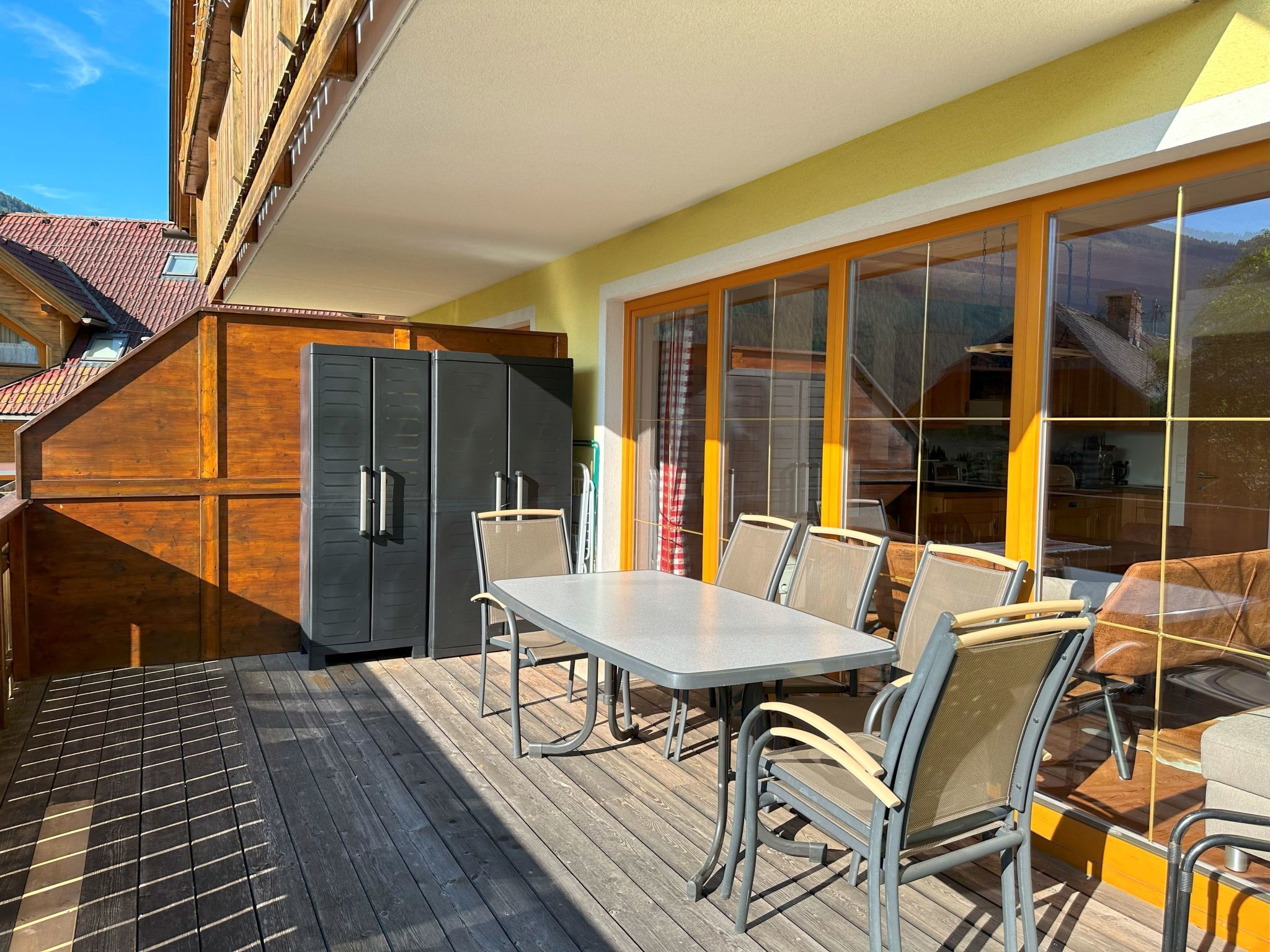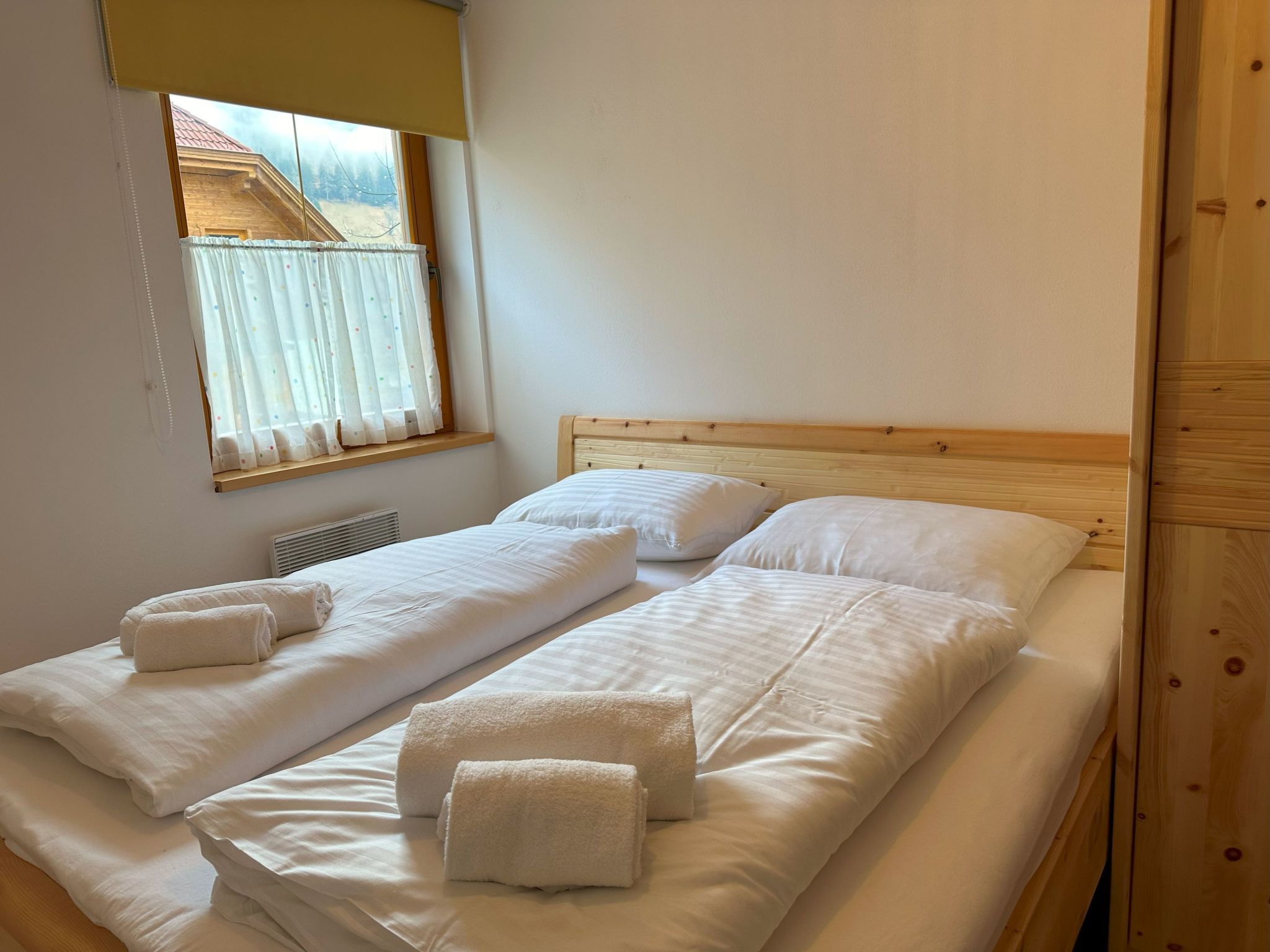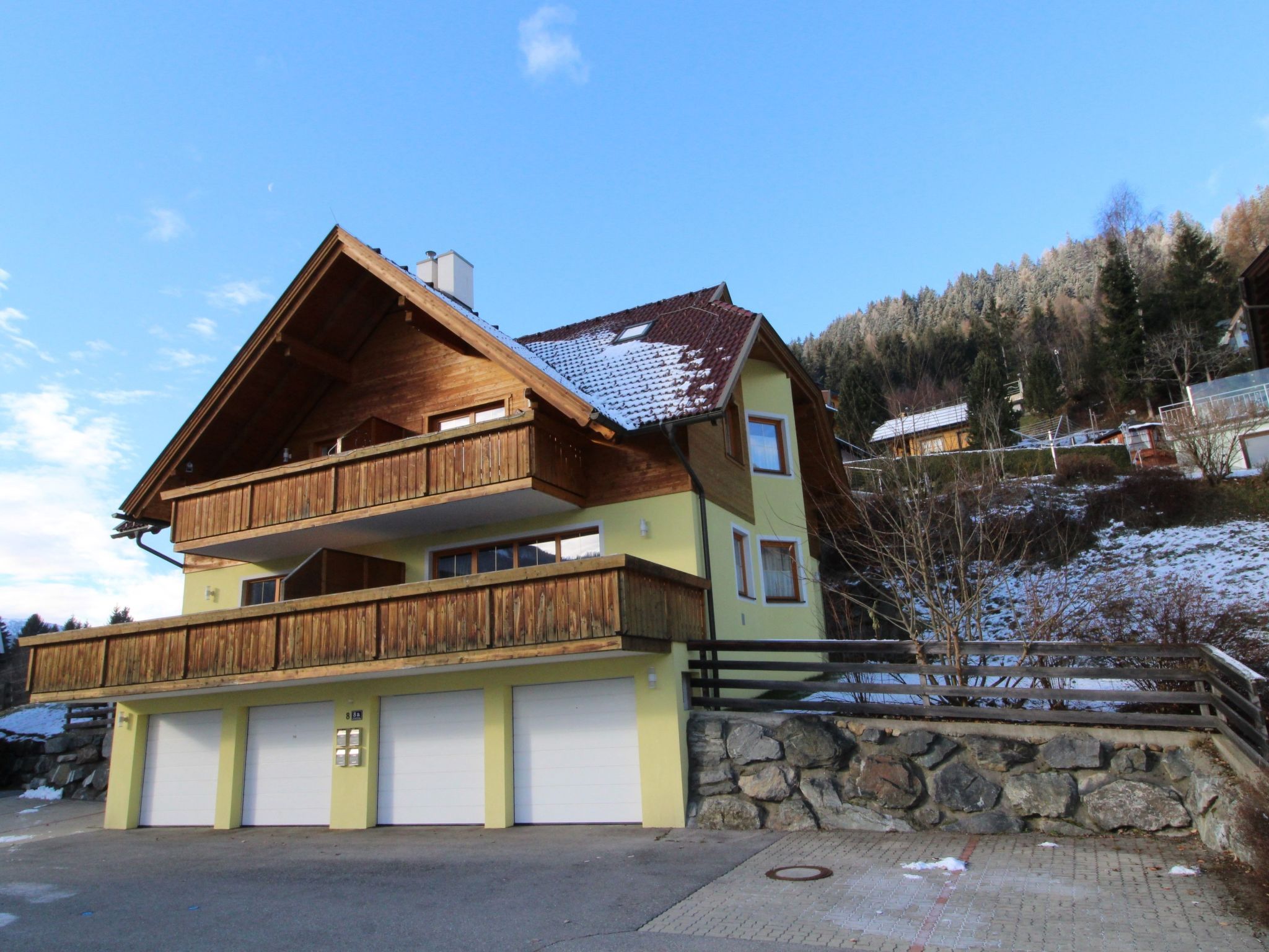 Willkommen in Ihrem Traumurlaub! Entdecken Sie unsere helle 2-Zimmer-Wohnung im idyllischen Weiler Obertschern, perfekt gelegen in atemberaubender Panoramalage. Nur wenige Schritte trennen Sie von der Sonnwiesbahn, und das Zentrum von Bad Kleinkirchheim ist gerade einmal 5 Autominuten entfernt. Ideal für 4 bis 5 Personen, bietet diese Ferienunterkunft alles, was Sie für einen unvergesslichen Aufenthalt benötigen. Die Innenausstattung lässt keine Wünsche offen. Genießen Sie erholsame Nächte im Schlafzimmer mit bequemem Doppelbett oder im zweiten Schlafzimmer, das mit zwei Etagenbetten für bis zu vier Personen bestens ausgestattet ist. Das großzügige Wohnzimmer mit Schlafsofa ist der perfekte Ort zum Entspannen nach einem Tag im Schnee. Die angrenzende Küchenzeile ist mit einem Geschirrspüler versehen, und für Ihr Wohlbefinden gibt es zwei Badezimmer – eines mit Dusche und WC und ein weiteres mit WC und Bidet. Im Außenbereich lädt die große Terrasse zum Verweilen ein. Nicht zu vergessen, die private Garage, die Ihren Aufenthalt in unserer Ferienwohnung noch komfortabler macht. Von diesem ruhigen Rückzugsort aus haben Sie einen unverstellten Blick auf die malerische Umgebung, die zu jeder Jahreszeit für Begeisterung sorgt. Ihre perfekte Lage verspricht einen Urlaub voller Abenteuer. Bad Kleinkirchheim ist nicht nur für seine 103 km abwechslungsreiche Pisten, 25 Lifte und 12 km Langlaufloipen bekannt, sondern auch als Kurort, der Wintersport mit alpiner Wellness verbindet. Egal ob Sie auf der legendären Franz Klammer Weltcup-Piste Herausforderungen suchen oder in einem der öffentlichen Bäder entspannen möchten – die Region bietet für jeden etwas. Wählen Sie unsere Ferienwohnung in Bad Kleinkirchheim für Ihren nächsten Urlaub und erleben Sie den idealen Mix aus aktiver Erholung und Entspannung in exklusiver Lage. Hier, wo Komfort auf Natur trifft, werden Sie unvergessliche Momente mit Familie oder Freunden sammeln. Wir freuen uns darauf, Sie bald als unsere Gäste zu begrüßen! Basisinformationen - Anzahl Personen: 6 - Erlaubte Haustiere: 1 - erlaubte Hundegröße: klein (bis 30 cm) - Unterkunftstyp: Ferienwohnung - befindet sich in: Anlage - Art d. Wohnung: Einliegerwohnung - Art d. Gebäudes: Reihenhaus - Etage, auf der sich das Objekt befindet: OG1 - Gesamtanzahl d. Stockwerke im Gebäude über EG: 2 - Wohnfläche: 80 m² - Schlafzimmeranzahl: 2 - Badezimmeranzahl: 2 Top Merkmale - WLAN - Heizung: überall - Terrasse - Garten: zur gemeinschaftlichen Nutzung - komplett eingefriedet (mit Mauer, Zaun oder Hecke) - Private PKW-Stellplätze insgesamt für diese Unterkunft: 2 - ㄴ davon Garagenstellplätze: 1 - ㄴ davon Carport-Stellplätze: keinen - ㄴ davon private Außenstellplätze: 1 Schlafen Schlafzimmer 1 - Doppelbett (1,80m Breite) Schlafzimmer 3 - 2x Etagenbett Badezimmer Badezimmer 1 - Dusche - Waschbecken - Toilette - Föhn Badezimmer 3 - Waschbecken - Toilette - Bidet Kochen/Wohnen - Kaffeemaschine: Filter-Kaffeemaschine - Kühl-/Gefrierschrank: Tiefkühlschrank, Kühlschrank - Herd: Herd - Backofen - Minibackofen - Toaster - Mikrowelle - Wasserkocher - Spülmaschine - Anzahl Esstische: 1 - Gesamtzahl Sitzplätze: 8 - Anzahl Wohnzimmer: 1 Entertainment - Fernseher: Sat.-TV Hauswirtschaft - Waschmaschine: zur alleinigen Nutzung im Objekt - Bügeleisen - Staubsauger Umgebung - direkt am Waldrand - nächstgelegene Ortsmitte: 4,0 km - Lebensmittelhandel: 4,0 km - Cafés/Restaurants: 100 m - Golfplatz: 5,0 km - Wanderweg: 100 m - Ski - Skiabfahrt: 100 m - Skischule: 400 m - Skibus: 500 m - Berg-/Seilbahn: 100 m Besonderheiten - Inmitten der Natur gelegen