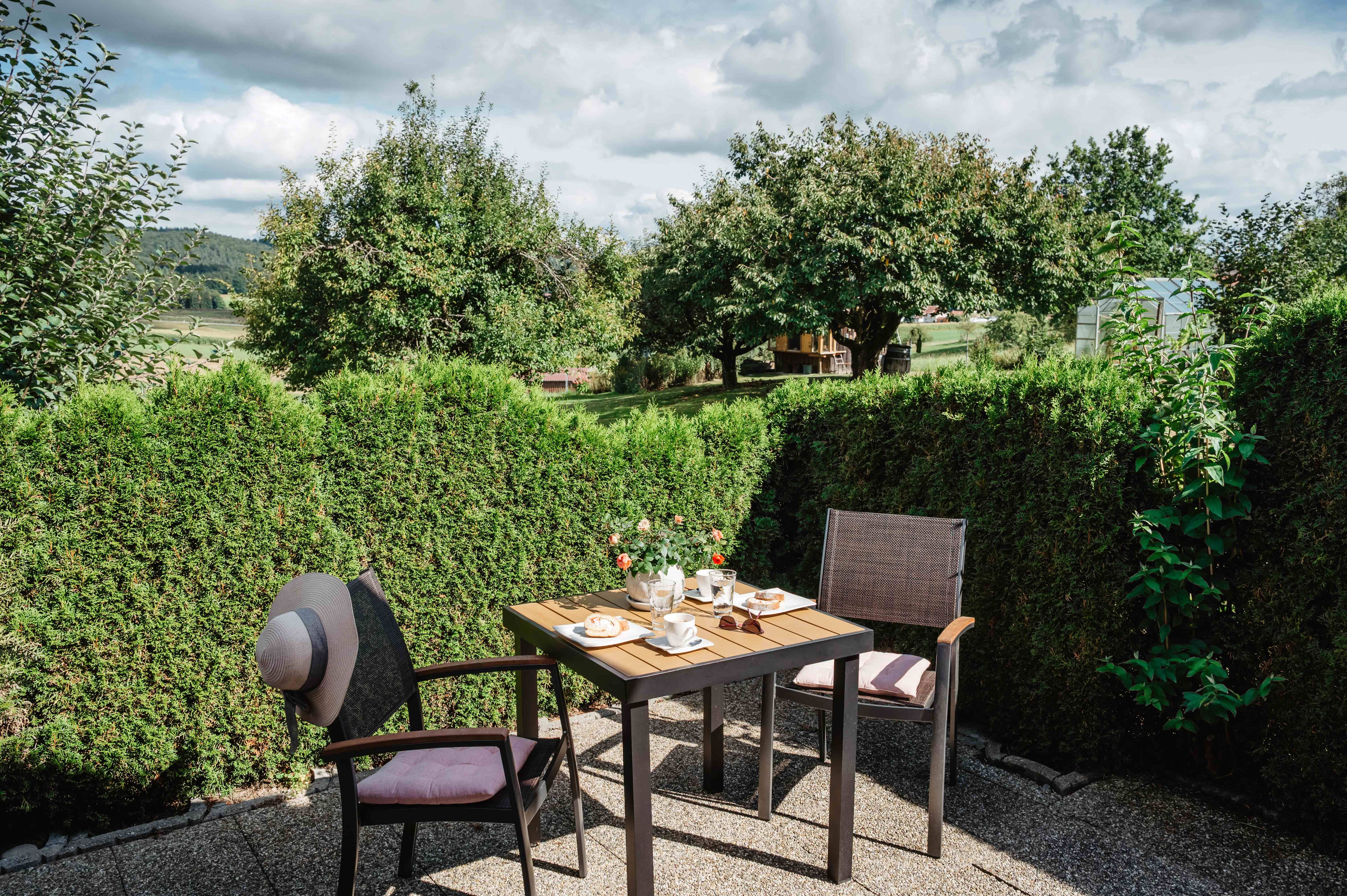 Auf der Anlage: Weitere lauschige Sitzplätze, Kinderfahrzeuge, Spielplatz mit Schaukel, Rutsche, Federwippe, Spielscheune mit TT, Kicker Kasten, Dartscheibe, sowie eine kleine Bibliothek stehen unseren Gästen kostenlos zur Verfügung. Liebe Kinder, es steht euch ein Tipi mit zwei Schlafsäcken zur Verfügung, für das besondere Erlebnis unter freiem Himmel. Wir haben Hühner und Wachteln, die Eier werden gerne von den kleinen Gästen geholt! Selbstgemachte Marmeladen und Honig vom Imker, Kostenlos: Wlan, Parkplatz, Kaminholz, Handtücher, Bettwäsche, Reinigungsutensilien, Hygieneartikel, Kinderbett und Hochstuhl: