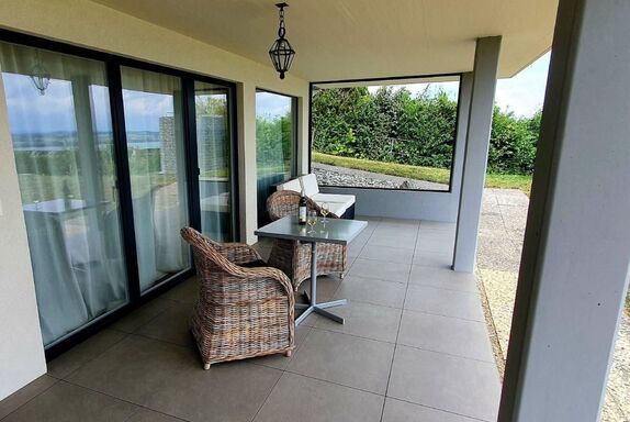 Das Gebiet um den Murtensee war ursprünglich von Pfahlbauern besiedelt. Dann bauten die Helvetier ihre Hauptstadt Aventicum, das heutige Avenches. Später wurde die Zähringerstadt Murten gegründet, wo die Eidgenossen in der Schlacht von 1476 Karl der Kühne von Burgund besiegten. Fernab vom Massentourismus geniessen hier die Einwohner eine hohe Lebensqualität, inmitten einer idyllischen Landschaft, die reich an kulinarischem Erbe ist. Kurz gesagt, klein, aber fein! Die zweisprachige Region lädt seine Besucher zu Radfahren, Wandern, Stand-up-Paddling , Schwimmen, Segeln, Motorbootfahren oder einer Tour auf dem Kursschiff ein. Mitten in den Weinbergen des Mont Vully und 15 min. von Murten oder Avenches entfernt, befindet sich die Ferienwohnung «Riposo» (Impasse des Cerisiers) im Erdgeschoss eines gepflegten Einfamilienhauses mit Sicht auf den Murtensee, die Alpen und die Broyeebene. Ruhe pur! Die Unterkunft ist hochwertig mit Geschmack und Liebe zum Detail eingerichtet. - Wohn- / Esszimmer, Bettsofa (140 x 200), TV / Radio, gut ausgestatte Küche, Cerankochfelder, Ofen, Geschirrspüler, Wasserkocher, Kaffeemaschine (Nespresso) - Badezimmer mit Natursteinbecken, Dusche / Badewanne - Waschmaschine und Wäschetrockner - Schlafzimmer mit Doppelbett (160 x 200) und separatem Büro, WLAN - Überdachte Veranda zum Chillen, Gartensitzplatz, Liegestühle, Gartendusche mit warmem und kaltem Wasser, mehrere Aussenparkplätze - E-Bike-Ladebuchse Begrüssung und Schlüsselübergabe ab 16.00 Uhr Sonstige Schlafzimmereinrichtung (Schlafzimmer1): 1 Bettsofa (140 x 200) im Wohn- / Esszimmer Sportmöglichkeiten in der Umgebung: Golfplatz, Radtouren, Rudern, Surfen, Tauchen, Wasserski, Segeln Basisinformationen - Erlaubte Haustiere: keins - Etage, auf der sich das Objekt befindet: EG - Grundstücksfläche: 2074 m² - letzte umfassende Renovierung: 2014 - keine Einsicht von der Straße - Nichtraucherunterkunft - Schlafzimmeranzahl: 1 - Badezimmeranzahl: 1 Top Merkmale - WLAN - Klimaanlage: keine - Heizung: überall - Terrasse - Garten: zur gemeinschaftlichen Nutzung - komplett eingefriedet (mit Mauer, Zaun oder Hecke) - Private PKW-Stellplätze insgesamt für diese Unterkunft: 1 - ㄴ davon private Außenstellplätze: 1 Schlafen im Wohnbereich - Schlafsofa 1 Person - Schlafzimmer abdunkelbar Schlafzimmer 1 - Doppelbett (von 1,51 m bis 1,79 m Breite) - Schlafzimmer abdunkelbar Badezimmer Badezimmer 1 - Badewanne mit Duschvorrichtung - Waschbecken - Toilette - Föhn - Tageslicht Kochen/Wohnen - Kaffeemaschine: Espressokanne, Kaffeemaschine - Kühl-/Gefrierschrank: Gefrierfach, Kühlschrank - Herd: Elektroherd, Herd - Dunstabzugshaube - Backofen - Toaster - Wasserkocher - Spülmaschine - Größe der Küche: 10 m² - Anzahl Esstische: 1 - Gesamtzahl Sitzplätze: 3 - Anzahl Wohnzimmer: 1 Entertainment - Fernseher: TV Hauswirtschaft - Waschmaschine: zur gemeinschaftlichen Nutzung im Gebäude - Wäschetrockner: zur alleinigen Nutzung im Objekt - Staubsauger Außenbereich - Veranda - Outdoormöbel Umgebung - Aussicht: Berg, Tal - nächstgelegene Ortsmitte: 12,0 km - Lebensmittelhandel: 2,4 km - Cafés/Restaurants: 950 m - Bahnhof: 7,0 km - Flughafen: 125,0 km - Autobahn: 9,0 km - See: 3,0 km - Bootsverleih - Fahrrad-Verleih: 1 m