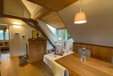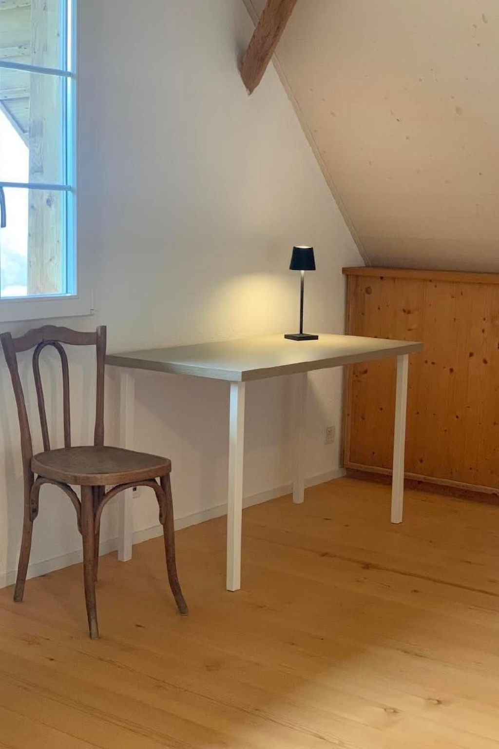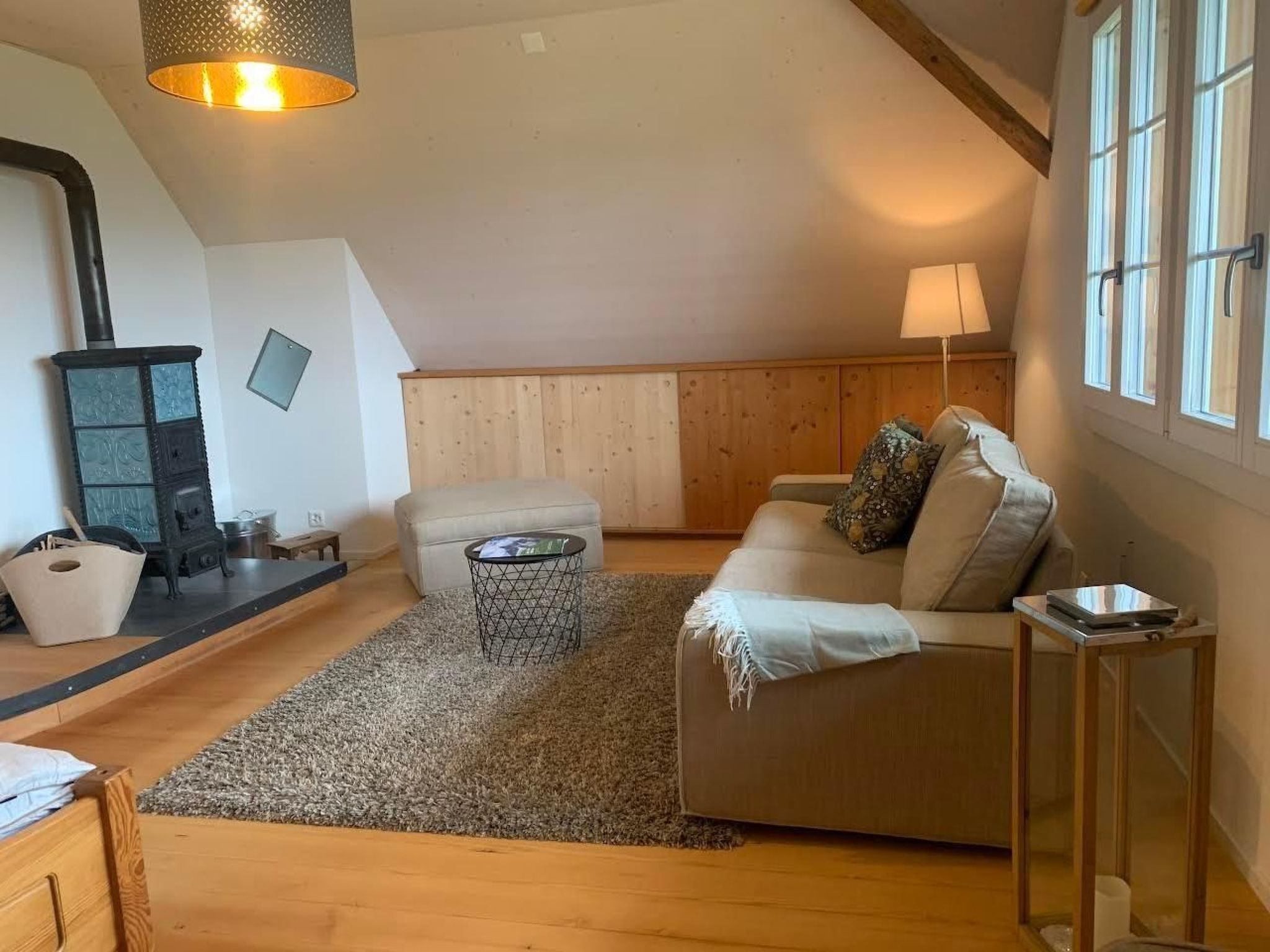 Das ältere und frisch renovierte Bauernhaus liegt über dem Dorf Wikartswil auf knapp 900m mit Blick auf die wunderschönen Hausberge Eiger, Mönch und Jungfrau sowie die hügelige Emmentaler-Landschaft. Wer einen ruhigen Ort inmitten der Natur sucht, ob zum Wandern oder Abschalten, ist hier genau richtig. Velotouren und Wanderungen können direkt vor der Haustüre gestartet werden. Auch wer gerne Thun, Bern oder Burgdorf besichtigen möchte, ist in nur 30 Min. Autofahrt in den Städten. Der nächste Bahnhof mit direkter Verbindung nach Bern ist in Worb (SBB). Dieser ist in ca. 10 Min. mit dem Auto erreichbar. Die Wohnung befindet sich im Dachgeschoss unseres liebevoll umgebauten Bauernhauses. Wir haben die Wohnung bis vor kurzem selbst bewohnt. Wir leben auf dem Hof mit unseren Pferden und bewohnen nun den unteren Teil des Hauses. Die Wohnung wurde im 2021 renoviert und hat einen schönen antiken Ofen, mit welchem an kühleren Tagen eine gemütliche Atmosphäre geschaffen werden kann. Für wärmere Tage steht ein Sitzplatz im Freien zur Verfügung. Freue dich auf eine ruhige, entschleunigende Atmosphäre inmitten der Natur. Basisinformationen - Erlaubte Haustiere: 1 - Nichtraucherunterkunft - Schlafzimmeranzahl: 1 - Badezimmeranzahl: 1 Top Merkmale - WLAN - Klimaanlage: keine - Heizung: teilweise - Garten: zur gemeinschaftlichen Nutzung - Private PKW-Stellplätze insgesamt für diese Unterkunft: 1 - ㄴ davon private Außenstellplätze: 1 Schlafen Schlafzimmer 1 - Doppelbett (1,80m Breite) Badezimmer Badezimmer 1 - Badewanne mit Duschvorrichtung - Waschbecken - Toilette - Föhn - Tageslicht Kochen/Wohnen - Kaffeemaschine: Espressokanne, Kaffeemaschine - Kühl-/Gefrierschrank: Tiefkühlschrank, Kühlschrank - Herd: Herd - Dunstabzugshaube - Backofen - Mikrowelle - Wasserkocher - Spülmaschine - Anzahl Esstische: 1 - Gesamtzahl Sitzplätze: 4 - Ofen Außenbereich - Veranda Besonderheiten - Bauernhaus