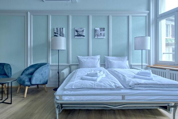 Das moderne, klimatisierte Apartment (43 m2) im 1. Obergeschoss bietet Platz für bis zu 4 Personen. Durch die gelungene Kombination aus stilvollen Elementen und einer warmen, einladenden Atmosphäre sorgt die Wohnung für ein angenehmes Wohlfühlambiente. Das Schlafzimmer ist mit einem komfortablen Doppelbett (160cm x 200cm) ausgestattet, das eine erholsame Nachtruhe gewährleistet. Die sanfte Beleuchtung und die abgestimmten Materialien sorgen für eine ruhige und entspannende Atmosphäre, die ideal für einen erholsamen Schlaf ist. Der gemütliche Wohnbereich ist liebevoll eingerichtet und lädt zum Verweilen ein. Hier findest Du eine bequeme Sofaecke und einen kleinen Essbereich, an dem Du deine Mahlzeiten geniessen kannst. Das Schlafsofa bietet Platz für zwei weitere Personen, sodass auch kleinere Gruppen oder Familien einen angenehmen Aufenthalt haben. Die moderne Küche mit Kochmöglichkeit, Mikrowelle, Geschirrspüler und Nespresso Kaffeemaschine ist komplett ausgestattet mit allem, was Du für deinen Aufenthalt benötigst. Die Unterkunft bietet kostenlose, mitbenutzte Wäschemöglichkeiten. Das Apartment ist mit einem 55-Zoll-Fernseher und High-Speed Internet ausgestattet, das für bestes Entertainment sorgt. Für alle Film- und Serienliebhaber besteht die Möglichkeit sich mit dem persönlichen Netflix-Zugang zu verbinden. Das Badezimmer ist mit einer eleganten Dusche und einem WC ausgestattet. Die modernen Fliesen und die hochwertige Ausstattung verleihen dem Raum eine angenehme Atmosphäre. Das Apartment besticht durch seine Helligkeit, die durch die grossen Fenster und die ausgewählte Farbgestaltung noch verstärkt wird. Die geschmackvolle und hochwertige Einrichtung sorgt für eine perfekte Mischung aus Funktionalität und Wohlfühlcharakter. Im Untergeschoss befindet sich die gemeinschaftliche Waschküche mit Waschmaschine und Trockner. Das historische Gebäude, einst ein imposantes Bankhaus, befindet sich inmitten des pulsierenden Zentrums von Interlaken und ist nur wenige Schritte vom Bahnhof Interlaken West entfernt. Die Busstation ist nur wenige Meter vom Eingang entfernt. Haustiere und Rauchen im Haus sind nicht erlaubt. Es stehen keine Parkplätze vor Ort zur Verfügung. Öffentliche, kostenpflichtige Parkmöglichkeiten sind jedoch in unmittelbarer Nähe vorhanden. Basisinformationen - Erlaubte Haustiere: keins - befindet sich in: Residenz - Art d. Gebäudes: Mehrparteienhaus - Etage, auf der sich das Objekt befindet: OG1 - Gesamtanzahl d. Stockwerke im Gebäude über EG: 4 - Grundstücksfläche: 43 m² - Nichtraucherunterkunft - Schlafzimmeranzahl: 1 - Badezimmeranzahl: 1 Top Merkmale - WLAN - Klimaanlage: überall - Heizung: überall - Fußbodenheizung: keine Schlafen im Wohnbereich - Schlafsofa 2 Personen - Schlafzimmer abdunkelbar Schlafzimmer 1 - Doppelbett (von 1,51 m bis 1,79 m Breite) - Schlafzimmer abdunkelbar Badezimmer Badezimmer 1 - Dusche - Waschbecken - Toilette - Föhn Kochen/Wohnen - Kaffeemaschine: Kapsel-Kaffeemaschine - Kühl-/Gefrierschrank: Gefrierfach, Kühlschrank - Herd: Zwei-Platten-Herd, Induktionsherd - Dunstabzugshaube - Toaster - Mikrowelle - Wasserkocher - Spülmaschine - Geschirrtücher - Anzahl Esstische: 1 - Gesamtzahl Sitzplätze: 2 - Anzahl Wohnzimmer: 1 - Wohnzimmer abdunkelbar Entertainment - Fernseher: TV Für Kinder - Kinderstuhl Hauswirtschaft - Waschmaschine: zur gemeinschaftlichen Nutzung im Gebäude - Wäschetrockner: zur gemeinschaftlichen Nutzung im Gebäude - Bügeleisen - Ventilator: keinen - Rauchmelder Barrierefreiheit - Aufzug Nachhaltigkeit - Abfallrecycling - Wassersparende Geräte - Erneuerbare Energien - Hausisolierung Außenbereich - Grillen nicht zulässig Umgebung - nächstgelegene Ortsmitte: 2 m - Lebensmittelhandel: 50 m - Bars/Clubs/Ausgehen: 50 m - Cafés/Restaurants: 50 m - Bahnhof: 350 m - nächste Haltestelle ÖPNV: 20 m - Wasser (Meer, See etc.): 3,5 km - See: 3,5 km