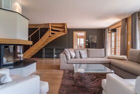 Luxus pur erwartet Sie in der 6.5-Zimmerwohnung auf 266m2, im Dachgeschoss mit Galerie. Die Wohnung im eleganten Alpinlook verfügt über fünf Schlafzimmer mit Doppelbetten, vier davon mit Badezimmer en suite, jeweils mit Badewanne und/oder Dusche und WC und ein separates Badezimmer mit Badewanne und WC. Die Wohnung verfügt über eine offene, sehr gut ausgestattete Küche, die an den grosszügigen Wohn- und Essbereich mit Cheminée anschliesst. Sechs Balkone gehören zur Wohnung – damit haben Sie zu jeder Zeit optimale Aussichten auf die wunderschöne Bergwelt. Mit dem Lift gelangen Sie direkt aus der Tiefgarage in die Wohnung. Das Haus befindet sich 10 Minuten zu Fuss vom Dorfzentrum entfernt, die Bushaltestelle liegt praktisch vor der Haustür. WiFi und zwei Garagenplätze sind im Mietpreis inbegriffen. Haustiere sind willkommen. Rauchen im Haus ist nicht erlaubt. Ob Sie eine Ferienwohnung oder ein Chalet suchen, bei der GRIWA RENT AG sind Sie richtig! Unsere Teams in Interlaken und Grindelwald beraten Sie gerne. Wir gehen auf Ihre Wünsche ein und finden Ihr passendes Ferienobjekt. Gästezufriedenheit liegt uns am Herzen. Sie sollen unvergessliche Ferien bei uns verbringen. Egal ob Sie alleine reisen, oder in der Gruppe. Wir haben das passende Urlaubsdomizil für Sie! Das gastliche Gletscherdorf Grindelwald liegt eingebettet in einer abwechslungsreichen, unverfälschten Alpenlandschaft. Die imposante, weltbekannte und eisgekrönte Bergkulisse mit Wetterhorn, Eiger, Mönch und Jungfrau ist für Grindelwald das Bühnenbild. Im Sommer stehen in der Region über 500 Kilometer markierte Spazier-. Wander- und Bergwege zur Verfügung. Unterwegs laden gemütliche Bergrestaurants mit einem abwechslungsreichen kulinarischen Angebot zum Geniessen, Ausruhen und Verweilen ein. Viele weitere Sommeraktivitäten werden in der Region angeboten wie: 160 Kilometer signalisierte Mountainbike Routen, Paragliding, Bungee jumping in der Gletscherschlucht, Trottibikestrecke, Sommerrodelbahn, First cliff walk und vieles mehr. Im Winter laden 45 Bahnen und Skilifte in der Jungfrauregion zum Schneevergnügen ein. Die drei Teilregionen Grindelwald-First, Kleine Scheidegg - Männlichen und Mürren - Schilthorn erschliessen über 200 Pistenkilometer mit rasanten und gemütlichen Talfahrten. Mit 100 Kilometer Winterwanderwegen kommen auch Nichtskifahrer voll auf ihre Kosten. Zudem ist die Region ein wahres Schlittel- und Rodelparadies. Vom Faulhorn führt ein Schlittelweg bis nach Grindelwald. Diese Strecke ist mit über 15 Kilometern der längste Schlittelweg der Alpen. Viele weitere Schneesportvergnügen werden in der Jungfrau Region angeboten wie Schneeschuhtouren, Langlauf oder Eissport. Basisinformationen - Erlaubte Haustiere: 1 - Art d. Gebäudes: Mehrparteienhaus - Etage, auf der sich das Objekt befindet: OG2 - Nichtraucherunterkunft - Schlafzimmeranzahl: 5 - Badezimmeranzahl: 5 Top Merkmale - WLAN - Klimaanlage: keine - Heizung: überall - Fußbodenheizung: teilweise - Balkon - Private PKW-Stellplätze insgesamt für diese Unterkunft: 2 - ㄴ davon Garagenstellplätze: 2 Schlafen Schlafzimmer 1 - Doppelbett (1,80m Breite) - Schlafzimmer abdunkelbar Schlafzimmer 3 - Doppelbett (1,80m Breite) - Schlafzimmer abdunkelbar Schlafzimmer 5 - Doppelbett (1,80m Breite) - Schlafzimmer abdunkelbar Schlafzimmer 7 - Doppelbett (1,80m Breite) - Schlafzimmer abdunkelbar Schlafzimmer 9 - Doppelbett (1,80m Breite) - Schlafzimmer abdunkelbar Badezimmer Badezimmer 1 - Dusche - Waschbecken - Toilette - Föhn Badezimmer 3 - Dusche - Badewanne - Waschbecken - Toilette - Föhn - Tageslicht Badezimmer 5 - Badewanne mit Duschvorrichtung - Waschbecken - Toilette - Föhn - Tageslicht Badezimmer 7 - Badewanne mit Duschvorrichtung - Waschbecken - Toilette - Föhn - Tageslicht Badezimmer 9 - Badewanne mit Duschvorrichtung - Waschbecken - Toilette - Föhn - Tageslicht Kochen/Wohnen - Kaffeemaschine: Kaffeemaschine - Kühl-/Gefrierschrank: Gefrierfach, Kühlschrank - Herd: Herd - Dunstabzugshaube - Backofen - Toaster - Mikrowelle - Wasserkocher - Spülmaschine - Geschirrtücher - Anzahl Esstische: 1 - Gesamtzahl Sitzplätze: 10 - Anzahl Wohnzimmer: 1 - Kamin - Ofen Entertainment - Fernseher: TV Hauswirtschaft - Waschmaschine: zur alleinigen Nutzung im Objekt - Wäschetrockner: zur alleinigen Nutzung im Objekt - Bügeleisen - Staubsauger Barrierefreiheit - Aufzug Außenbereich - Outdoormöbel Umgebung - Aussicht: Berg, Tal