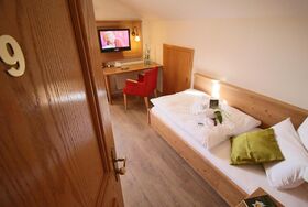 Das Zimmer bietet direkten Zugang zum Balkon mit Abendsonne (Westseite). Es sind alles Nichtraucherzimmer mit Echtholzboden und G***Komfort. Dazu gehören z.B. Safe, Telefon, TV, WLAN für den kostenfreien Internetzugang und selbstverständlich Du/WC, u.a. mit Fön und Kosmetikspiegel.