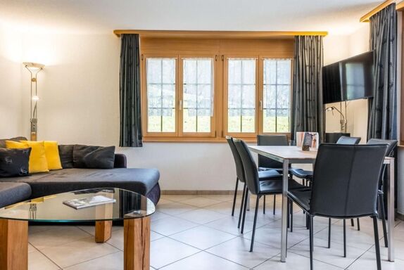Die gemütliche und mit 62m2 geräumige 2.5-Zimmerwohnung im Obergeschoss des Chalets verfügt über ein Schlafzimmer mit Doppelbett und ein Badezimmer mit Badewanne und WC. Die gut ausgestattete Küche mit Bar öffnet sich gegen einen grosszügigen Wohn- und Essbereich. Auf dem Süd-Balkon geniessen Sie die Aussicht auf die Grindelwalder Bergwelt. Das Haus befindet sich 5 Minuten zu Fuss vom Dorfzentrum, die Bushaltestelle liegt in der Nähe. WiFi und ein Parkplatz sind im Mietpreis inbegriffen. Haustiere und Rauchen im Haus sind nicht erlaubt. Ob Sie eine Ferienwohnung oder ein Chalet suchen, bei der GRIWA RENT AG sind Sie richtig! Unsere Teams in Interlaken und Grindelwald beraten Sie gerne. Wir gehen auf Ihre Wünsche ein und finden Ihr passendes Ferienobjekt. Gästezufriedenheit liegt uns am Herzen. Sie sollen unvergessliche Ferien bei uns verbringen. Egal ob Sie alleine reisen, oder in der Gruppe. Wir haben das passende Urlaubsdomizil für Sie! Das gastliche Gletscherdorf Grindelwald liegt eingebettet in einer abwechslungsreichen, unverfälschten Alpenlandschaft. Die imposante, weltbekannte und eisgekrönte Bergkulisse mit Wetterhorn, Eiger, Mönch und Jungfrau ist für Grindelwald das Bühnenbild. Im Sommer stehen in der Region über 500 Kilometer markierte Spazier-. Wander- und Bergwege zur Verfügung. Unterwegs laden gemütliche Bergrestaurants mit einem abwechslungsreichen kulinarischen Angebot zum Geniessen, Ausruhen und Verweilen ein. Viele weitere Sommeraktivitäten werden in der Region angeboten wie: 160 Kilometer signalisierte Mountainbike Routen, Paragliding, Bungee jumping in der Gletscherschlucht, Trottibikestrecke, Sommerrodelbahn, First cliff walk und vieles mehr. Im Winter laden 45 Bahnen und Skilifte in der Jungfrauregion zum Schneevergnügen ein. Die drei Teilregionen Grindelwald-First, Kleine Scheidegg - Männlichen und Mürren - Schilthorn erschliessen über 200 Pistenkilometer mit rasanten und gemütlichen Talfahrten. Mit 100 Kilometer Winterwanderwegen kommen auch Nichtskifahrer voll auf ihre Kosten. Zudem ist die Region ein wahres Schlittel- und Rodelparadies. Vom Faulhorn führt ein Schlittelweg bis nach Grindelwald. Diese Strecke ist mit über 15 Kilometern der längste Schlittelweg der Alpen. Viele weitere Schneesportvergnügen werden in der Jungfrau Region angeboten wie Schneeschuhtouren, Langlauf oder Eissport. Sportmöglichkeiten in der Umgebung: Bergsteigen, Eislaufen, Golfplatz, Klettern, Mountainbiking, Paragliding, Radtouren, Rafting, Rodeln, Ski (alpin), Ski (Langlauf), Sportcenter, Tennis Basisinformationen - Erlaubte Haustiere: keins - Art d. Gebäudes: Mehrparteienhaus - Etage, auf der sich das Objekt befindet: OG1 - Nichtraucherunterkunft - Schlafzimmeranzahl: 1 - Badezimmeranzahl: 1 Top Merkmale - WLAN - Klimaanlage: keine - Heizung: überall - Fußbodenheizung: überall - Balkon - Private PKW-Stellplätze insgesamt für diese Unterkunft: 1 - ㄴ davon private Außenstellplätze: 1 Schlafen Schlafzimmer 1 - Doppelbett (1,80m Breite) - Schlafzimmer abdunkelbar Badezimmer Badezimmer 1 - Badewanne mit Duschvorrichtung - Waschbecken - Toilette Kochen/Wohnen - Kaffeemaschine: Kaffeemaschine - Kühl-/Gefrierschrank: Gefrierfach, Kühlschrank - Herd: Herd - Dunstabzugshaube - Backofen - Toaster - Mikrowelle - Wasserkocher - Spülmaschine - Geschirrtücher - Anzahl Esstische: 1 - Gesamtzahl Sitzplätze: 4 - Anzahl Wohnzimmer: 1 Entertainment - Fernseher: TV Außenbereich - Outdoormöbel Umgebung - Aussicht: Berg, Tal