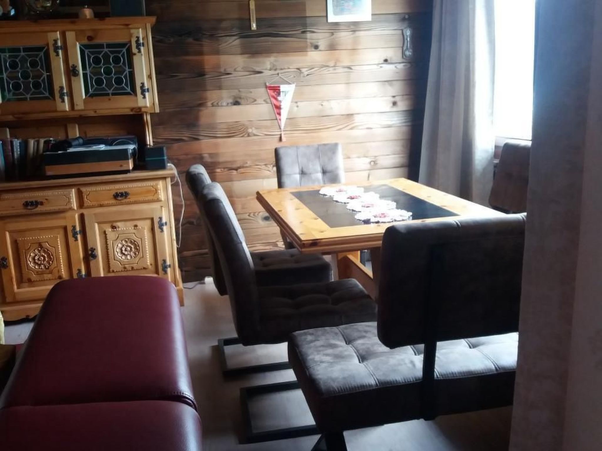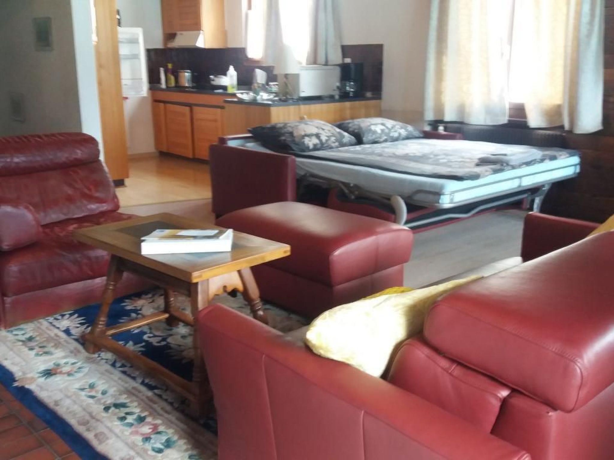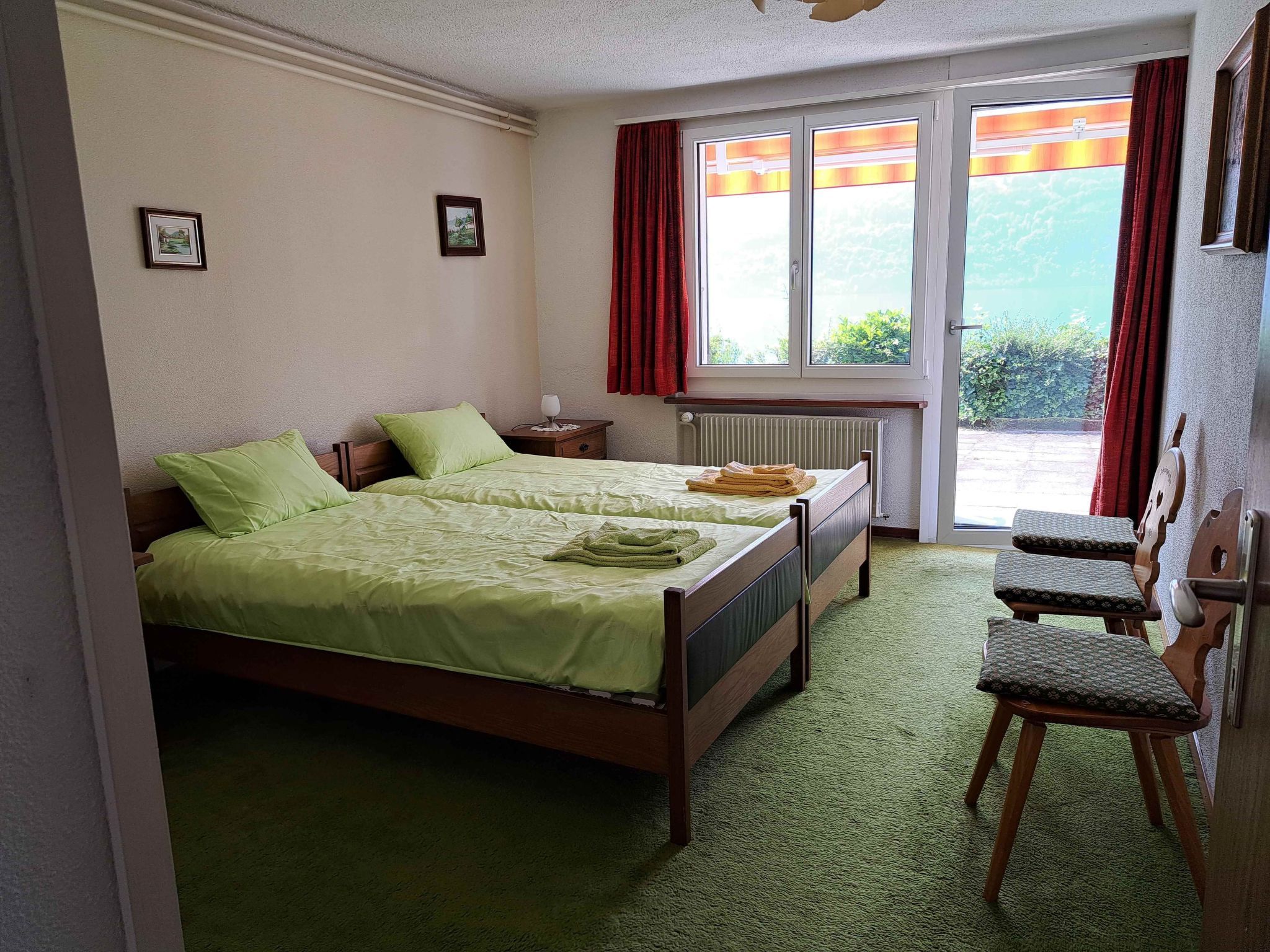 Entdecken Sie diesen einladenden, haustierfreundlichen Rückzugsort für einen unvergesslichen Urlaub direkt am malerischen Brienzersee. Gelegen im ruhigen Dörfchen Oberried, einem Juwel zwischen Brienz und Interlaken, erwartet Sie unsere 3-Zimmer-Wohnung auf zwei Etagen in einem charmanten Zweifamilienchalet. Mit traumhaftem Blick auf den See und die umliegenden Berge bietet dieses Domizil den perfekten Rahmen für eine Auszeit in der Natur. Innen erwartet Sie eine warme, rustikale Atmosphäre, die zum Verweilen und Entspannen einlädt. Im oberen Stock entfaltet sich ein geräumiges Wohnzimmer, das mit einem gemütlichen Interieur und einem angrenzenden Balkon den Charme der Region widerspiegelt. Die offene, gut ausgestattete Küche lässt keine Wünsche offen und bietet neben einem kleinen, portablen Backofen genügend Stauraum für allerlei Küchenutensilien. Die beiden Schlafzimmer im Untergeschoss sind nicht nur komfortabel, sondern auch praktisch mit großen Einbauschränken versehen, begleitet von einem ansprechenden Bad. Im Außenbereich lädt eine Terrasse mit angrenzender Liegewiese zum Genießen und Entspannen ein. Der direkte Zugang zum Brienzersee und zur öffentlichen Badewiese verspricht erfrischende Badetage und entspannte Stunden in malerischer Kulisse. Zur Unterbringung Ihres Fahrzeugs stehen Ihnen eine Autogarage sowie ein zusätzlicher Abstellplatz zur Verfügung, und für die Bootsliebhaber gibt es sogar eine eigene Bootsboje. Die Umgebung von Oberried ist ein Paradies für Naturliebhaber und Aktivurlauber. Die ruhige und sonnige Lage am türkisfarbenen Brienzersee, umgeben von malerischen alten Häusern und einer langen Uferpromenade, lädt zum Baden, Grillen und entspannten Spaziergängen ein. Die Nähe zu Interlaken eröffnet ein breites Spektrum an Freizeitmöglichkeiten, von idyllischen Schifffahrten über das tiefblaue Wasser bis hin zu aufregenden Wanderungen in das Jungfraugebiet oder auf das Brienzer Rothorn. Die vielfältigen Sportmöglichkeiten in der Region, wie Angeln und Bergsteigen, runden das Angebot ab und machen Ihren Aufenthalt zu einem unvergesslichen Erlebnis. Lassen Sie sich von der Schönheit des Brienzersees und der umliebenden Berge in diesem traumhaften Feriendomizil verzaubern. Ob Entspannung oder Abenteuer – diese gemütliche Wohnung in Oberried bietet den idealen Ausgangspunkt für eine unvergessliche Zeit. Freuen Sie sich auf einen Urlaub, in dem Ruhe und Erholung im Einklang mit Natur und Komfort stehen. Basisinformationen - Erlaubte Haustiere: 2 - erlaubte Hundegröße: groß (über 60 cm) - befindet sich in: Wohnsiedlung - Art d. Wohnung: Maisonette - Art d. Gebäudes: Doppelhaushälfte - Etage, auf der sich das Objekt befindet: OG1 - Gesamtanzahl d. Stockwerke im Gebäude über EG: 1 - Grundstücksfläche: 90 m² - Baujahr: 1970 - keine Einsicht von der Straße - Nichtraucherunterkunft - Schlafzimmeranzahl: 2 - Badezimmeranzahl: 1 Top Merkmale - WLAN - Klimaanlage: keine - Heizung: überall - Balkon - Terrasse - Garten: zur alleinigen Nutzung - komplett eingefriedet (mit Mauer, Zaun oder Hecke) - Private PKW-Stellplätze insgesamt für diese Unterkunft: 2 - ㄴ davon Garagenstellplätze: 1 - ㄴ davon private Außenstellplätze: 1 Schlafen im Wohnbereich - Schlafsofa 2 Personen - Schlafzimmer abdunkelbar Schlafzimmer 1 - Doppelbett (1,80m Breite) - Schlafzimmer abdunkelbar Schlafzimmer 3 - 2x Einzelbett - Zustellbett - Schlafzimmer abdunkelbar Badezimmer Badezimmer 1 - Badewanne mit Duschvorrichtung - Waschbecken - Toilette - Tageslicht Kochen/Wohnen - Kaffeemaschine: Pads-Kaffeemaschine - Kühl-/Gefrierschrank: Gefrierfach, Kühlschrank - Herd: Glaskeramikkochfeld, Herd - Dunstabzugshaube - Minibackofen - Wasserkocher - Geschirrtücher - Größe der Küche: 6 m² - Anzahl Esstische: 1 - Gesamtzahl Sitzplätze: 7 - Anzahl Wohnzimmer: 1 - Wohnzimmer abdunkelbar - Kamin Entertainment - Fernseher: TV, Kabel-TV Hauswirtschaft - Waschmaschine: zur alleinigen Nutzung im Objekt - Bügeleisen - Staubsauger - Einzelne Öfen / Heizlüfter / Radiatoren Nachhaltigkeit - Aufladestation für Elektro-Autos Außenbereich - Outdoormöbel - Grill: Grill Umgebung - Aussicht: Berg, Meer/See - nächstgelegene Ortsmitte: 11,0 km - Lebensmittelhandel: 700 m - Cafés/Restaurants: 300 m - Bahnhof: 700 m - Flughafen: 140,0 km - See: 50 m - Ski - Skilanglauf: 30,0 km - Berg-/Seilbahn: 25,0 km Besonderheiten - Anglerfreundlich