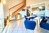 Die Galerieferienwohnung verfügt über 1 (Kinder-)Schlafzimmer (Bett 140x200), Bad/WC mit Fussbodenheizung, Wohnküche mit Einbauküche, Couch, Essecke und Balkon in der unteren Ebene und ein grosses (Eltern-)Schlafzimmer (Bett 180x200) auf der Galerie. Jedes Schlafzimmer und der Wohnraum haben je 1 eigenen Fernseher. Starten Sie gut in den Tag und nutzen Sie unseren Brötchenservice. Oder gönnen Sie sich unser Frühstücksbüfett mit hausgemachten Marmeladen. Dafür können Sie sich täglich neu entscheiden und kommen einfach rüber in unseren Frühstücksraum.