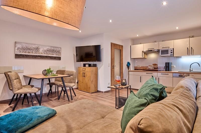 5 gemütlich eingerichtete Ferienwohnungen für 2-4 Personen in ruhiger Lage. Die Wohnungen sind komplett ausgestattet. Küchenzeile (Spülmaschine, Mikrowelle, Kaffeemaschine, Siemens-Kaffeevollautomat, Senseo-Kaffeemaschine, Brotschneidemaschine, Eierkocher, Wasserkocher, Toaster, Akkusauger), Stereoanlage mit Internetradio, Blu-Ray-Player, Videorecorder, DVD-Player, Sat-Farbfernseher mit Internet, Telefon (kostenlos ins Festnetz telefonieren)
