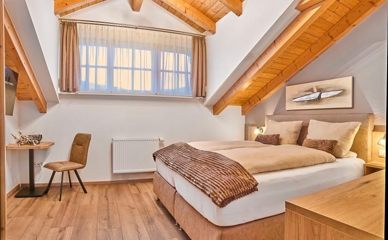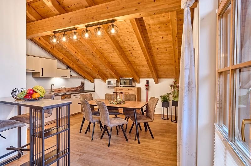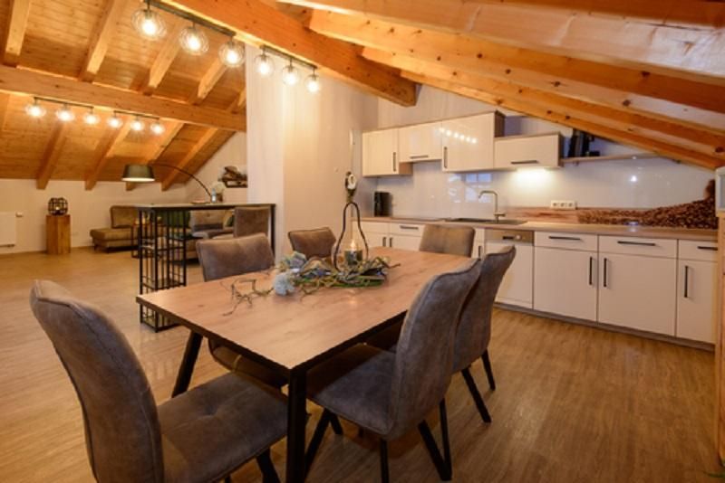 Unsere Ferienwohnung 1, die mit 5 Sternen klassifiziert ist, ist ein Traum zum Wohnen und bietet auf 100 m2 Platz für 2 bis 4 Personen. Die gemütliche Wohnküche ist mit Spülmaschine, Mikrowelle, Kaffeevollautomat, Brotschneidemaschine, Eierkocher, Wasserkocher und Toaster ausgestattet. Beide Schlafräume verfügen jeweils über ein Doppelbett. Das moderne Badezimmer mit Dusche, WC und Fön rundet das Gesamtbild ab. Außerdem können Sie in unserem Haus Internetradio, Videorecorder, DVD-Player, Sat-Fernsehen, Telefon und WLAN nutzen.