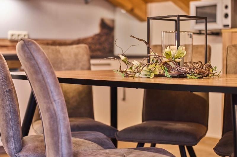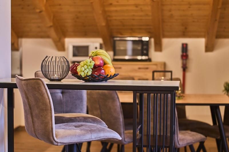 5 gemütlich eingerichtete Ferienwohnungen für 2-4 Personen in ruhiger Lage. Die Wohnungen sind komplett ausgestattet. Küchenzeile (Spülmaschine, Mikrowelle, Kaffeemaschine, Siemens-Kaffeevollautomat, Senseo-Kaffeemaschine, Brotschneidemaschine, Eierkocher, Wasserkocher, Toaster, Akkusauger), Stereoanlage mit Internetradio, Blu-Ray-Player, Videorecorder, DVD-Player, Sat-Farbfernseher mit Internet, Telefon (kostenlos ins Festnetz telefonieren)