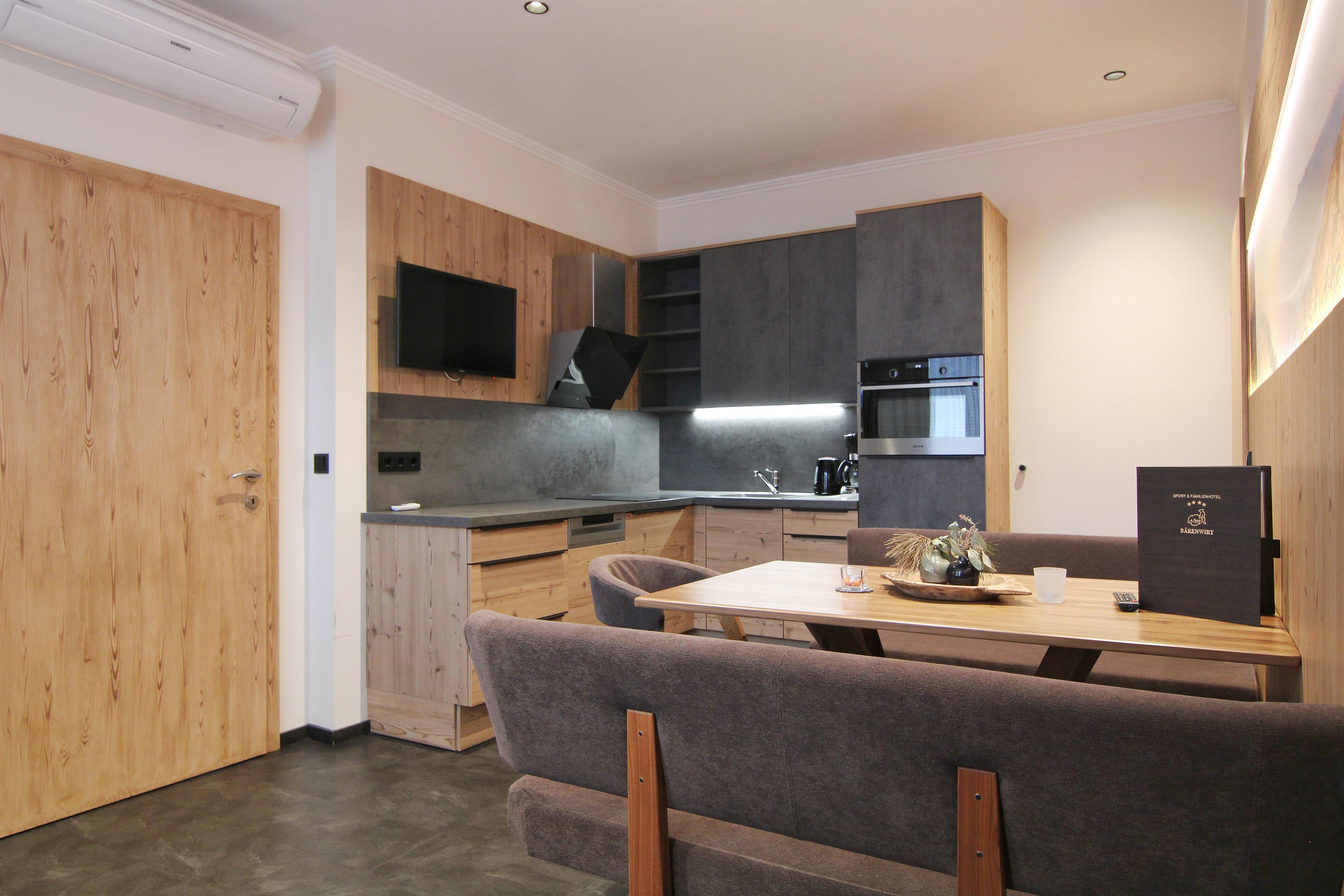 ca. 50 m² komfortable und praktische Ausstattung im ländlichen Stil garantiert Wohlempfinden und Urlaubsfreude. 2 Schlafzimmer, Wohnraum mit modernen Küchenblock Geschirrspüler, 2 Kabel-TV`s, Sonnenterrasse, Parkplätze etc. Genießen Sie alle Vorzüge eines Hotels wie zB unsere großzügige Wohlfühloase Bären SPA , Saunaland, Hotelpool, große Liegewiese, Ruhezonen, Animationsprogramm, Bären Extras und alle Annehmlichkeiten.