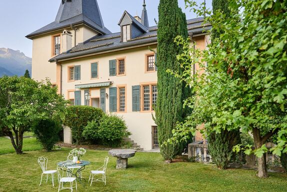 Ferien im Baudenkmal verbindet Denkmalpflege und Tourismus. Historisch wertvolle Bauzeugen werden übernommen, sanft renoviert und als Ferienwohnungen vermietet. Das Modell ermöglicht einen doppelten Gewinn: Die Baudenkmäler erhalten eine belebte Zukunft und die Feriengäste erleben einen Aufenthalt in einem aussergewöhnlichen Gebäude. Realisiert wird die Idee durch die Stiftung Ferien im Baudenkmal, welche 2005 vom Schweizer Heimatschutz gegründet wurde. Personen: 4-8 (plus ein Kind bis 2 Jahre). Schlafzimmer: 1 Schlafzimmer mit Doppelbett (180x 200), 1 Schlafzimmer mit Einzelbett (90x200), 1 Schlafzimmer mit zwei Einzelbetten (90x 200), 1 Schlafzimmer mit drei Einzelbetten (90x200), (Kinderbett auf Anfrage vorhanden.) Saison: ganzjährig Kurzferien: Keine Höhe: 760 m ü. M. Haustiere: nicht erlaubt. ÖV: Bahnhof Siders, mit dem Bus Richtung Crans Montana, Haltestelle Venthône, Anchettes. Das Schloss liegt ca. 180 Meter von der Bushaltestelle entfernt. Parkplatz: Ein kostenloser Parkplatz steht 100 Meter vom Haus entfernt zur Verfügung. Zum Abladen kann bis zum Haus gefahren werden. Im Schlosshof kann in Ausnahmefällen ein zweites Auto geparkt werden. Aussenbereich: Ein Sitzplatz im Garten, ein Teil des Gartens steht den Gästen zur Verfügung, der restliche Garten ist privat. WLAN: vorhanden (die dicken Schlossmauern verhindern einen lückenlosen WLAN Service) Heizung: Die Wohnung wird mit einer Zentralheizung beheizt Ofen: Keine Küche: 1 Backofen, 1 Glaskeramikherd, 1 Kühlschrank, 1 Geschirrspüler, Mocha-Kanne Badezimmer: 1 Badezimmer mit Dusche, WC, Doppellavabo. 1 Separates WC. Haartrockner vorhanden. Waschmaschine und Tumbler: nicht vorhanden. Gut zu wissen: Das Schloss mit Garten ist ein Baudenkmal. Wir bitten Sie, es mit grosser Rücksicht auf die vorhandene Bausubstanz zu nutzen. Der Mieter/die Mieterin ist sich dessen bewusst und geht sorgsam mit dem Objekt um. Die Grande Salle ist Teil der Wohnung und darf betreten werden. Dennoch werden die Gäste gebeten, darin weder zu essen noch zu trinken und die historischen Möbel (Sekretär, Sessel und Tisch) nicht zu benutzen. Obwohl das Haus technisch zeitgemäss ausgestattet ist, entsprechen gewisse funktionelle Details nicht den heute gängigen Gewohnheiten. Das Haus ist nicht barrierefrei. Diese Umstände sind dem Mieter bekannt. Der Eigentümer, e-domizil und die Stiftung Ferien im Baudenkmal lehnen jegliche Haftung ab. Weiter Informationen zum Haus finden Sie auf der Website der Stiftung Ferien im Baudenkmal Basisinformationen - Erlaubte Haustiere: keins - Unterkunftstyp: Ferienhaus - befindet sich in: nichts zutreffend - Art d. Gebäudes: Mehrparteienhaus - Gesamtanzahl d. Stockwerke im Gebäude über EG: 4 - Grundstücksfläche: 278 m² - Baujahr: 1893 - letzte umfassende Renovierung: 2025 - freistehend - keine Jugendgruppen - Nichtraucherunterkunft - Schlafzimmeranzahl: 4 - Badezimmeranzahl: 1 Top Merkmale - WLAN - Heizung: überall - Garten: zur gemeinschaftlichen Nutzung - komplett eingefriedet (mit Mauer, Zaun oder Hecke) - Private PKW-Stellplätze insgesamt für diese Unterkunft: 1 - ㄴ davon private Außenstellplätze: 1 Schlafen Schlafzimmer 1 - Doppelbett (1,80m Breite) Schlafzimmer 3 - Doppelbett (1,80m Breite) Schlafzimmer 5 - 3x Einzelbett Schlafzimmer 7 - Einzelbett Badezimmer Badezimmer 1 - Dusche - Waschbecken - Toilette - Föhn Gäste-WC - Waschbecken - Toilette Kochen/Wohnen - Kaffeemaschine: Espressokanne - Kühl-/Gefrierschrank: Gefrierfach, Kühlschrank - Herd: Glaskeramikkochfeld - Backofen - Wasserkocher - Spülmaschine - Geschirrtücher - Anzahl Esstische: 1 - Gesamtzahl Sitzplätze: 8 - Anzahl Wohnzimmer: 1 Für Kinder - Kinderstuhl - Gesellschaftsspiele für Kinder Außenbereich - Outdoormöbel - Grillen nicht zulässig Besonderheiten - Schloss / Burg - Denkmalgeschützt - Historisches Gebäude