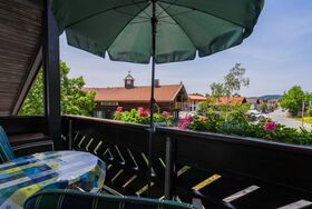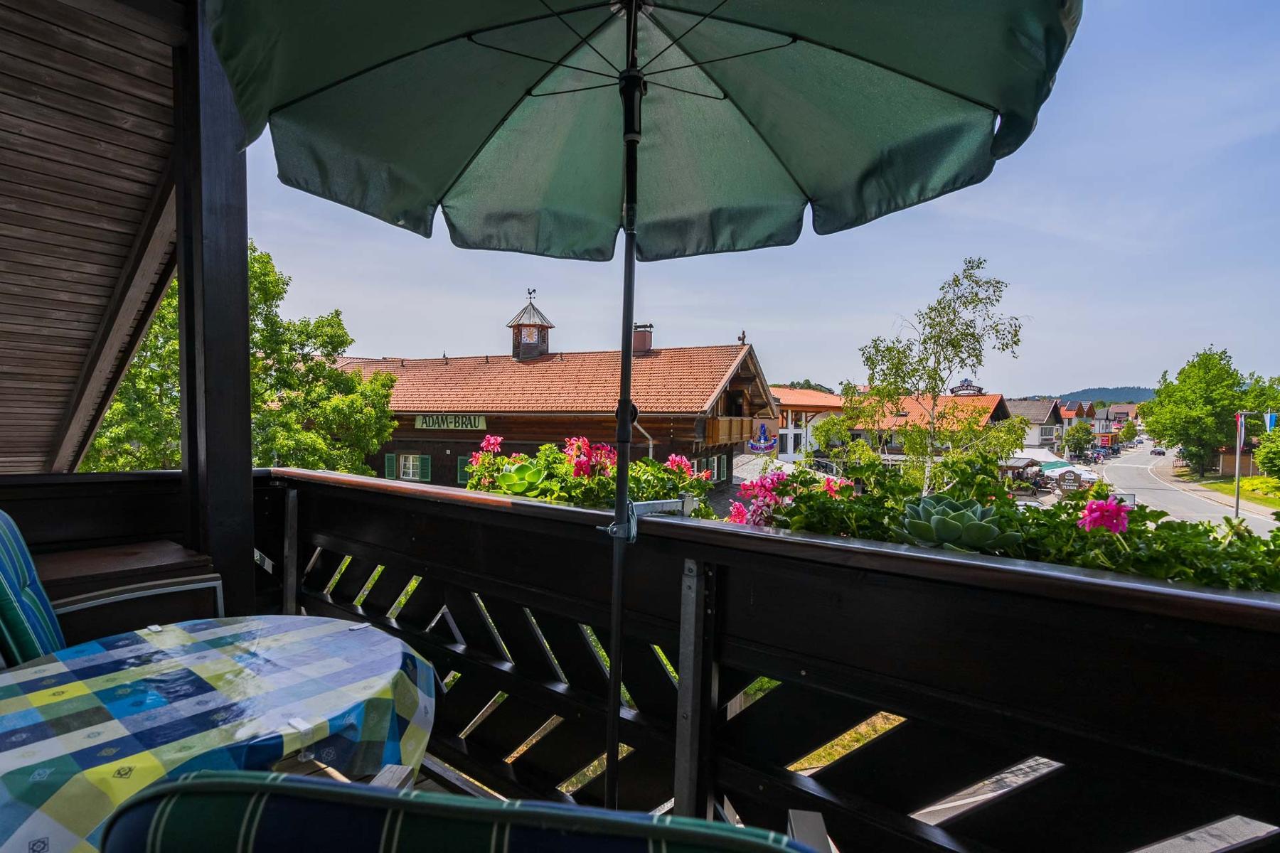 • Lesezimmer mit Leselampe und Balkon mit Blick auf Bodenmais