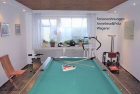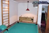 Zur Abwechslung ist im Fitnessraum ein Billardtisch und ein Kicker.