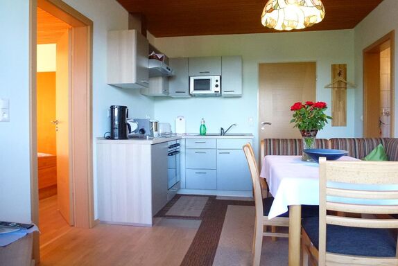 Die Wohnküche ist vollwertig ausgestattet mit SAT-TV, Radio, Lan.-Brücke.