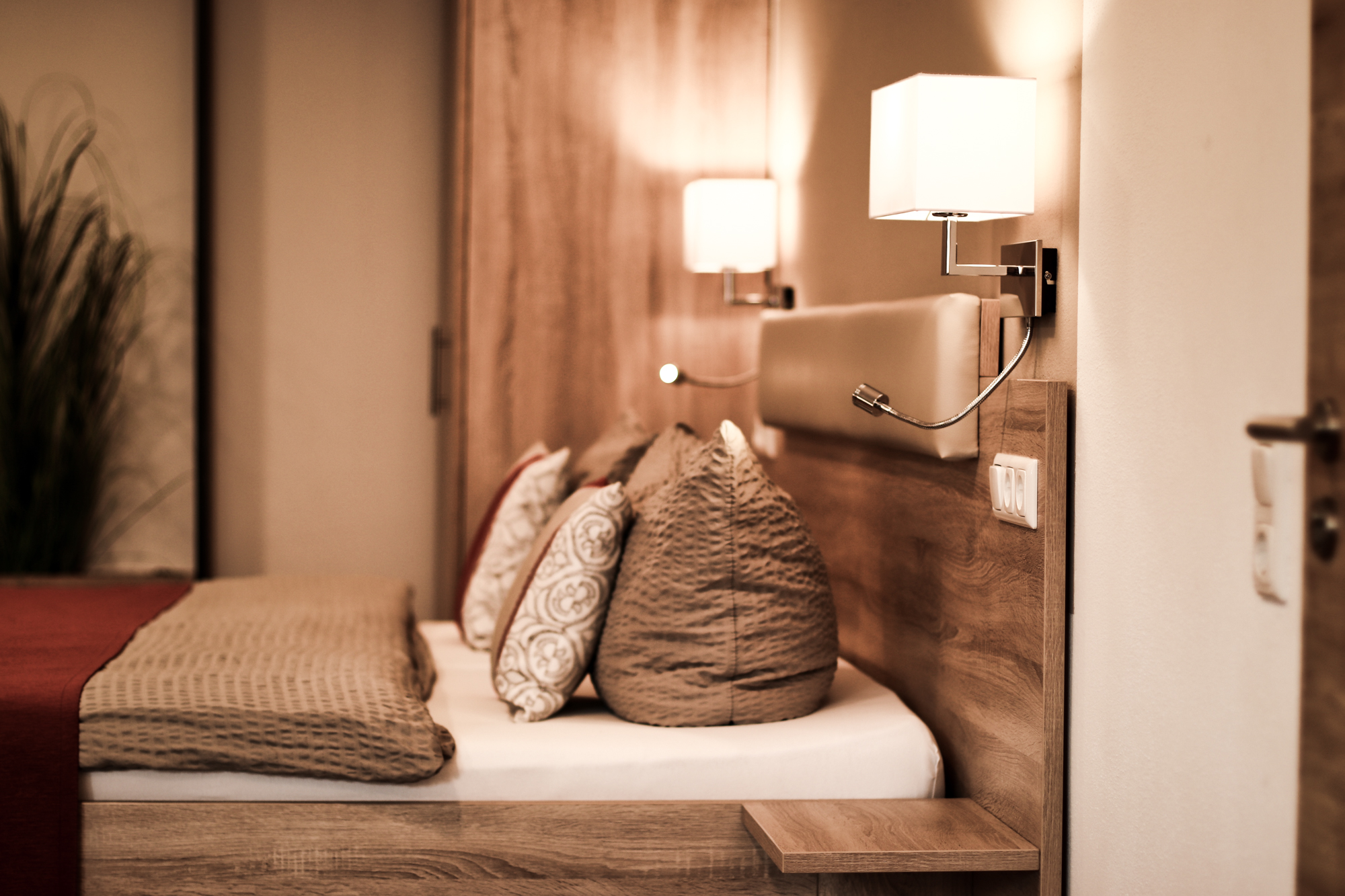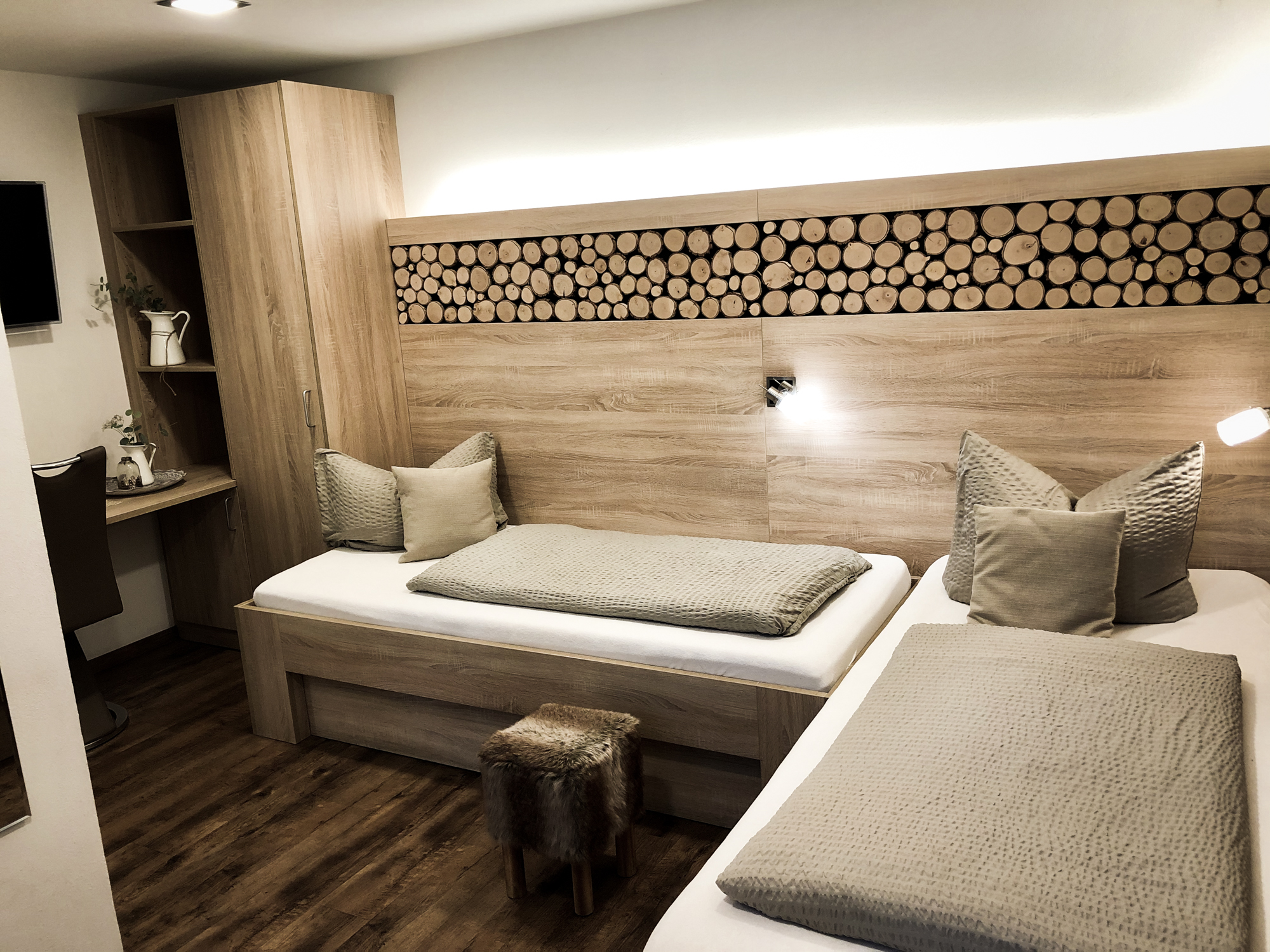 Zweibettzimmer ca. 13 m², bietet Platz für 1- 2 Personen. Das Zimmer hat zwei auseinander stehende Betten, Kühlschrank, einen kleinen Schreibtisch mit Stühlen, sowie ein Flachbild-TV und WLAN. Bettwäsche, Fön sowie Handtücher vorhanden.