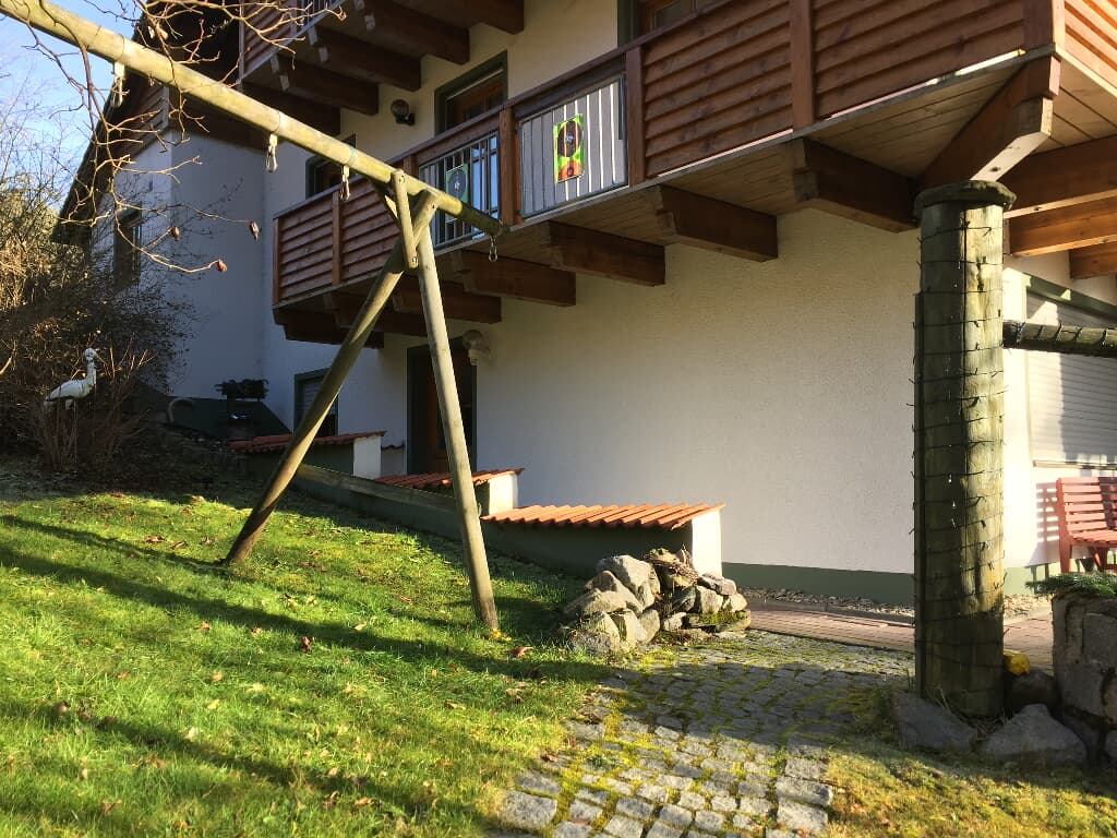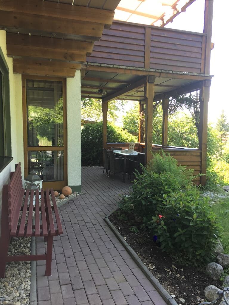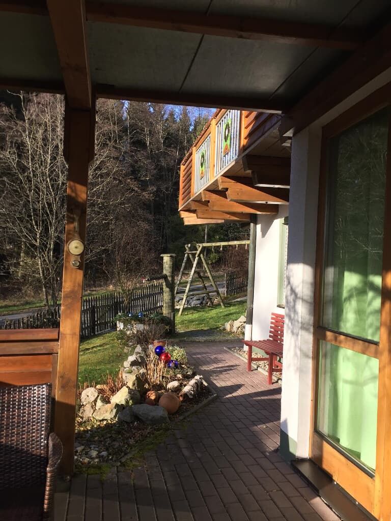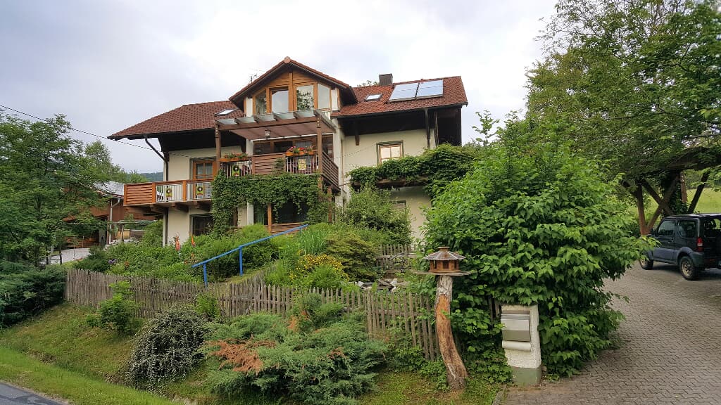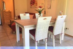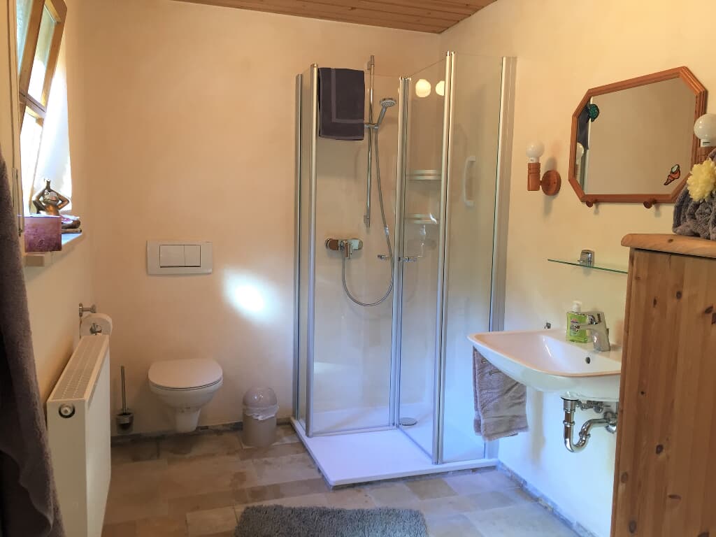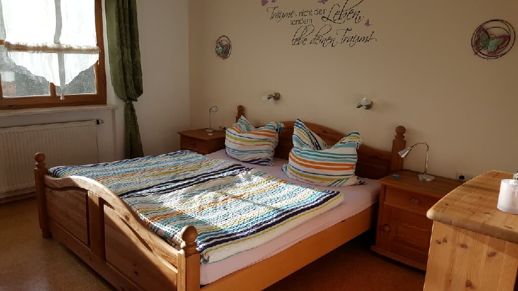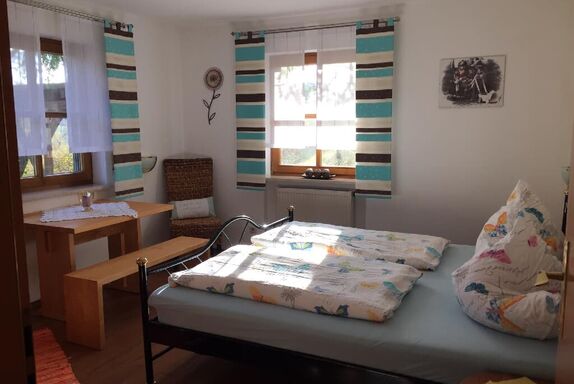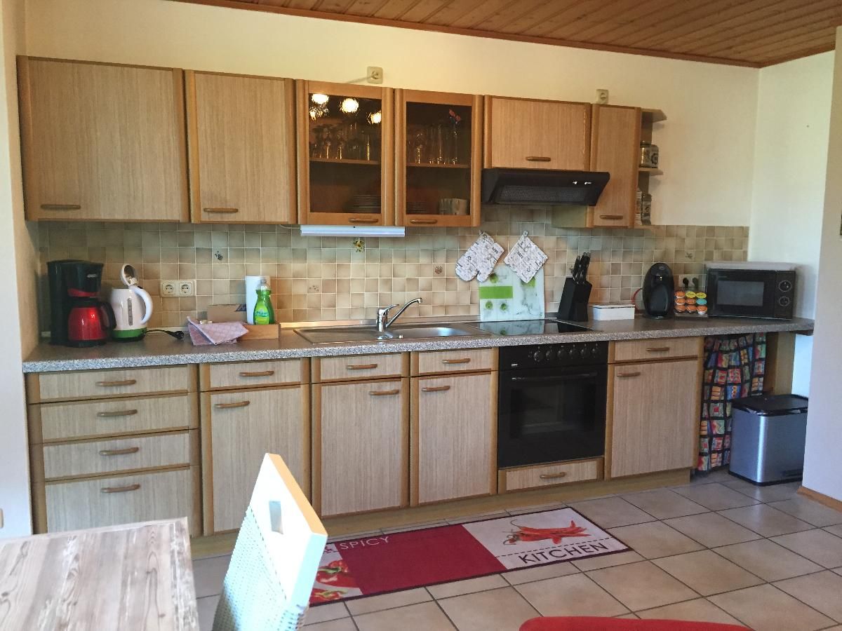 Ihnen steht eine ebenerdige, renovierte 70 qm große Ferienwohnung für bis zu 5 Personen im Erdgeschoß mit eigenem Eingang, sowie eine eigene, möbillierte und überdachte Terrasse mit Grill, Gartenliegen und privatem, kostenlosen Parkplatz zur Verfügung. Die Wohnung verfügt über ein Bad mit Dusche/WC, zwei Schlafzimmern mit je einem Doppelbett (180*200), ein weiteres Zustellbett ist möglich. In dem kombinierten Wohn/Essbereich finden Sie einen FlachTV, DVD Player und Radio. In der vollausgestatteten Küche befindet sich ein Kühlschrank mit 3 Gefrierfächern, Herd mit Backofen, eine Mikrowelle, Kaffeemaschine,Toaster, Eierkocher und Mixer. In der Gästeecke finden Sie Wanderkarten, Gesellschaftsspiele und Infomaterial. Im Preis inkl.: Handtücher und Bettwäsche, Babybett/Hochstuhl, Endreinigung, sowie eine Hygieneerstausstattung für Küche/Bad für die ersten Tage und eine Flasche Wasser. Haustiere gegen einmalige Gebühr in Höhe von 20,00 Euro.