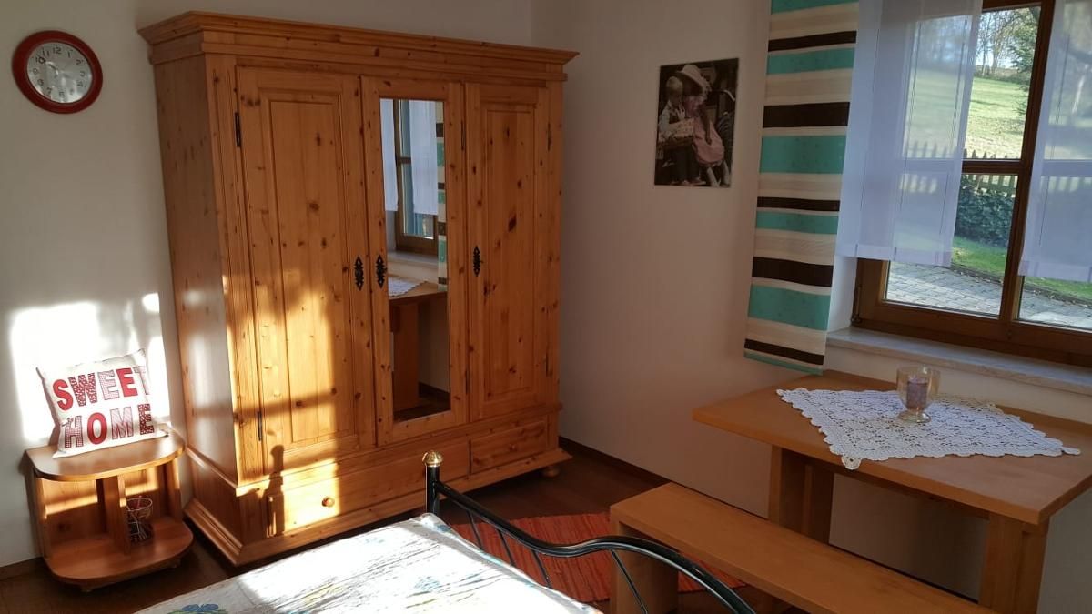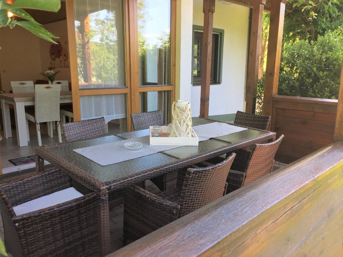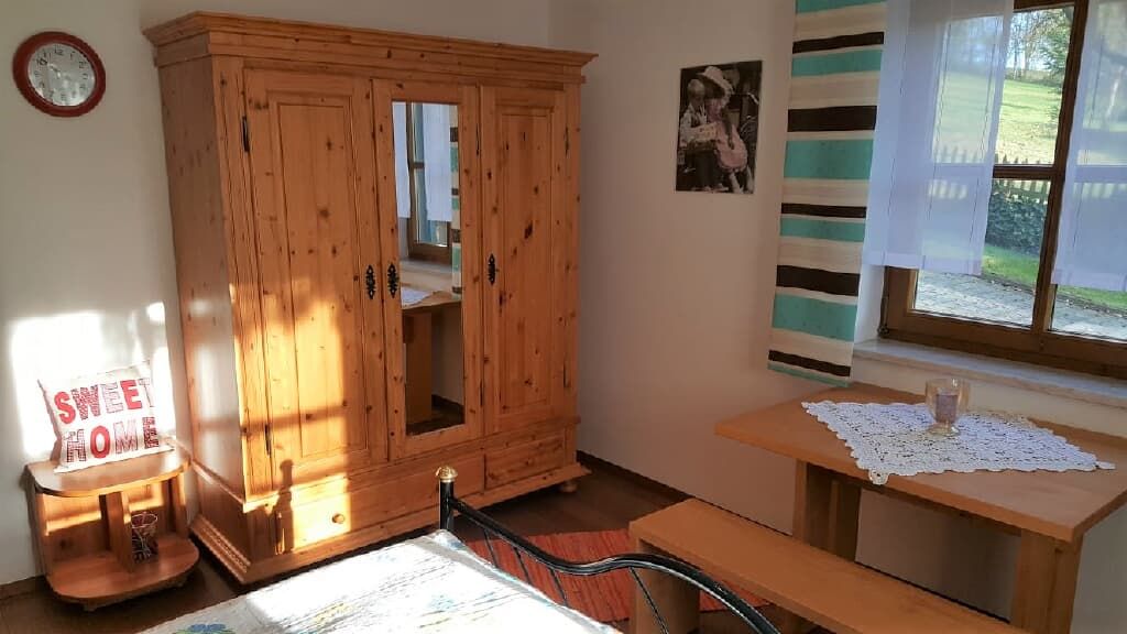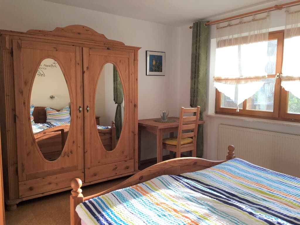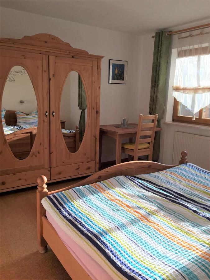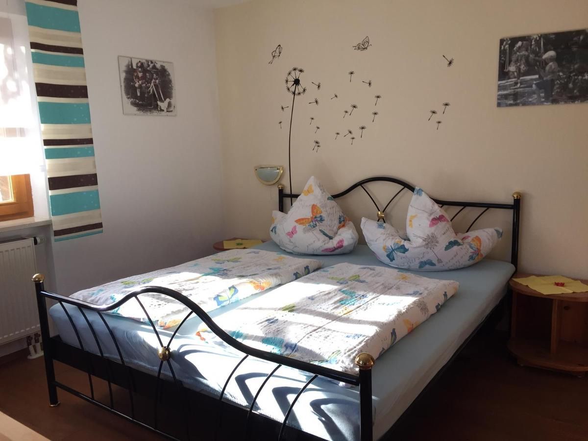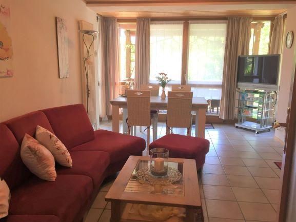 Ihnen steht eine ebenerdige, renovierte 70 qm große Ferienwohnung für bis zu 5 Personen im Erdgeschoß mit eigenem Eingang, sowie eine eigene, möbillierte und überdachte Terrasse mit Grill, Gartenliegen und privatem, kostenlosen Parkplatz zur Verfügung. Die Wohnung verfügt über ein Bad mit Dusche/WC, zwei Schlafzimmern mit je einem Doppelbett (180*200), ein weiteres Zustellbett ist möglich. In dem kombinierten Wohn/Essbereich finden Sie einen FlachTV, DVD Player und Radio. In der vollausgestatteten Küche befindet sich ein Kühlschrank mit 3 Gefrierfächern, Herd mit Backofen, eine Mikrowelle, Kaffeemaschine,Toaster, Eierkocher und Mixer. In der Gästeecke finden Sie Wanderkarten, Gesellschaftsspiele und Infomaterial. Im Preis inkl.: Handtücher und Bettwäsche, Babybett/Hochstuhl, Endreinigung, sowie eine Hygieneerstausstattung für Küche/Bad für die ersten Tage und eine Flasche Wasser. Haustiere gegen einmalige Gebühr in Höhe von 20,00 Euro.