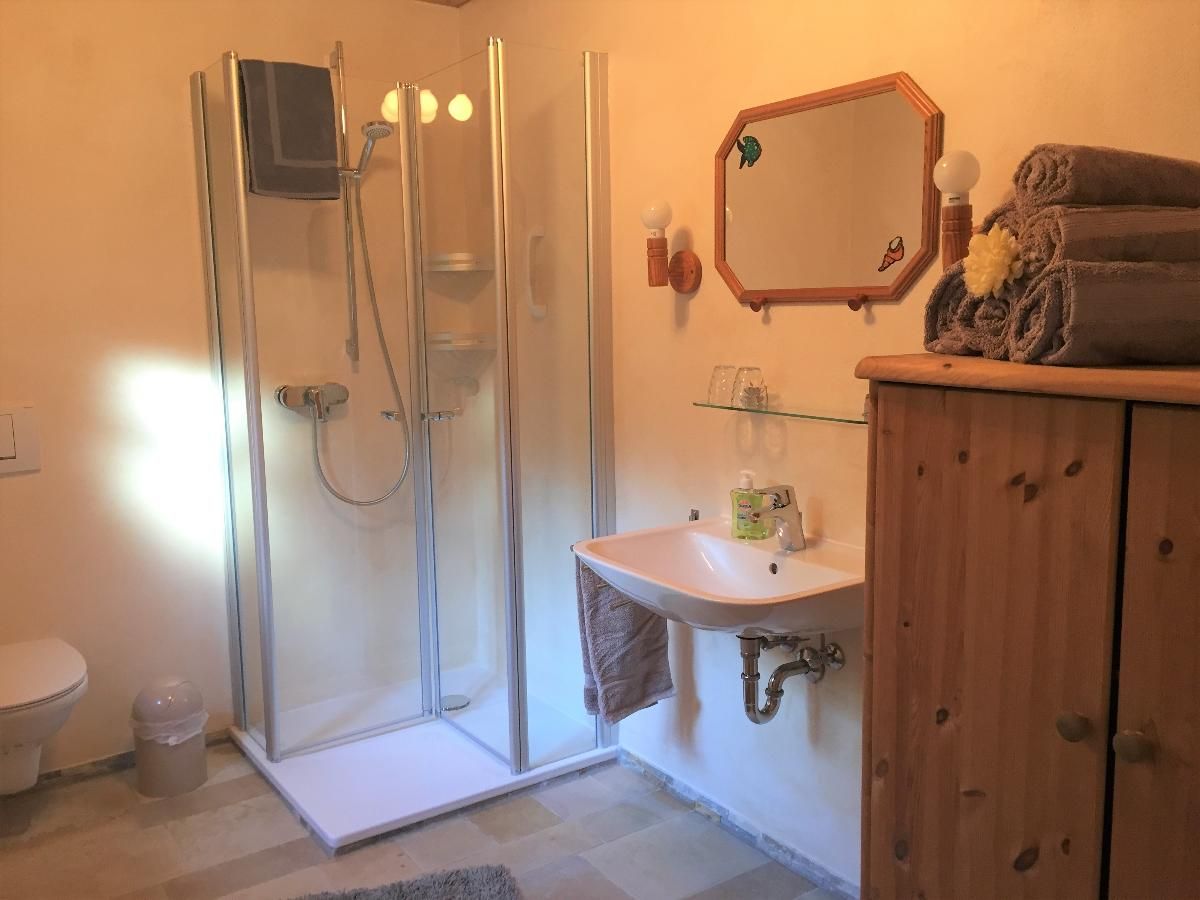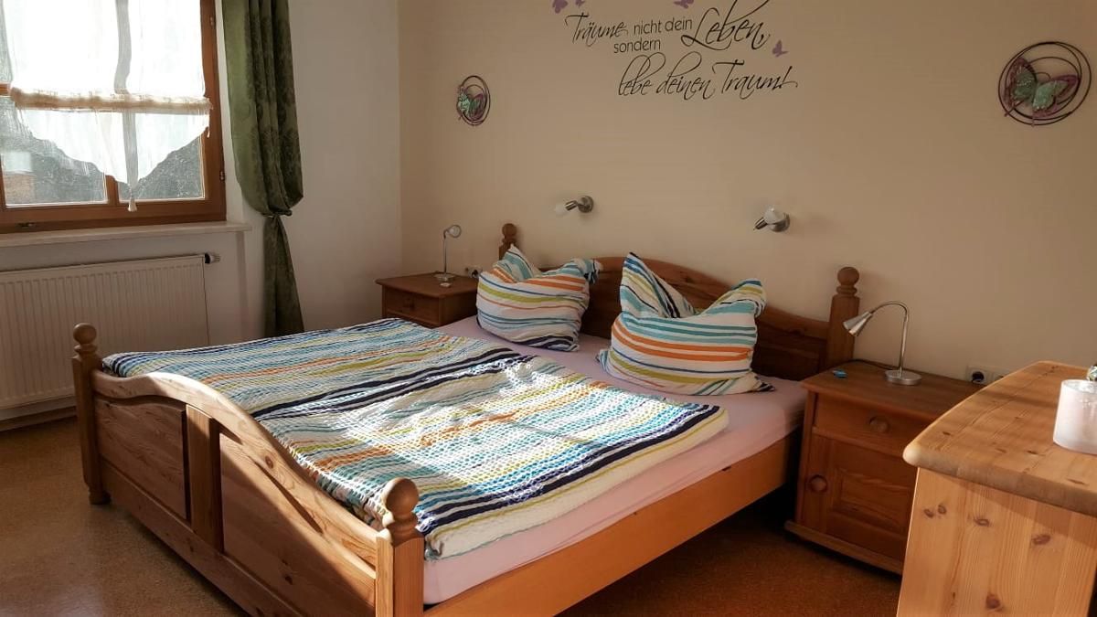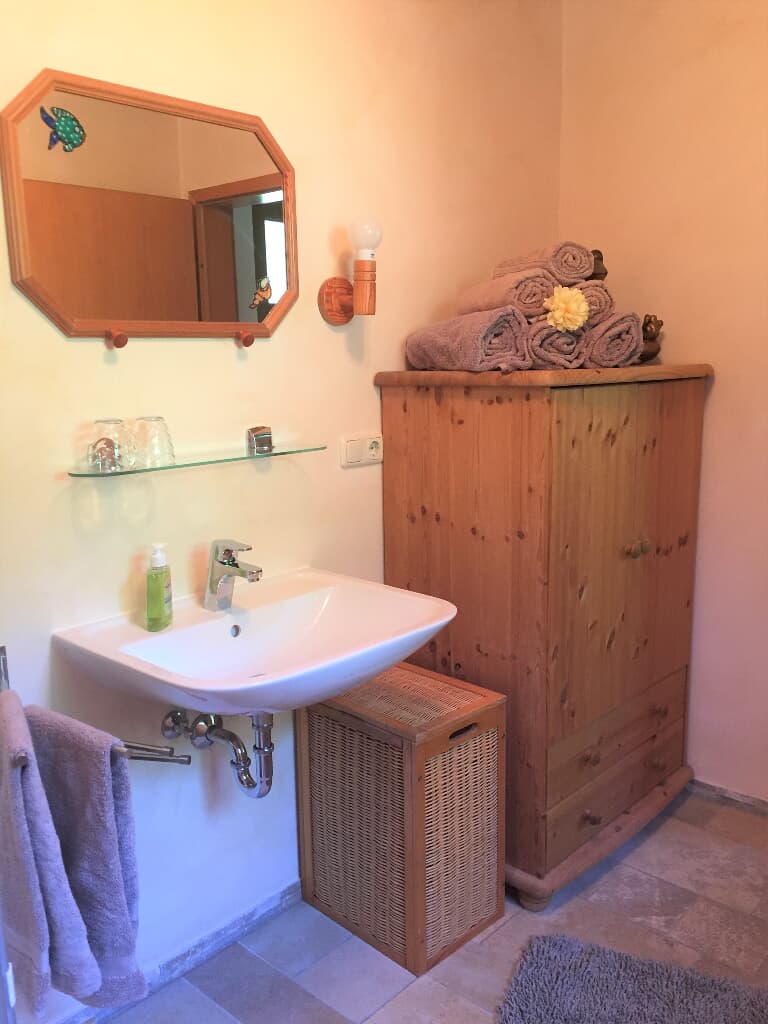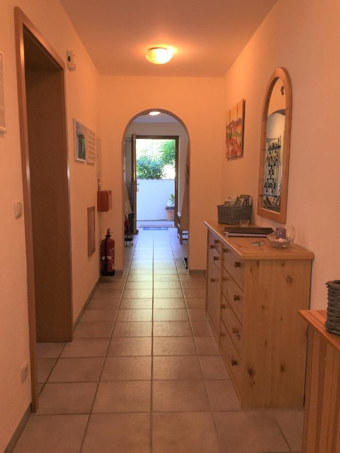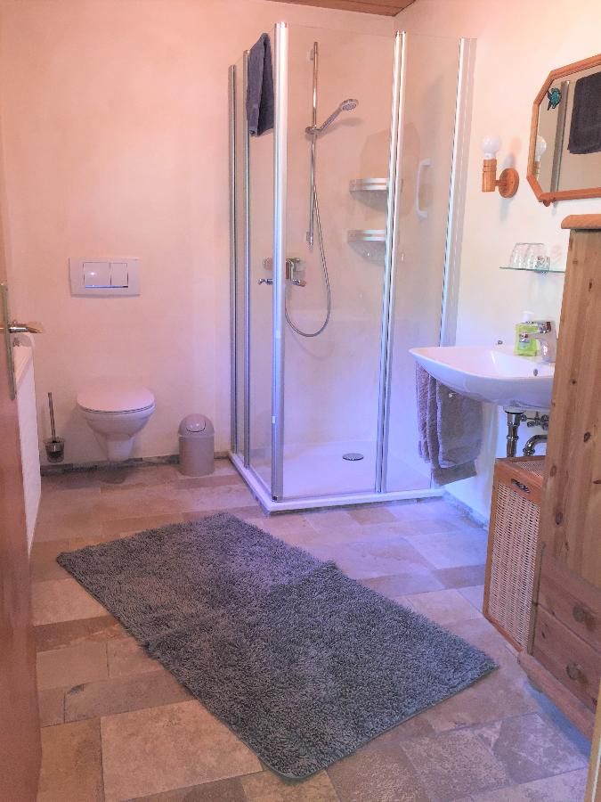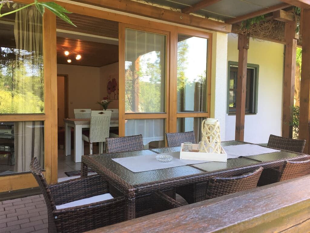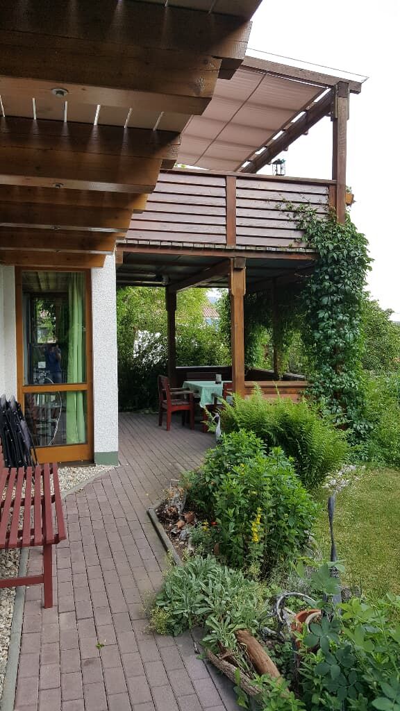 Ihnen steht eine ebenerdige, renovierte 70 qm große Ferienwohnung für bis zu 5 Personen im Erdgeschoß mit eigenem Eingang, sowie eine eigene, möbillierte und überdachte Terrasse mit Grill, Gartenliegen und privatem, kostenlosen Parkplatz zur Verfügung. Die Wohnung verfügt über ein Bad mit Dusche/WC, zwei Schlafzimmern mit je einem Doppelbett (180*200), ein weiteres Zustellbett ist möglich. In dem kombinierten Wohn/Essbereich finden Sie einen FlachTV, DVD Player und Radio. In der vollausgestatteten Küche befindet sich ein Kühlschrank mit 3 Gefrierfächern, Herd mit Backofen, eine Mikrowelle, Kaffeemaschine,Toaster, Eierkocher und Mixer. In der Gästeecke finden Sie Wanderkarten, Gesellschaftsspiele und Infomaterial. Im Preis inkl.: Handtücher und Bettwäsche, Babybett/Hochstuhl, Endreinigung, sowie eine Hygieneerstausstattung für Küche/Bad für die ersten Tage und eine Flasche Wasser. Haustiere gegen einmalige Gebühr in Höhe von 20,00 Euro.