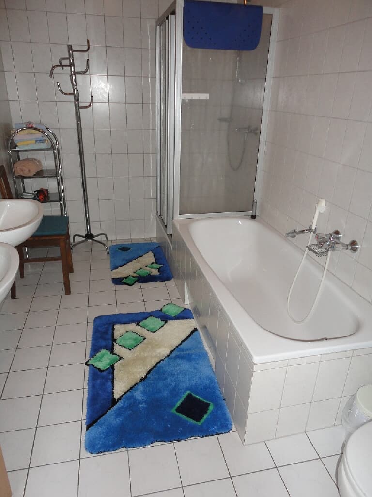 Die Ferienwohnung Nr. 3 hat zwei Schlafzimmer mit je drei Betten (auch Beistellbett möglich), eine Dusche und Badewanne sind vorhanden. Sie befindet sich im ersten Stock und ist voll eingerichtet.