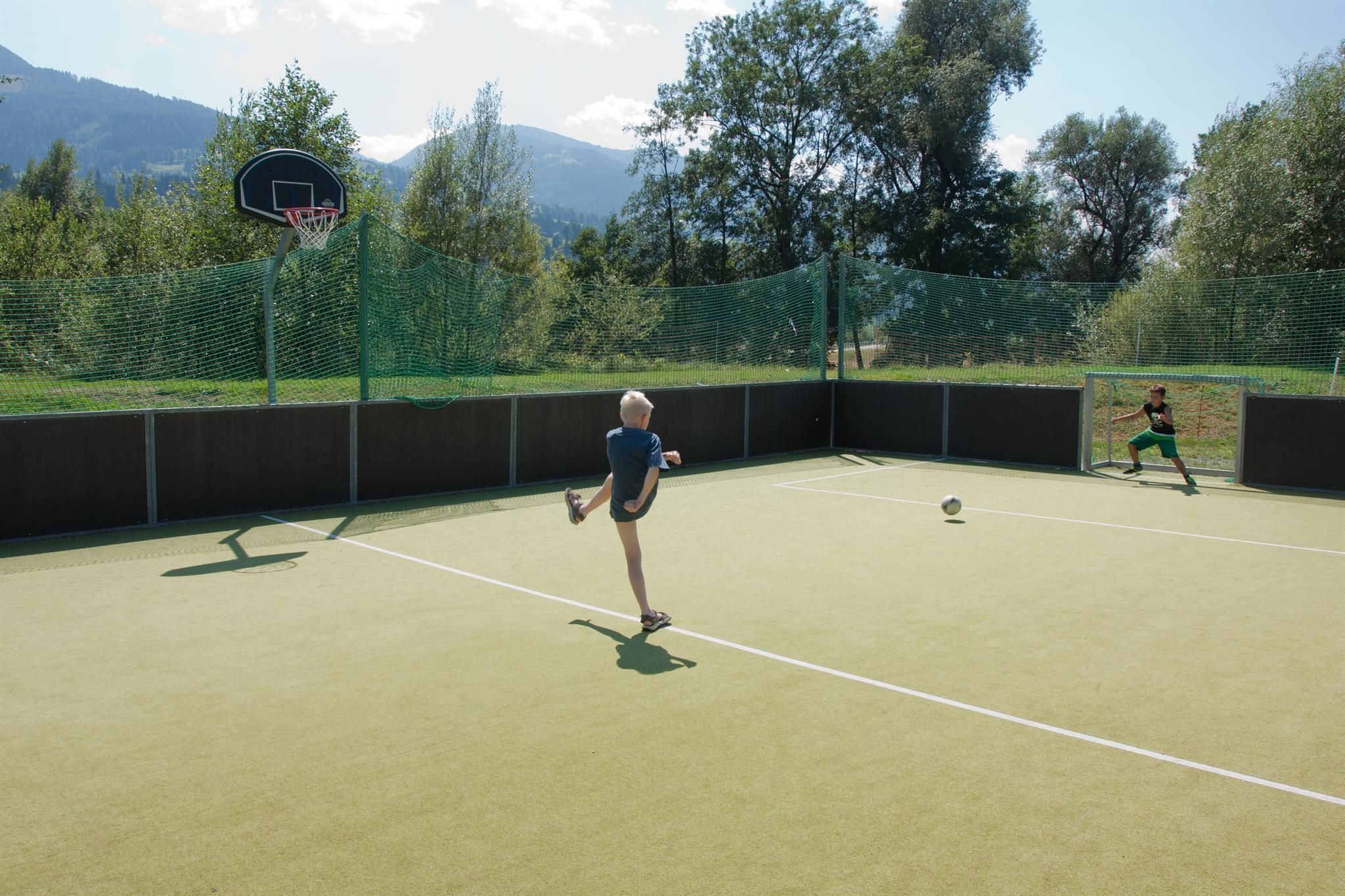 Im Sommer genießen Sie über 22.000m² Areal inkl. Badesee beinhalten viel Angebot für Kids, Teens & Familie - alles direkt beim Hotel, so brauchst Du keine zusätzlichen Meter machen. Große Gartenanlage mit überdachbaren Hotelpool, Tennisplätze, Kindertennisplatz, Tischtennis, Basketball, Fußballplatz mit Banden, Erlebnisspielplatz, am Badesee Wassertrampolin, Beachvolleyball, Reitplatz 32x16m und 2 Huzulen-Pferde,Mini Shetties kostenlos Schnupperreiten; Angelteich u. Forellengewässer; Reiten, 3 Indoor-Spielräume I Wall 3.0, Tischfußball, Billard, Dart; BÄREN SPA - WOHLFÜHLOASE: Raum der Stille, Biosauna, Dampfbad, Finnsauna, Physiotherm, Erlebnisduschen, Sonnenstudio, Barfusswiese, Massagen; WINTER: Skibus direkt vorm Hotel - ohne Auto zur 4-Berge-Skischaukel, SkiPauschalen; SOMMER: Premium Golf Partnerhotel , Wanderpauschalen, TopSommerprogramm für Kinder-Teens u. Familie mit unseren Guides, KINDERERMÄSSIGUNG; Besondere Küche!