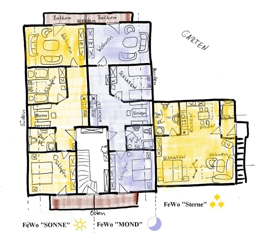 Wir heißen Sie herzlich willkommen, in einer unserer hellen, freundlich eingerichteten Wohlfühlwohnungen in ruhiger Lage. Genießen Sie Ihre Zeit. Im praktischen, voll ausgestatteten Küchenbereich können Sie nach Belieben selbst Ihre Leckerbissen bereiten. Das Wohnzimmer gibt Ihnen Raum für einen gemütlichen Fernsehabend oder lang ersehnte Lesestunden bei leiser Musik. Oder Sie setzen sich mit Ihrer Familie wieder einmal zu einer lustigen Mensch-Ärgere-Dich-nicht-Runde zusammen. Mit einer Spezial-Energie-Massage,oder einer Fußzonenmassage runden Sie Ihren Aufenthalt ab nach unserem Motto: Ankommen, zuhause Sein, Wohlfühlen.