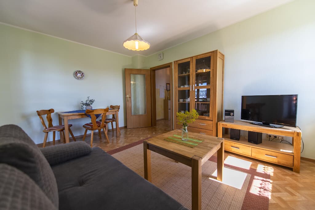 Zentral gelegene Ferienwohnung mit einen Schlafzimmer, gemütlichem Wohnzimmer, Küche, Dusche und WC. Vom Wohnraum aus gelangen Sie auf den Balkon, auf dem sich gemütliche Gartenmöbel befinden. Die Küche ist mit allem ausgestattet, was Sie für einen erholsamen Urlaub brauchen. Bett- und Tischwäsche sind selbstverständlich vorhanden. Parkplätze sind direkt beim Haus. Garage kann gegen eine Gebühr gemietet werden. Ein großzügiger Garten - mit sonniger Liegewiese, bequemen Liegen sowie ein Grill - steht Ihnen kostenlos zur Verfügung.