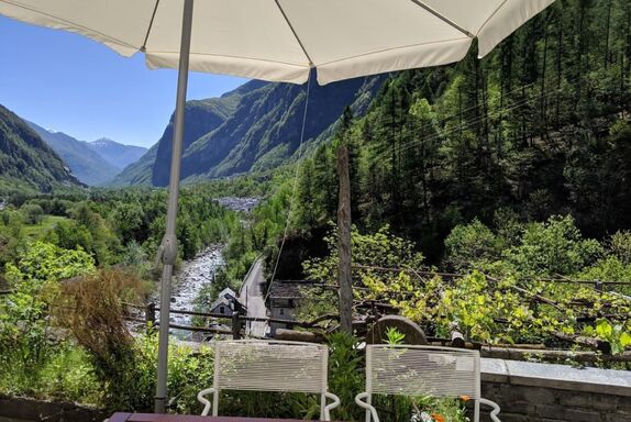 Traumaussicht, Traumgarten, Traumhaus! Lassen Sie im Maggiatal Ihre Seele baumeln oder entdecken Sie das Tal mit Ihrer Familie. Grosses Ferienhaus mit Panoramablick im kleinen Weiler Rovana in unmittelbarer Nähe von Cevio. Das Haus bietet 4 geräumige Schlafzimmer für bis zu 11 Personen (1 Schlafzimmer mit Doppelbett/Kinderbett, 1 Schlafzimmer mit Doppelbett/Einzelbett, 1 Schlafzimmer mit zwei Einzelbetten und 1 Mansardenzimmer mit Massenlager). Neben einer Wohnküche und einem Wohnzimmer mit Kamin bietet ihr Ferienhaus zwei Balkone und eine Terrasse mit Blick über das Tal. Ein zweiter Sitzplatz befindet sich unter einer Reben-Pergola. Gartentische, Liegestühle, Hängematte, Grill und ein grosses Planschbecken machen das Garten-Erlebnis komplett. Das Dorfzentrum mit Einkaufsmöglichkeiten, Restaurants, Post, Apotheke etc. ist in 7 Minuten Fussmarsch erreichbar. Schöne Badeplätze an den Flüssen Rovana und Maggia liegen ebenfalls in kurzer Gehdistanz. Das Maggiatal und seine Seitentäler bieten vielseitige Ausflugsmöglichkeiten und Aktivitäten. Locarno und Ascona sind mit dem Auto in 25 Minuten erreichbar. Neben dem Haus steht Ihnen ein Parkplatz zur Verfügung. Die Anreise mit öffentlichen Verkehrsmitteln bis Mitten in der Nacht ist ebenfalls problemlos möglich. Sonstige Wohnzimmerausstattung (Wohnzimmer1): Grosser Tisch, Platz für 14 Leute zum Essen Sportmöglichkeiten in der Umgebung: Angeln, Bergsteigen, Klettern, Mountainbiking, Radtouren, Ski (alpin) Basisinformationen - Erlaubte Haustiere: 1 - Grundstücksfläche: 420 m² - letzte umfassende Renovierung: 2013 - freistehend - Nichtraucherunterkunft - Schlafzimmeranzahl: 4 - Badezimmeranzahl: 1 Top Merkmale - Klimaanlage: keine - Heizung: teilweise - Balkon - Terrasse - Garten: zur alleinigen Nutzung - Outdoorpool - ㄴ zur alleinigen Nutzung - Private PKW-Stellplätze insgesamt für diese Unterkunft: 1 - ㄴ davon private Außenstellplätze: 1 Schlafen im Wohnbereich - Schlafzimmer abdunkelbar Schlafzimmer 1 - Doppelbett (1,80m Breite) - Einzelbett Schlafzimmer 13 - 3x Einzelbett Schlafzimmer 5 - Doppelbett (1,80m Breite) - Einzelbett Schlafzimmer 9 - 2x Einzelbett Badezimmer Badezimmer 1 - Badewanne mit Duschvorrichtung - Waschbecken - Toilette - Tageslicht Gäste-WC - Toilette Kochen/Wohnen - Kühl-/Gefrierschrank: Gefrierfach, Kühlschrank - Herd: Herd - Dunstabzugshaube - Backofen - Wasserkocher - Spülmaschine - Größe der Küche: 20 m² - Anzahl Esstische: 1 - Gesamtzahl Sitzplätze: 10 - Anzahl Wohnzimmer: 1 Entertainment - DVD-Player - Radio Hauswirtschaft - Staubsauger Außenbereich - Veranda - Outdoormöbel - Grill: Grill Umgebung - Aussicht: Berg, Garten, Wald, Wiese, Tal - nächstgelegene Ortsmitte: 28,0 km - Lebensmittelhandel: 1,0 km - Cafés/Restaurants: 1,0 km - Fahrrad-Verleih: 1 m Besonderheiten - Anglerfreundlich