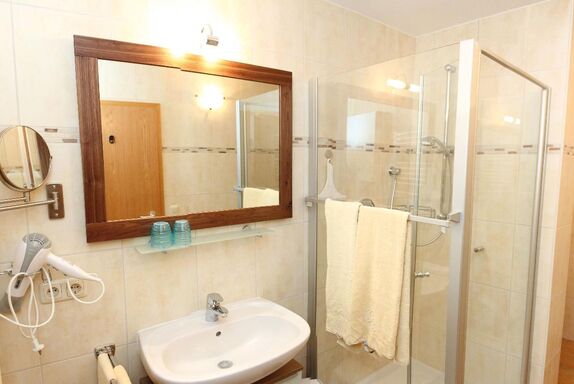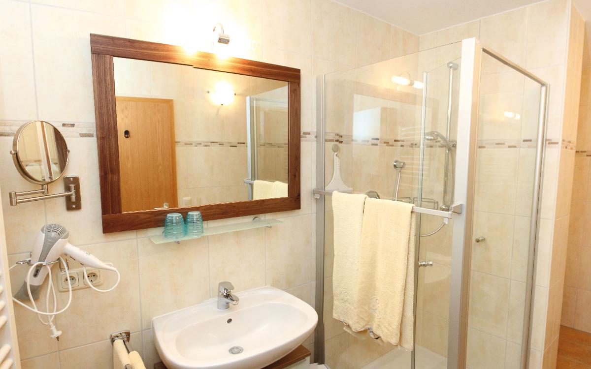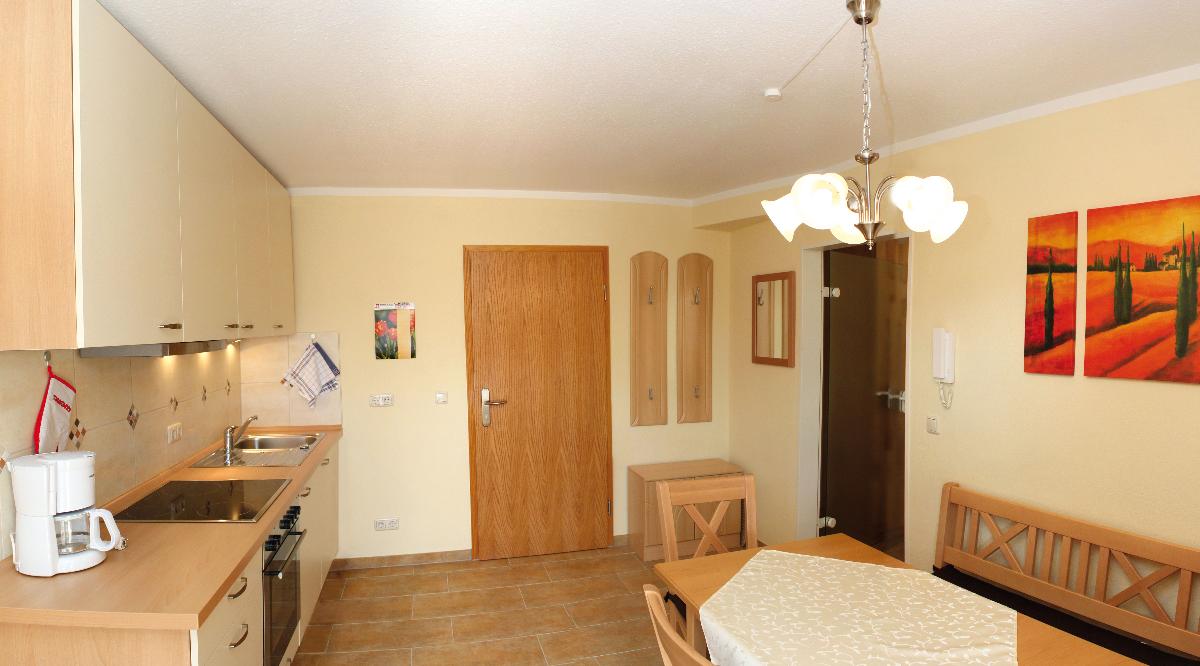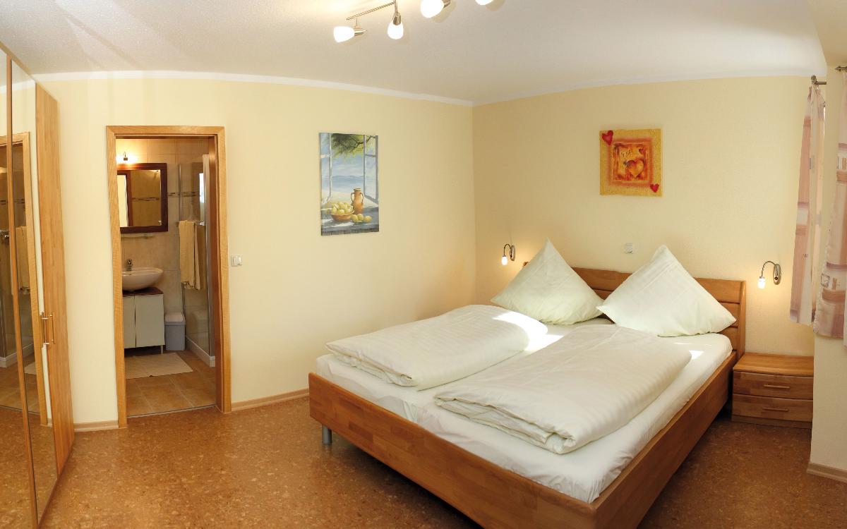 Das schöne, große 2-Zimmer-Appartement Typ E (ca. 59qm) ist für 2 Personen ausgelegt und befindet sich im Erdgeschoss auf der Südseite. Im schönen Schlafzimmer befindet sich ein bequemes Doppelbett. Im geräumigen Wohnzimmer befindet sich ein Esstisch, Radio, SAT-TV, Couch und ein kleiner Couchtisch. Die separate Küche ist mit einem 4-Platten Herd, Backofen, Kühlschrank, Wasserkocher, Kaffeemaschine, Spüle und Geschirr ausgestattet. Das Bad besteht aus Dusche und WC. Auf dem schönen Balkon/ Terrasse können Sie die Sonne und Aussicht genießen.
