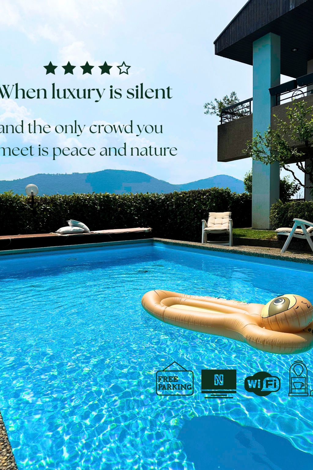 Diese gemütliche Wohnung befindet sich in Collina d'Oro-Agra, im Herzen des Kantons Tessin, und bietet Platz für bis zu 6 Personen, was sie ideal für Familien oder Gruppen von Freunden macht. Besonders hervorzuheben ist die Lage im Erdgeschoss, die einen einfachen Zugang und den Komfort eines privaten Gartens bietet, ideal für Ihre vierbeinigen Freunde. Ja, denn bis zu drei mittelgroße Haustiere sind hier willkommen. Für Entspannung sorgen eine einladende Terrasse, auf der Sie ruhige Momente an der frischen Luft verbringen können, und ein Gemeinschaftspool, in dem Sie sich an heißen Tagen abkühlen können. Für diejenigen, die auch im Urlaub nicht auf die Annehmlichkeiten der Technik verzichten wollen, ist die Wohnung mit Klimaanlagen in allen Zimmern, einer Ladestation für Elektroautos für die Umweltbewussten sowie modernen Geräten wie Waschmaschine und Trockner für den persönlichen Gebrauch ausgestattet. Der vollständig eingezäunte Garten ist ein Paradies für Ihre pelzigen Freunde und bietet Privatsphäre und Sicherheit für die ganze Familie. Ob Sie sich einfach nur entspannen oder die üppige Vegetation und die umliegenden Berge erkunden wollen, dieser private Außenbereich ist perfekt für jede Aktivität. Im Inneren der Wohnung finden Sie alles, was Sie für einen komfortablen Aufenthalt brauchen, einschließlich eines Kamins für kühlere Abende und einer Vielzahl von Küchengeräten, die die Zubereitung von Mahlzeiten erleichtern. Ein Ventilator sorgt für eine angenehme Brise an Sommertagen. Nur 400 Meter entfernt befindet sich ein Lebensmittelgeschäft, in dem Sie alles Notwendige für Ihren Aufenthalt erhalten. Mit all diesen Annehmlichkeiten ist diese Wohnung die ideale Wahl für alle, die dem Alltag entfliehen wollen, ohne auf die kleinen Annehmlichkeiten von zu Hause zu verzichten. Basisinformationen - Erlaubte Haustiere: 3 - erlaubte Hundegröße: mittel (30 bis 60 cm) - Unterkunftstyp: Ferienwohnung - befindet sich in: Residenz - Art d. Gebäudes: Reihenhaus - Etage, auf der sich das Objekt befindet: EG - Gesamtanzahl d. Stockwerke im Gebäude über EG: 2 - Nichtraucherunterkunft - Schlafzimmeranzahl: 2 - Badezimmeranzahl: 2 Top Merkmale - WLAN - Klimaanlage: überall - Heizung: überall - Terrasse - Garten: zur alleinigen Nutzung - hundesicher durch einen Zaun (komplett eingezäunt) - Outdoorpool - Private PKW-Stellplätze insgesamt für diese Unterkunft: 1 - ㄴ davon private Außenstellplätze: 1 - Entfernung öffentliches Parkhaus: 200 m Schlafen im Wohnbereich - Schlafsofa 2 Personen Schlafzimmer 1 - Doppelbett (größer als 1,80 m Breite) - Kinder-/Babybett Schlafzimmer 4 - Doppelbett (größer als 1,80 m Breite) Badezimmer Badezimmer 1 - Badewanne - Waschbecken - Toilette - Föhn Badezimmer 4 - Waschbecken - Toilette - Föhn Kochen/Wohnen - Kaffeemaschine: Kapsel-Kaffeemaschine - Kühl-/Gefrierschrank: Gefrierfach, Tiefkühlschrank, Kühlschrank - Herd: Glaskeramikkochfeld, Elektroherd - Dunstabzugshaube - Backofen - Minibackofen - Toaster - Steamer/Dampfgarer - Wasserkocher - Spülmaschine - Geschirrtücher - Anzahl Esstische: 1 - Gesamtzahl Sitzplätze: 6 - Anzahl Wohnzimmer: 1 - Wohnzimmer abdunkelbar - Kamin Entertainment - Fernseher: Sat.-TV - Gesellschaftsspiele für Erwachsene Für Kinder - Kinderstuhl - Kinderspielzeug - Gesellschaftsspiele für Kinder Hauswirtschaft - Waschmaschine: zur alleinigen Nutzung im Objekt - Wäschetrockner: zur alleinigen Nutzung im Objekt - Bügeleisen - Staubsauger - Ventilator: 1 - Einzelne Öfen / Heizlüfter / Radiatoren - Rauchmelder - Kohlenmonoxid-Melder Nachhaltigkeit - Abfallrecycling - Bioabfall verfügbar - Aufladestation für Elektro-Autos Außenbereich - Veranda - Outdoormöbel - Grill: Grill - Außendusche Umgebung - Aussicht: Berg, Meer/See, Garten, Wald, Wiese - Lebensmittelhandel: 400 m - Cafés/Restaurants: 400 m