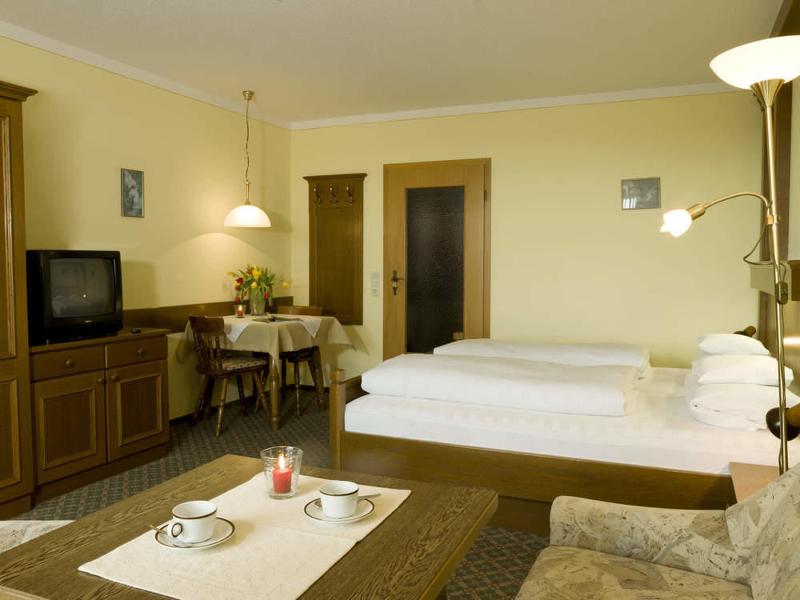 Unsere Gäste wohnen in komfortablen und gemütlichen Ein- oder Zweizimmerappartements (31–51qm) mit Balkon, Dusche/WC, Küche.