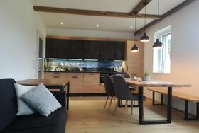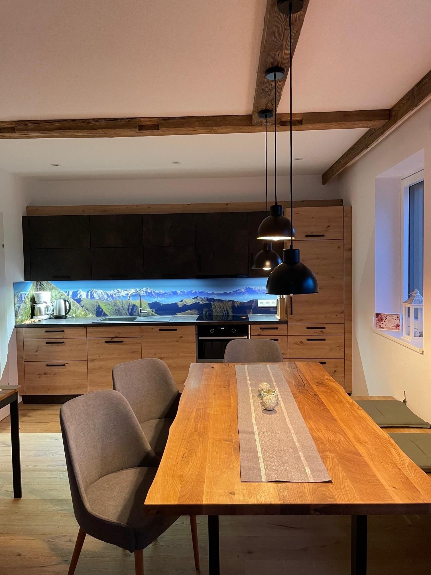 Unsere 2021 erbaute Ferienwohnung ist ca. 75 m² groß und mit viel Liebe und Naturholz ausgestattet.
