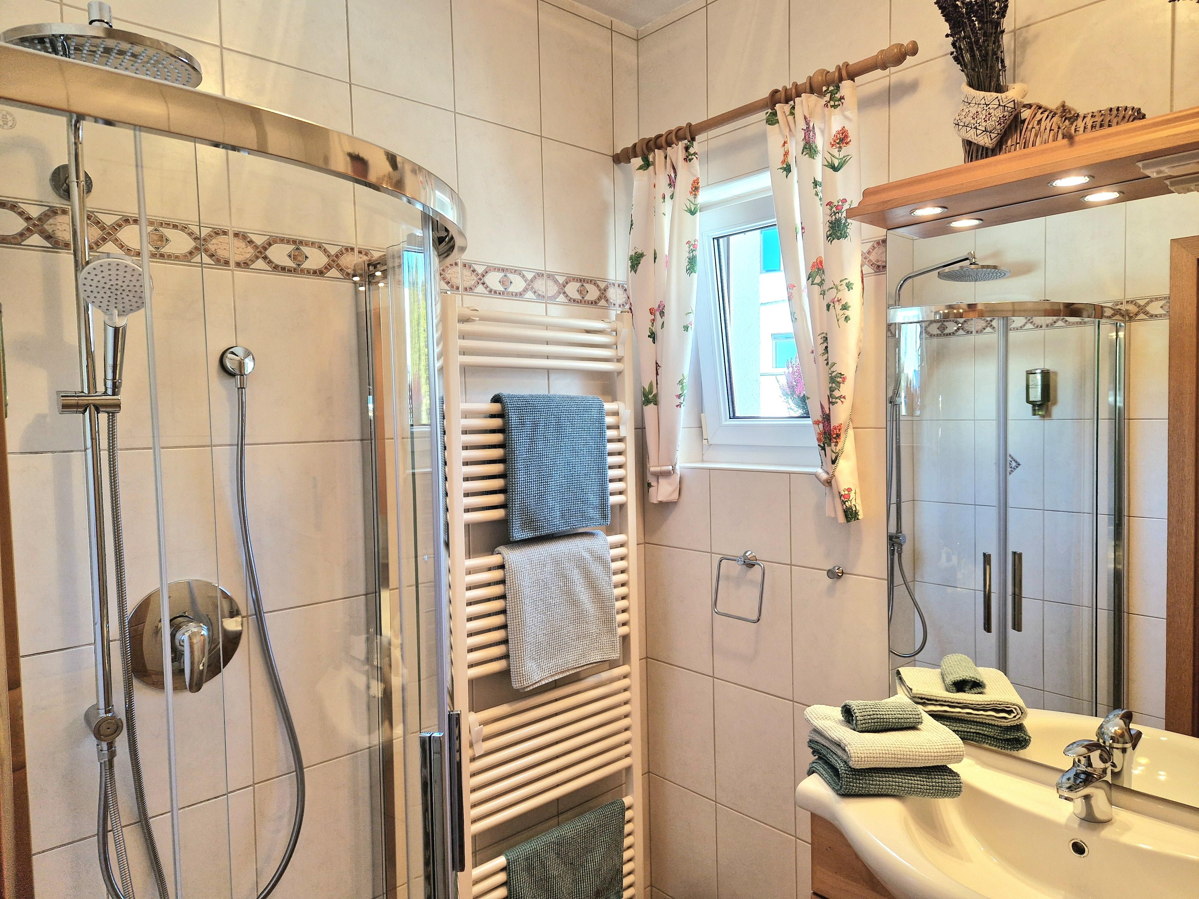 Direkt daneben befindet sich das Bad mit Dusche und WC.