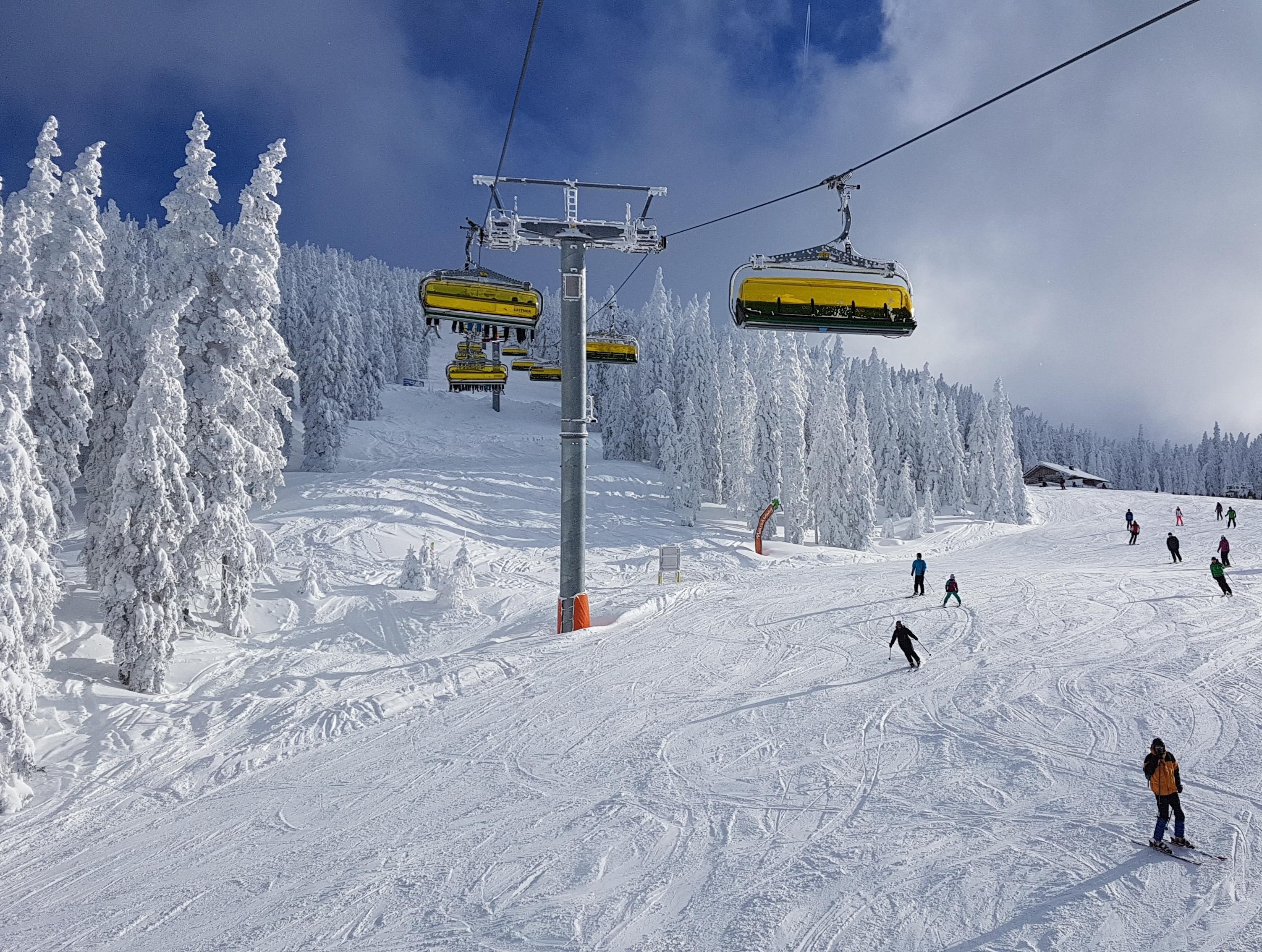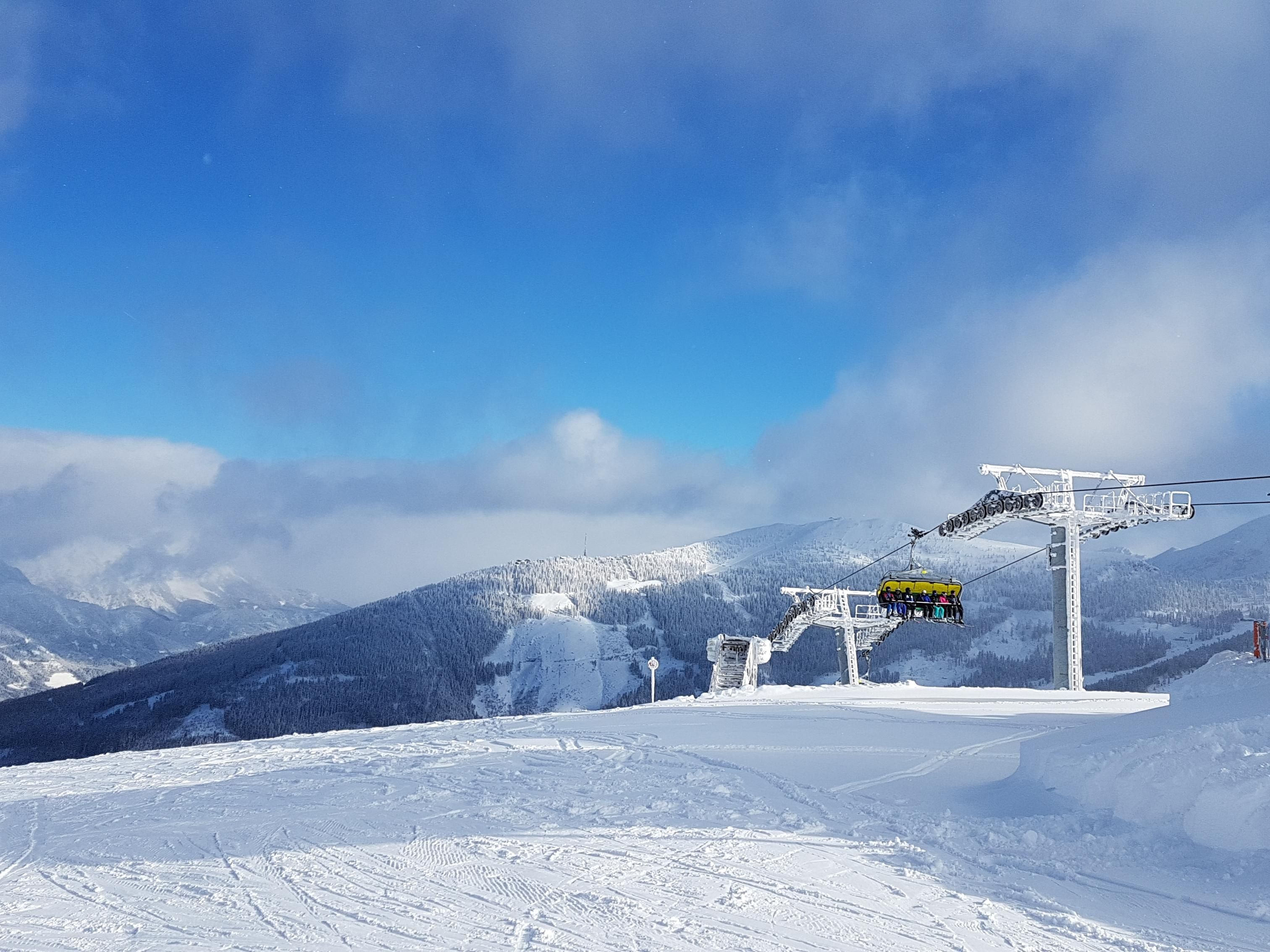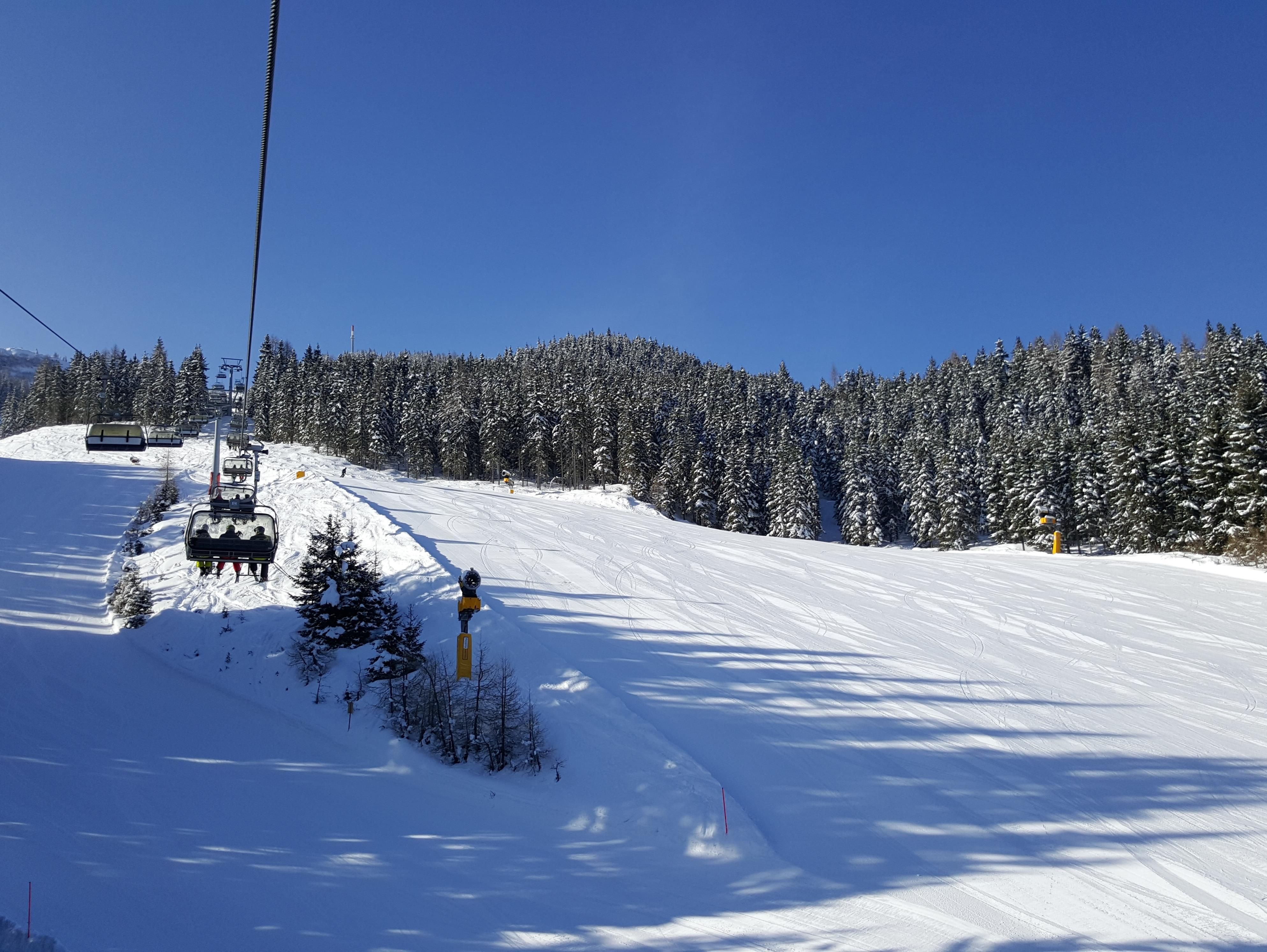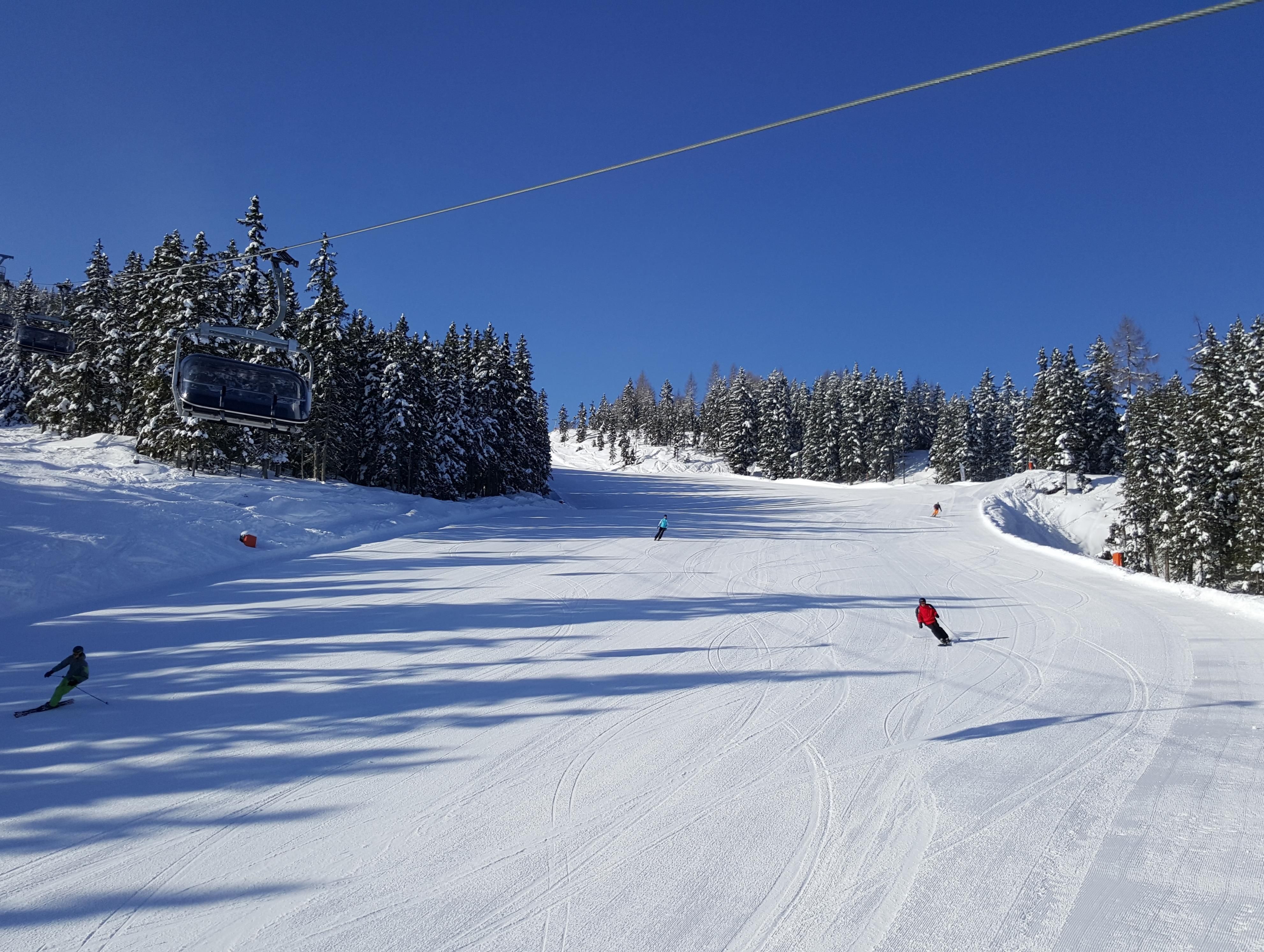 Im Vorraum bietet die Garderobe einen Stellplatz für Ski und Schuhe. Ein kleiner Tisch mit 2 Stühlen lädt zum Essen ein.