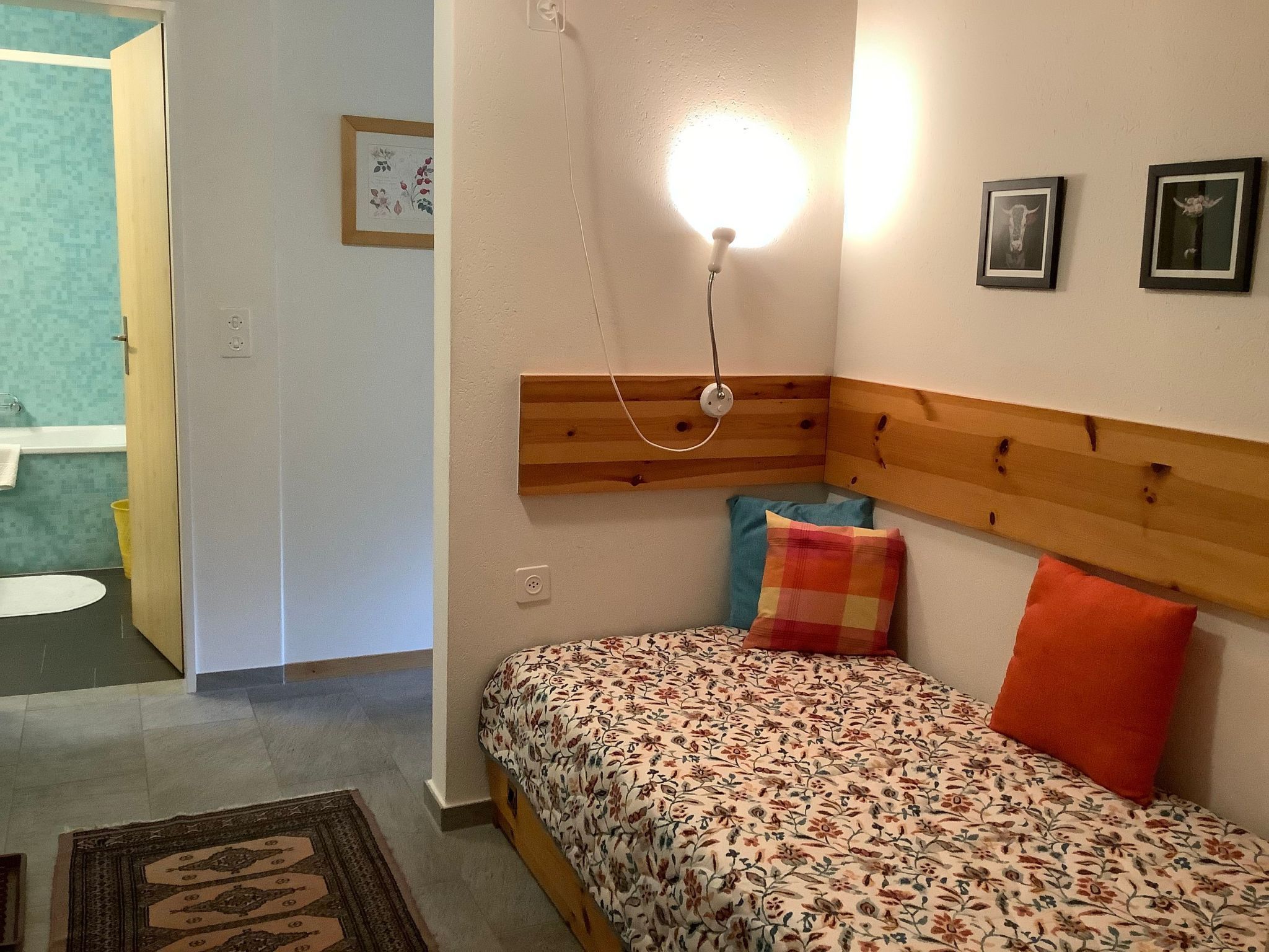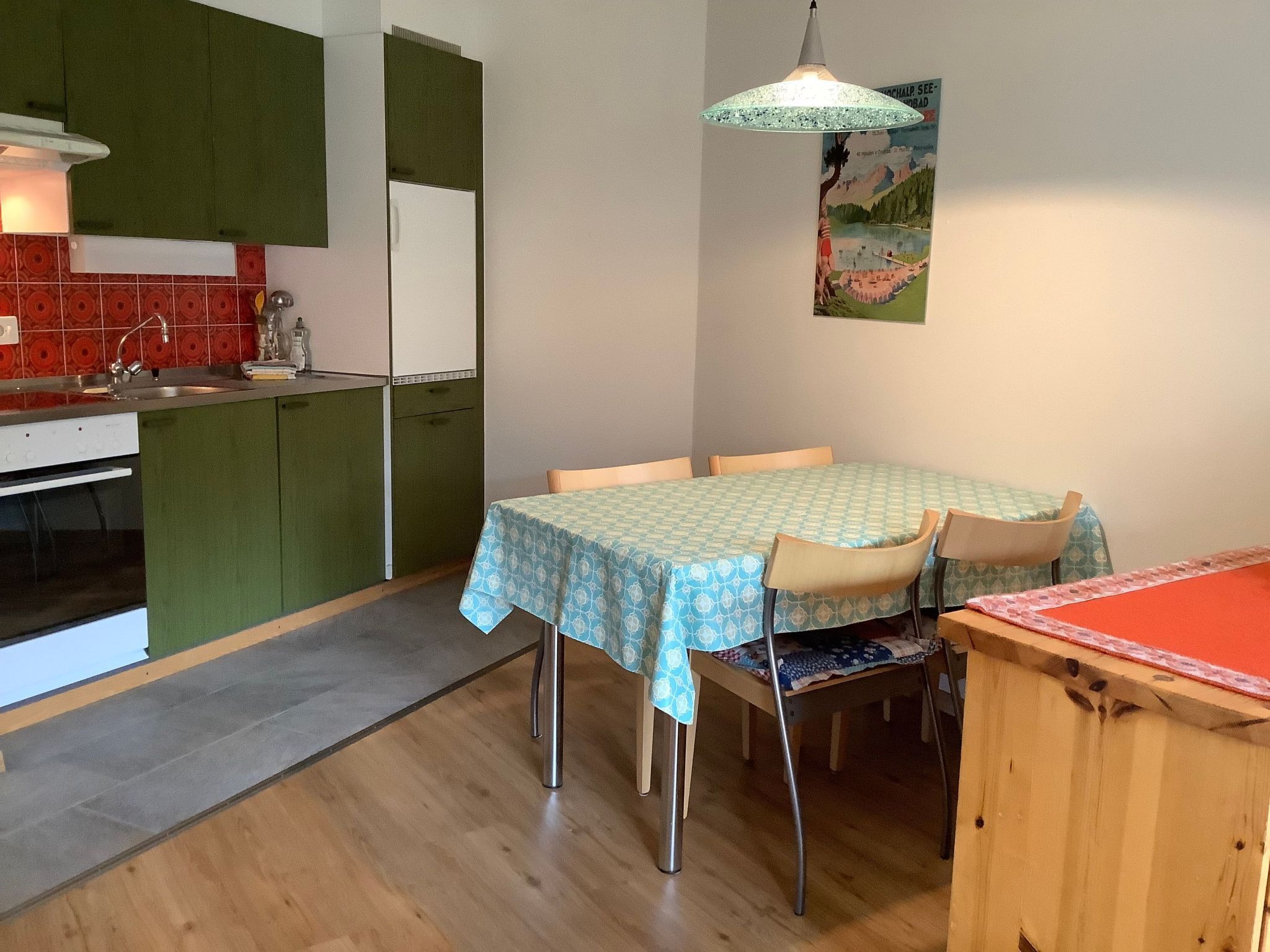 GRATISKARTEN ÖV FÜR BUS UND BAHN SOMMER UND WINTERSAISON. Schöne, grosszügige, mit Arvenholz eingerichtete 1 1/2 Zimmerwohnung (38m2) im Hochparterre, ruhige, verkehrsame Lage. Wohnzimmer mit 2 Schrankbetten SWISSCOM TV, Internet WLAN GRATIS möblierter Balkon mit Sicht in die Berge Richtung Berninapass. Offene Küche mit elektro Herd(Glaskeramik Kochfeld) mit Backofen,Kühlschrank, Kaffeemaschine,Toaster,Wasserkocher,Fonduegarnitur. Badzimmer/Badewanne/WC. Waschmaschine, Skiraum, Veloraum im Haus. Ein Aussenparkplatz steht kostenfrei zur Verfügung. Nähe Busstation, Loipe und Wanderwege. Haustiere nicht erlaubt. Nichtraucherwohnung. Sämtliche Bett/Frotté und Küchenwäsche inbegriffen. Neu verbindet eine Buslinie alle drei grossen Skigebiete ohne Umsteigen, direkt von unserer Bushaltestelle aus. (3 Min. Fussweg) Bikerfreundlich. Ausflugsmöglichkeiten: Diese Berge. Diese Seen. Dieses Licht! Auf 580 Kilometer Wanderwegen über alle Berge oder mit dem Mountainbike auf 400 Kilometern Genuss-Trails: Das Oberengadin bietet ein hochklassiges Netz an Wanderwegen und Mountainbike-Trails inmitten der ursprünglichen Bergwelt und der inspirierenden Oberengadiner Seenplatte. Für den richtigen Flow sorgen die drei Flowtrails auf der Corviglia. Ebenfalls sportbegeistert zeigen sich die Oberengadiner Seen. Kiten, segeln, windsurfen, stand up paddling: die Möglichkeiten sind schier unbegrenzt. Die Weite des inspirierenden Hochtals lässt sich auf den beiden 18-Loch-Golfplätzen in Samedan und Zuoz besonders eindrücklich erleben. Und neben den vielfältigen Sportmöglichkeiten locken hochklassige kulturelle Angebote wie ein Besuch im Museum oder in den zahlreichen Kunstgalerien in den verschiedenen Dörfern. Im Winter laden 350 feinste Pistenkilometer der Skigebiete Corviglia, Corvatsch, Diavolezza und das familienfreundliche Zuoz zu wahrem Ski- und Snowboardvergnügen ein. Langläufer finden über 220 km präparierte Loipen im Oberengadin und in den Seitentälern. Die Winterwanderwege und Langlaufloipen auf den zugefrorenen Oberengadiner Seen glänzen mit Licht, Sonne und Weite inmitten einer inspirierenden Bergwelt. Wer die Stille und Schönheit der verschneiten Wälder geniessen möchte, wandert auf den 150 km Winterwanderwegen in die Seitentäler Val Roseg, Val Fex oder Val Bever, wer lieber den Überblick hat, geniesst atemberaubende Aussichten auf den Panoramawanderwegen hoch über den Seen auf Muottas Muragl. Familien geniessen die Engadiner Sonne bei einer Kutschenfahrt ins Val Roseg oder Val Fex, oder schlitteln auf der 4.2km langen, kurvenreichen Schlittelbahn Muottas Muragl ins Tal hinab. Herzlich willkommen in Engadin St. Moritz. Sonstige Kücheneinrichtung (Küche1): Fonduegeschirr,Wasserkocher,Dampfkochtopf Sportmöglichkeiten in der Umgebung: Angeln, Basketball, Bergsteigen, Bolzplatz, Eislaufen, Golfplatz, Kanu, Klettern, Mountainbiking, Paragliding, Radtouren, Rafting, Reitboxen (Gäste), Reithalle, Reitplatz / Reitmöglichkeiten, Rodeln, Rudern, Ski (alpin), Ski (Langlauf), Sportcenter, Squash, Surfen, Tauchen, Tennis, Segeln Ortsbeschreibung: Pontresina – Der feine Genuss der Hochalpen Alte Engadiner Häuser und stilvolle Hotelbauten aus der Belle Epoque prägen den sonnigen, windgeschützten Höhenkurort. Eingebettet in eine atemberaubende Kulisse majestätischer Bergspitzen, allen voran dem Piz Bernina als höchsten Gipfel der Ostalpen, ist Pontresina Sommer wie Winter Ausgangspunkt für Alpinisten, Wanderer und Kletterer. Aber auch Kulturliebhaber, Romantiker und Geniesser finden in und um Pontresina wahre Perlen, zum Beispiel eine Pferdekutschenfahrt ins kontrastreiche Val Roseg oder mit dem Bernina Express dem Süden zu. Im Winter verwöhnen unzählige inspirierende Langlaufrouten sowie malerische Winterwanderwege durch die bezaubernde Landschaft die Sinne. Das besonders bei Freeridern beliebte Skigebiet Diavolezza ist nur einen Katzensprung entfernt. Entdeckungsfreudige begeistert im Sommer die grösste Steinwildkolonie der Schweiz und der neue Erlebnisraum „Bernina-Glaciers“ macht die Faszination Gletscher im Berninagebiet hautnah erlebbar. Basisinformationen - Erlaubte Haustiere: keins - befindet sich in: Wohnsiedlung - Art d. Gebäudes: Mehrparteienhaus - Etage, auf der sich das Objekt befindet: EG - Gesamtanzahl d. Stockwerke im Gebäude über EG: 2 - Baujahr: 1974 - letzte umfassende Renovierung: 2011 - freistehend - keine Einsicht von der Straße - keine Gruppenbuchung - keine Jugendgruppen - Nichtraucherunterkunft - Schlafzimmeranzahl: Studio (kein separates Schlafzimmer) - Badezimmeranzahl: 1 Top Merkmale - WLAN - Klimaanlage: keine - Heizung: überall - Balkon - Garten: zur gemeinschaftlichen Nutzung - Private PKW-Stellplätze insgesamt für diese Unterkunft: 1 - ㄴ davon private Außenstellplätze: 1 Schlafen im Wohnbereich - 3x Einzelbett - Schlafzimmer abdunkelbar Badezimmer Badezimmer 1 - Badewanne mit Duschvorrichtung - Waschbecken - Toilette - Föhn Kochen/Wohnen - Kaffeemaschine: Filter-Kaffeemaschine, Kapsel-Kaffeemaschine - Kühl-/Gefrierschrank: Gefrierfach, Kühlschrank - Herd: Glaskeramikkochfeld, Elektroherd, Herd - Dunstabzugshaube - Backofen - Toaster - Wasserkocher - Geschirrtücher - Größe der Küche: 3 m² - Anzahl Esstische: 1 - Gesamtzahl Sitzplätze: 4 - Anzahl Wohnzimmer: 1 - Wohnzimmer abdunkelbar Entertainment - Fernseher: TV, Kabel-TV - Radio Hauswirtschaft - Waschmaschine: zur gemeinschaftlichen Nutzung im Gebäude - Wäschetrockner: zur gemeinschaftlichen Nutzung im Gebäude - Staubsauger Nachhaltigkeit - Abfallrecycling - Bioabfall verfügbar - Hausisolierung Außenbereich - Grillen nicht zulässig Umgebung - Aussicht: Berg, Garten, Wald, Wiese, Tal - direkt am Waldrand - nächstgelegene Ortsmitte: 1,0 km - Lebensmittelhandel: 2,0 km - Cafés/Restaurants: 500 m - Bahnhof: 1,0 km - Flughafen: 4,0 km - Autobahn: 80,0 km - nächste Haltestelle ÖPNV: 50 m - Wasser (Meer, See etc.): 3,0 km - See: 3,0 km - Fluss: 200 m - Spielp