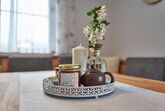 Unsere neugestaltete Ferienwohnung mit 78m2 Wohnfläche im 2. Obergeschoss bietet Platz für 1-4 Personen. Das gemütliche Wohnzimmer mit Couch, Tisch, SAT-TV und Fernsehsessel lädt zum Verweilen ein. Die komplett ausgestattete Einbauküche mit Backofen, Herd, Kaffeemaschine, Kühlschrank und Spülmaschine lässt keine Wünsche offen. Die Ferienwohnung verfügt über 2 Schlafzimmer mit einem Doppelbett und zwei Einzelbetten. Das helle Badezimmer mit geräumiger Dusche rundet das Gesamtbild ab. Auf dem Balkon können Sie entspannte Tage genießen. Das WLAN und den Parkplatz vor dem Haus können Sie kostenfrei nutzen.