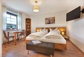 Unsere neugestaltete Ferienwohnung mit 24m2 Wohnfläche im Erdgeschoss bietet Platz für 1-2 Personen. Das gemütliche Wohn- und Schlafzimmer mit zwei Einzelbetten und SAT-TV lädt zum Verweilen ein. Die komplett ausgestattete Einbauküche mit Backofen, Herd, Kaffeemaschine, Kühlschrank und Esstisch mit Stühlen lässt keine Wünsche offen. Das helle Badezimmer mit geräumiger Dusche rundet das Gesamtbild ab. Auf der Terrasse können Sie entspannte Tage genießen. Das WLAN und den Parkplatz vor dem Haus können Sie kostenfrei nutzen.