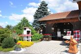 Gästeküche mit Kühlschrank, Kaffemaschiene und Geschirrr für den kleinen Imbiss.Hauseigener Parkplatz, Grillhütte,
