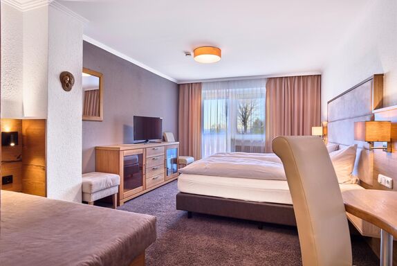 komfortables Doppelzimmer mit Schlafcouch, Balkon, Dusche/WC, TV, Radio,