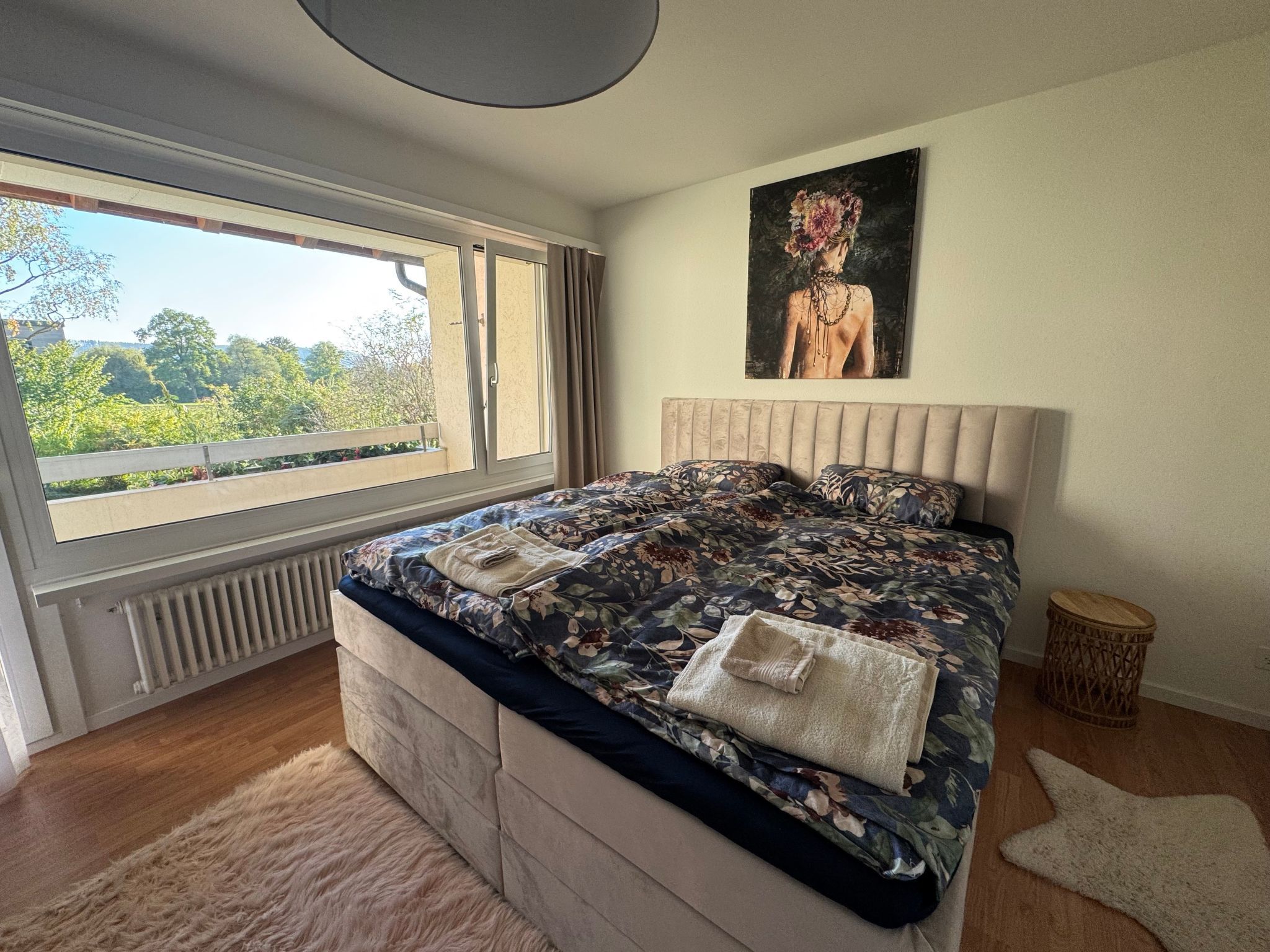 Gönnen Sie sich und Ihrer Familie einen unvergesslichen Aufenthalt in unserem charmanten Ferienhaus im schönen Wettswil am Albis ZH, ideal gelegen im herrlichen Kanton Zürich und 10 min von der Stadt Zürich entfernt. Dieses behagliche Heim bietet Platz für bis zu 6 Personen und ist der perfekte Rückzugsort für Familien oder kleine Gruppen, die eine schöne Auszeit in der Natur oder Sihtseeing im nahen Zürich oder Zug/Luzern suchen, ohne auf Komfort verzichten zu müssen. Im Winter erreichen Sie diverse Skiresorts in nur knapp 1 Std Autofahrt, im Sommer für wandern. Im Inneren des Ferienhauses finden Sie alle Annehmlichkeiten, die Sie für einen sorgenfreien Aufenthalt benötigen. Zur Bequemlichkeit sind eine Waschmaschine und ein Wäschetrockner zur alleinigen Nutzung vorhanden. Der Außenbereich des Ferienhauses verspricht reine Entspannung. Tauchen Sie ein im Planschbecken zur alleinigen Nutzung oder genießen Sie sonnige Tage und laue Abende auf der Terrasse oder auf dem sonnigen Sitzplatz. Der Garten, der ebenfalls ausschließlich Ihnen zur Verfügung steht, bietet genügend Raum für Erholung im Freien oder zum Spielen für Ihren vierbeinigen Freund, denn ein Haustier ist hier herzlich willkommen. Erkunden Sie die atemberaubende Umgebung Ihres Ferienhauses zu Fuss. Die nächstgelegene Ortsmitte erreichen Sie bequem in nur 200m Entfernung, und für Ihren täglichen Bedarf finden Sie einen Lebensmittelhandel in nur 300m Entfernung. Die Gegend um Wettswil ZH am Albis ist bekannt für ihre beeindruckenden Berglandschaften, die zu outdoor Aktivitäten wie Wandern, Radfahren oder einfach zum Genießen der Natur einladen oder in das nahgelegene Stadtleben von Zürich einzutauchen. Dieses Ferienhaus in Wettswil ZH steht für erholsame Tage in idyllischer Umgebung und bietet sowohl die Nähe zu Zürich oder zur Natur als auch die Unabhängigkeit eines eigenen Heims. Egal, ob Sie Entspannung im eigenen Garten suchen, Freizeitaktivitäten in der beeindruckenden Bergwelt unternehmen möchten oder einfach die Seele in Ihrem privaten Planschbecken baumeln lassen wollen – hier finden Sie alles, was das Herz begehrt. Lassen Sie den Alltagsstress hinter sich und erleben Sie unvergessliche Momente in unserem Ferienhaus, das keine Wünsche offen lässt. Basisinformationen - Erlaubte Haustiere: 3 - erlaubte Hundegröße: klein (bis 30 cm) - Unterkunftstyp: Ferienhaus - befindet sich in: Wohnsiedlung - Art d. Gebäudes: Reihenhaus - Gesamtanzahl d. Stockwerke im Gebäude über EG: 2 - letzte umfassende Renovierung: 2024 - keine Einsicht von der Straße - keine Jugendgruppen - Nichtraucherunterkunft - Schlafzimmeranzahl: 4 - Badezimmeranzahl: 1 Top Merkmale - WLAN - Klimaanlage: keine - Heizung: überall - Fußbodenheizung: teilweise - Balkon - Terrasse - Garten: zur alleinigen Nutzung - Outdoorpool - ㄴ zur alleinigen Nutzung - Private PKW-Stellplätze insgesamt für diese Unterkunft: 3 - ㄴ davon Garagenstellplätze: 1 - ㄴ davon private Außenstellplätze: 2 - Entfernung kostenfreie Gemeinschaftsparkplätze oder Parken an der Straße: 2 m - Entfernung öffentliches Parkhaus: 1,0 km Schlafen im Wohnbereich - Zustellbett Schlafzimmer 1 - Doppelbett (1,80m Breite) Schlafzimmer 3 - Einzelbett Schlafzimmer 5 - Einzelbett Schlafzimmer 7 - Einzelbett Badezimmer Badezimmer 1 - Dusche - Badewanne - Waschbecken - Föhn - Tageslicht Gäste-WC - Waschbecken - Toilette Wellness - Sauna - ㄴ zur alleinigen Nutzung Kochen/Wohnen - Kaffeemaschine: Kapsel-Kaffeemaschine - Kühl-/Gefrierschrank: Tiefkühlschrank, Kühlschrank - Herd: Induktionsherd - Dunstabzugshaube - Backofen - Toaster - Mikrowelle - Steamer/Dampfgarer - Wasserkocher - Spülmaschine - Geschirrtücher - Anzahl Esstische: 2 - Gesamtzahl Sitzplätze: 12 - Anzahl Wohnzimmer: 1 - Wohnzimmer abdunkelbar - Kamin Entertainment - Fernseher: Sat.-TV - Klavier - Gesellschaftsspiele für Erwachsene Für Kinder - Kinderstuhl - Gesellschaftsspiele für Kinder Hauswirtschaft - Waschmaschine: zur alleinigen Nutzung im Objekt - Wäschetrockner: zur alleinigen Nutzung im Objekt - Bügeleisen - Staubsauger - Ventilator: 2 - Einzelne Öfen / Heizlüfter / Radiatoren - Safe Barrierefreiheit - ebenerdige Dusche Nachhaltigkeit - Abfallrecycling - Bioabfall verfügbar - Wassersparende Geräte - Hausisolierung Außenbereich - Veranda - Outdoormöbel - Grill: Grill Umgebung - Aussicht: Berg, Garten, Wald, Wiese - nächstgelegene Ortsmitte: 200 m - Lebensmittelhandel: 300 m - Bars/Clubs/Ausgehen: 100 m - Cafés/Restaurants: 50 m - Bahnhof: 300 m - Autobahn: 1,0 km - nächste Haltestelle ÖPNV: 50 m