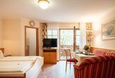 Die harmonischen Einzimmerappartements (30 m²) bieten Ihnen viel Annehmlichkeiten, wie feststehende Betten (Länge 2,10 m), vollausgestatte Küche, SAT-TV mit Radio, Safe, Durchwahltelefon, WC und Dusche getrennt. Ihr Balkon ist selbstverständlich mit einer Liege und bequemen Stühlen ausgestattet. Genießen Sie Ihrem Aufenthalt in bestem Ambiete.
