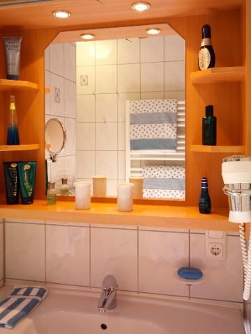Balkon und sind mit feststehenden Betten (Länge 2,10m) und vollausgestatteter